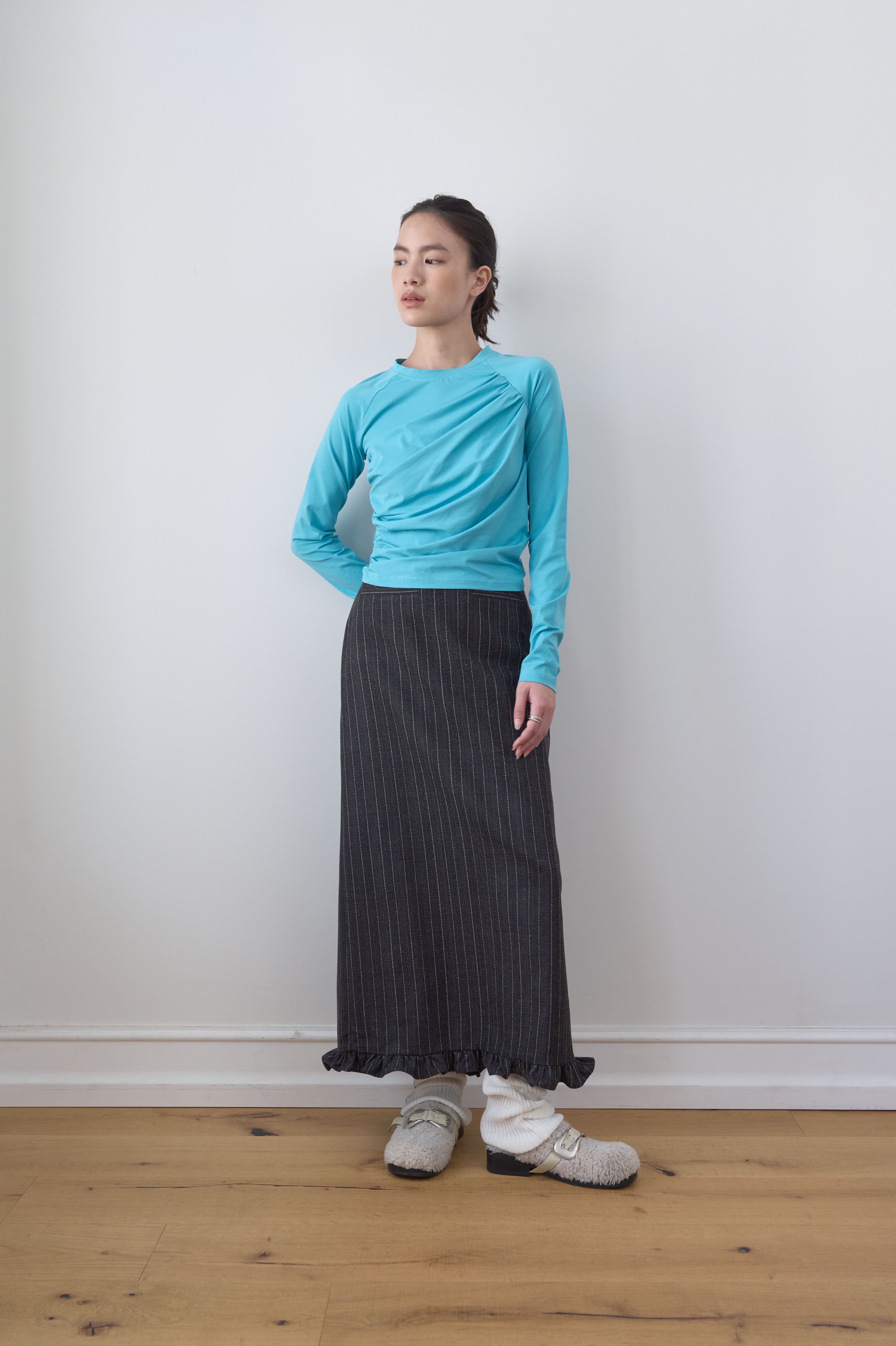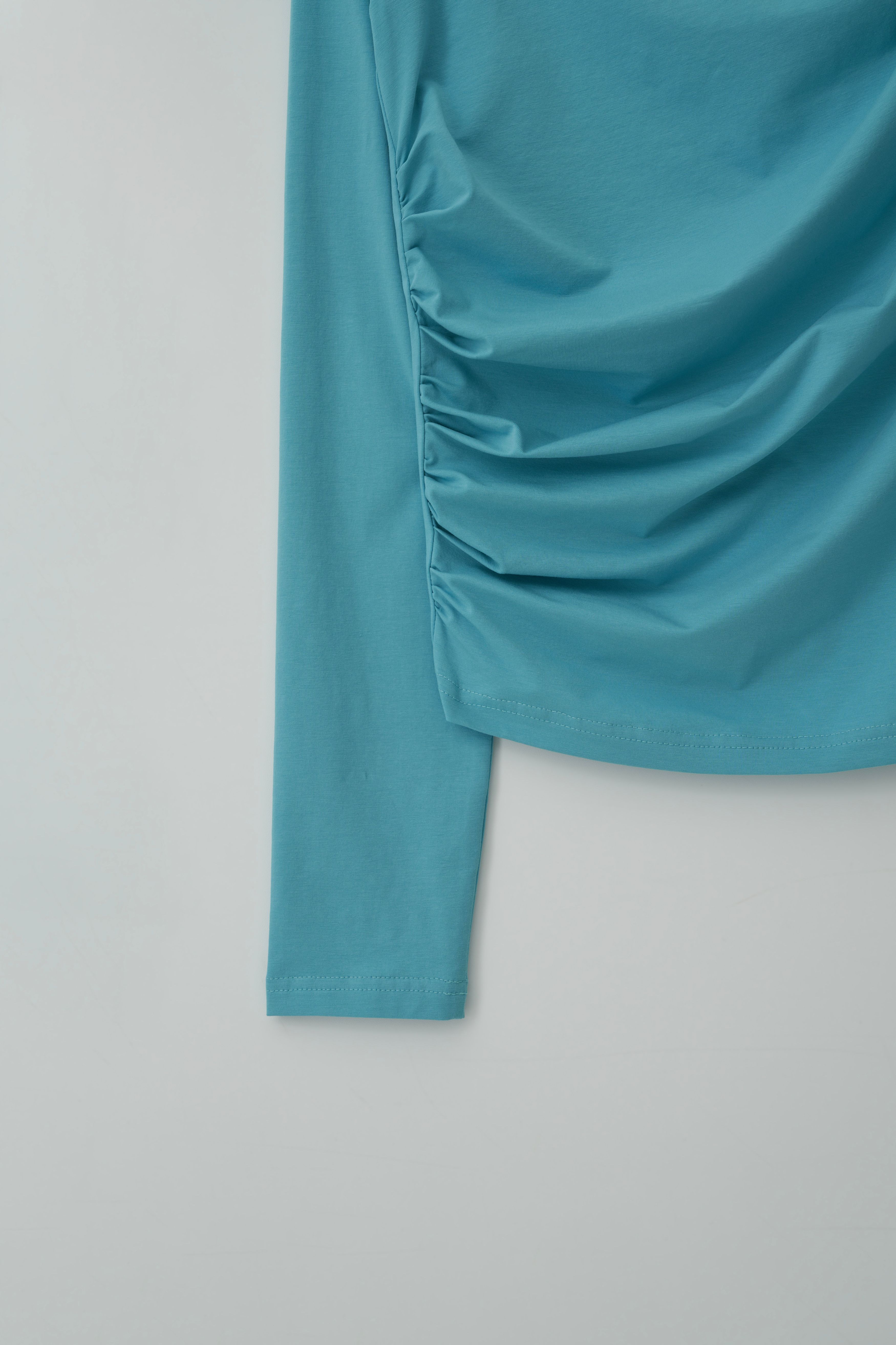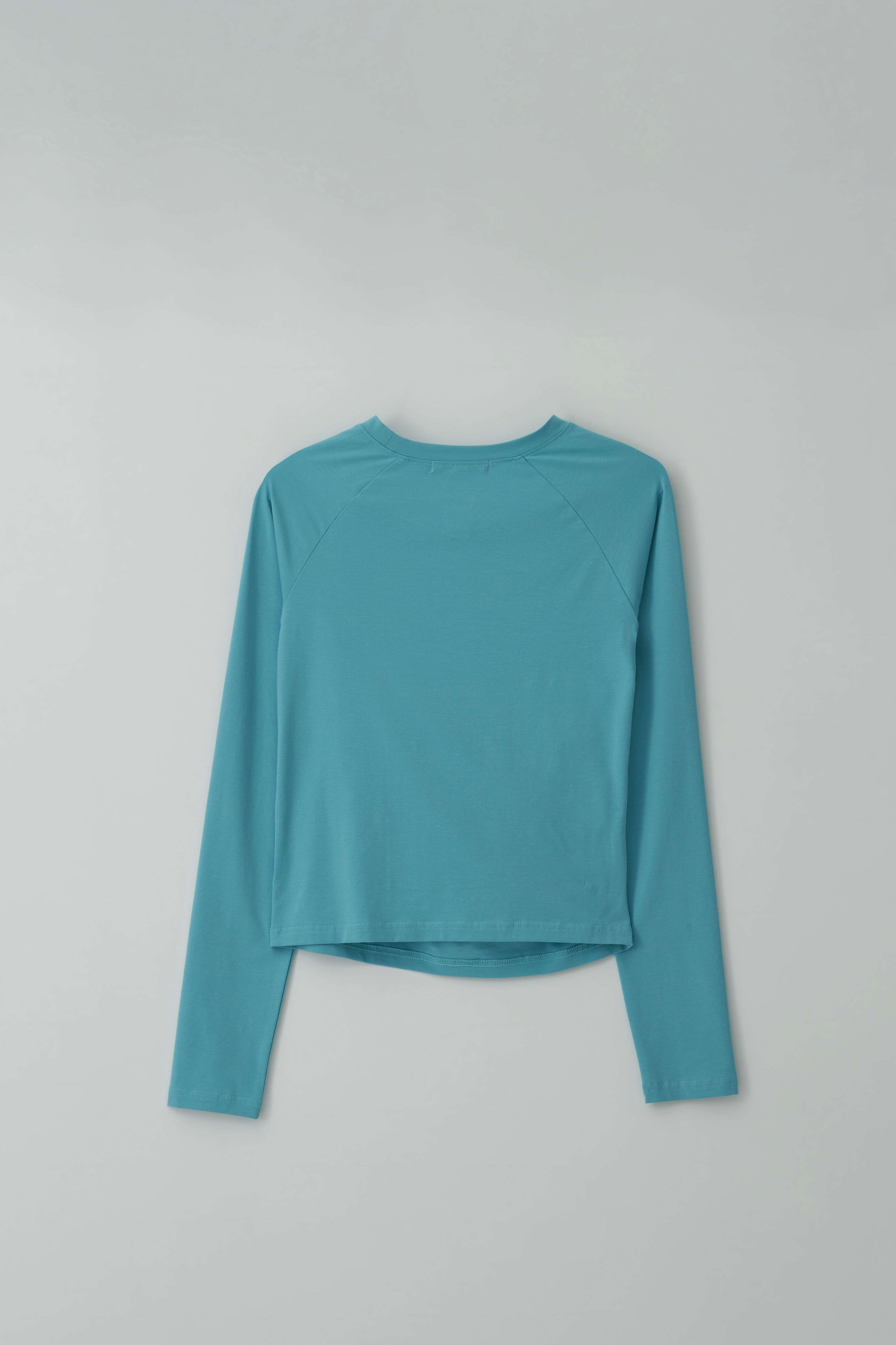 [Influencer pick] RAGLAN SHIRRING T-SHIRT_AQUA BLUE