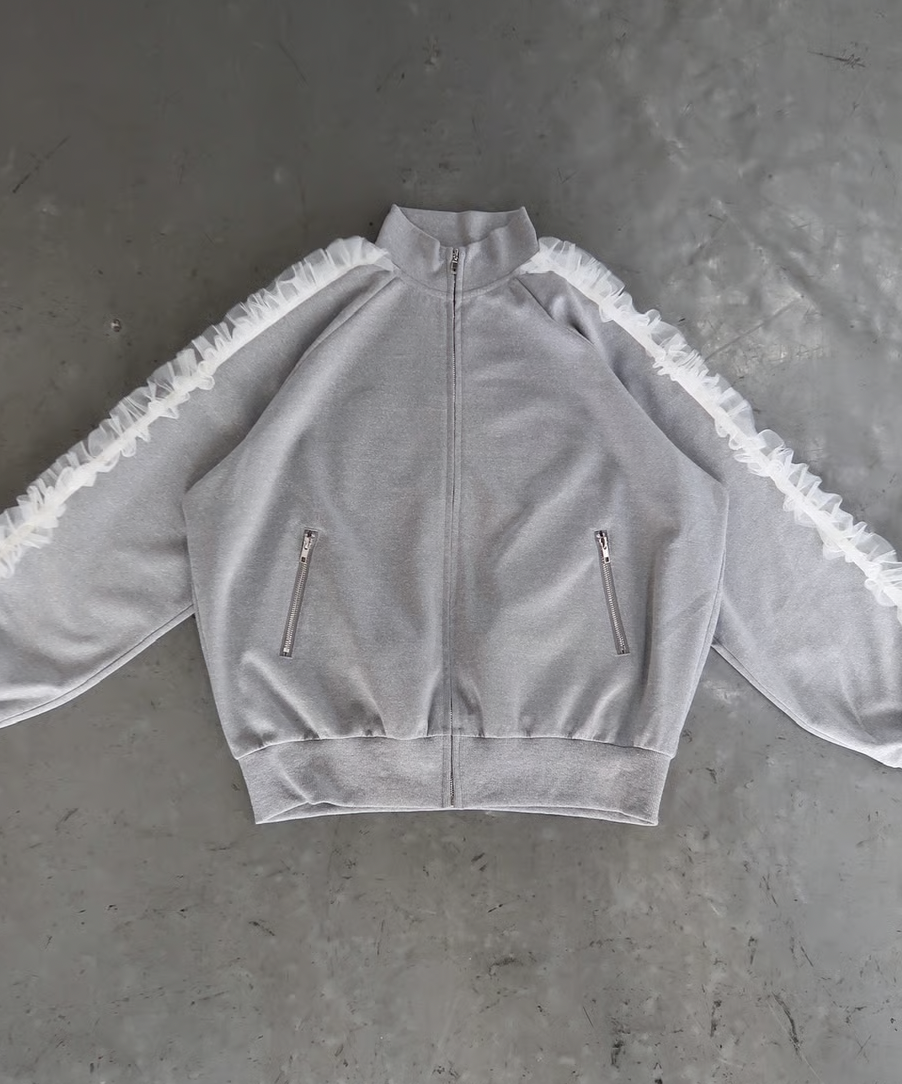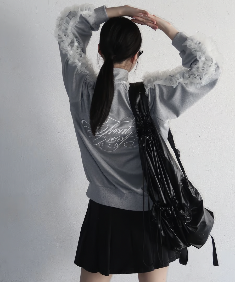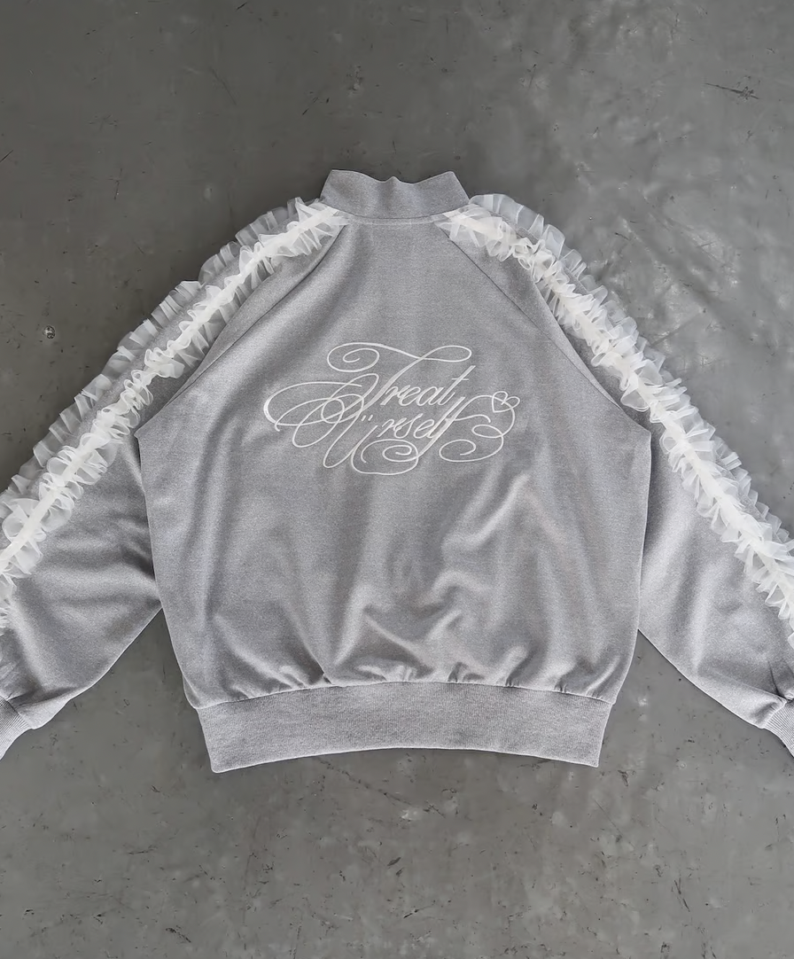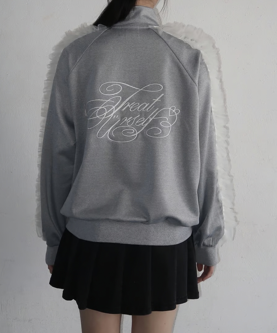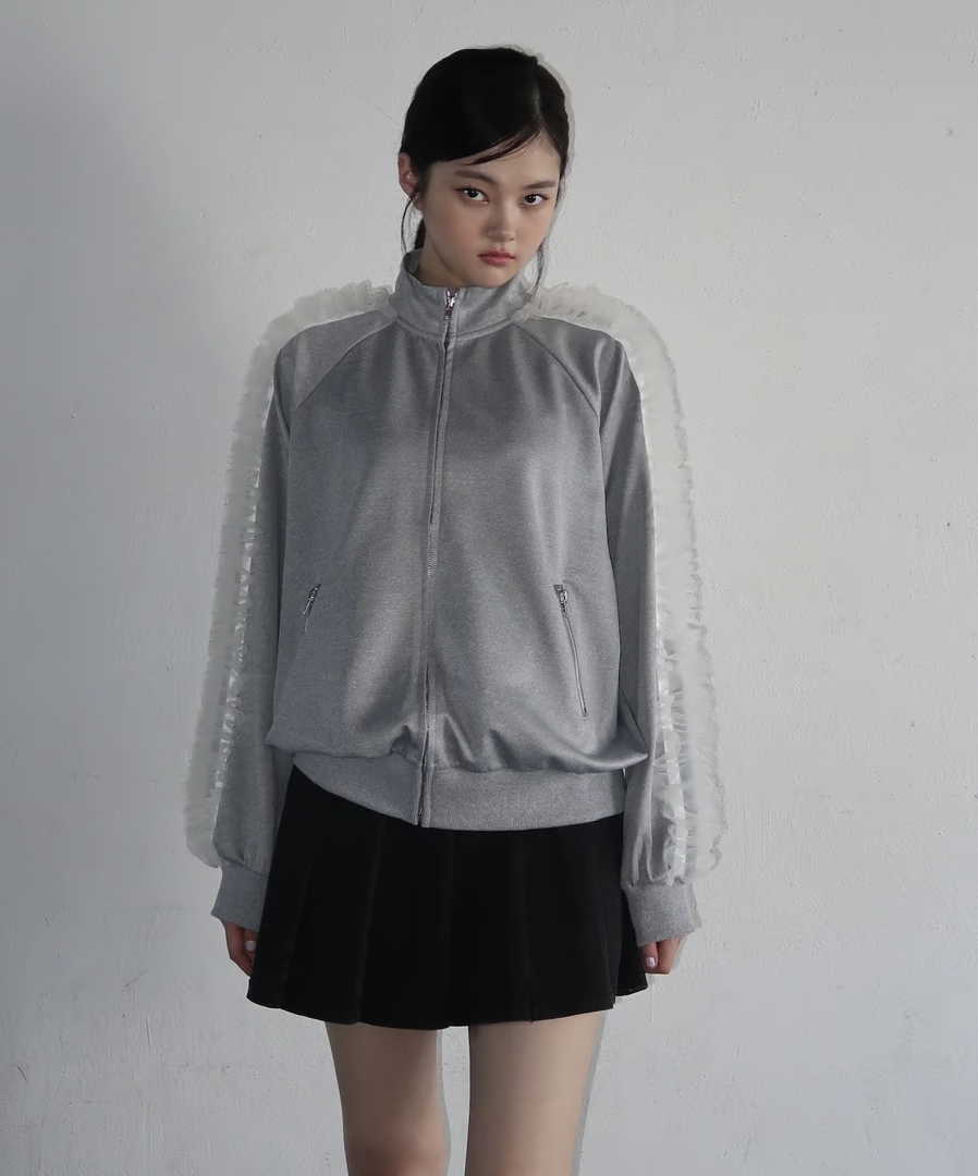 ラフに着用できるシルエットのトラックジャケットにチュールで甘さをプラスしたTreat Ürselfならではのカジュアル×ガーリーなジャージアイテムが登場。
