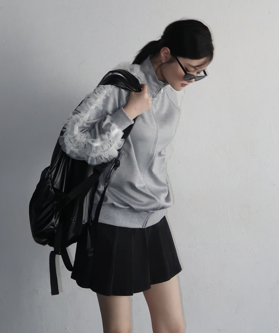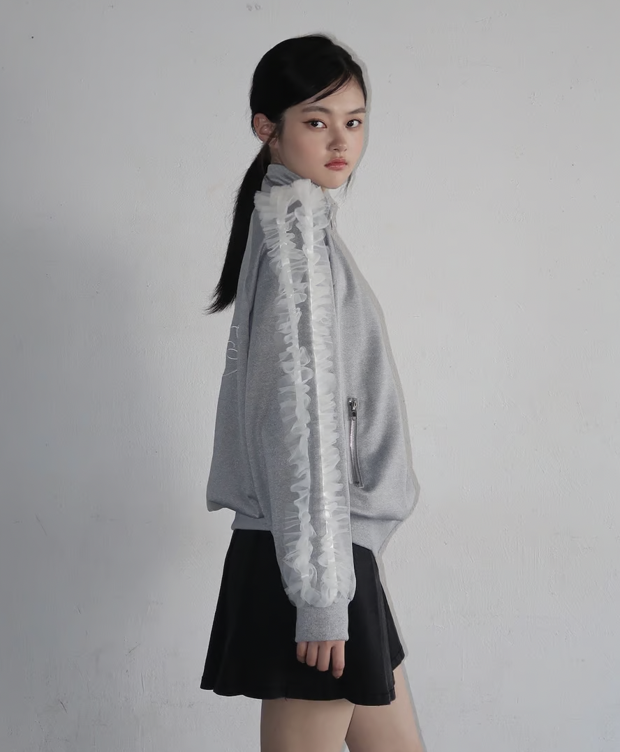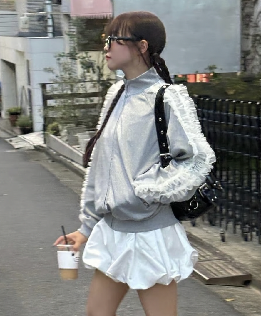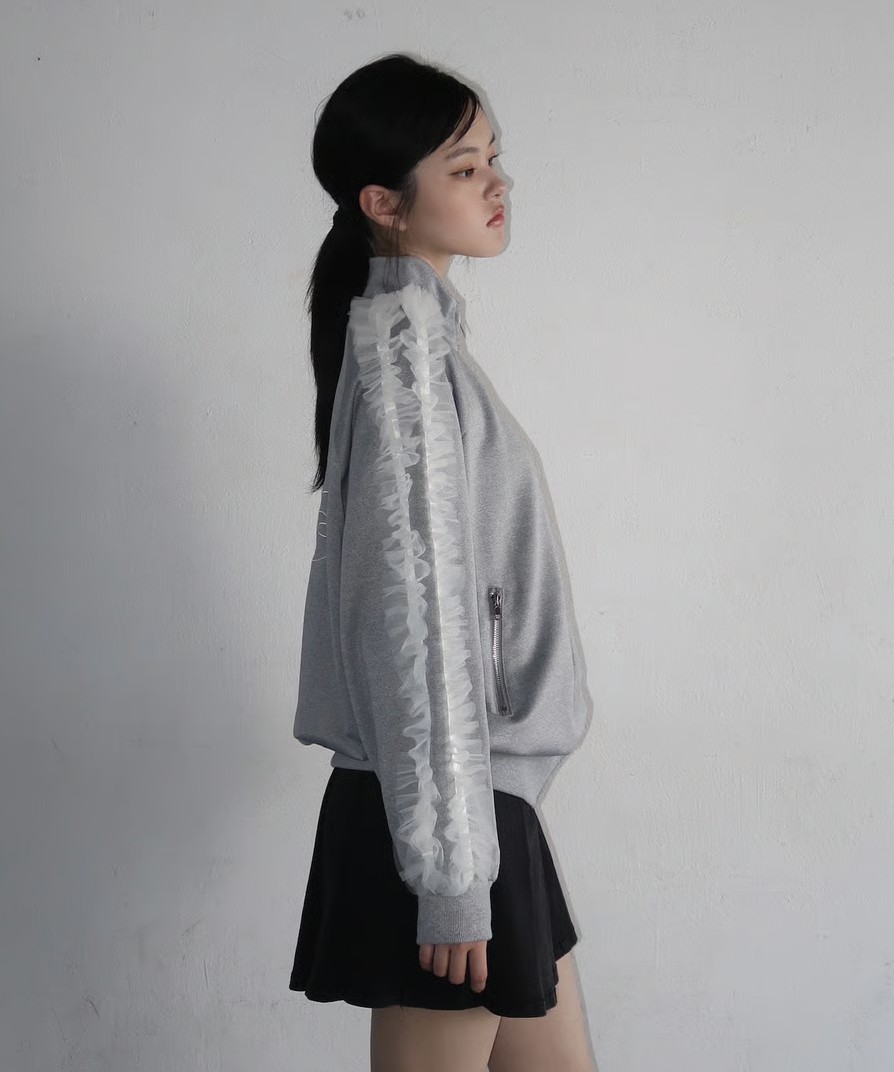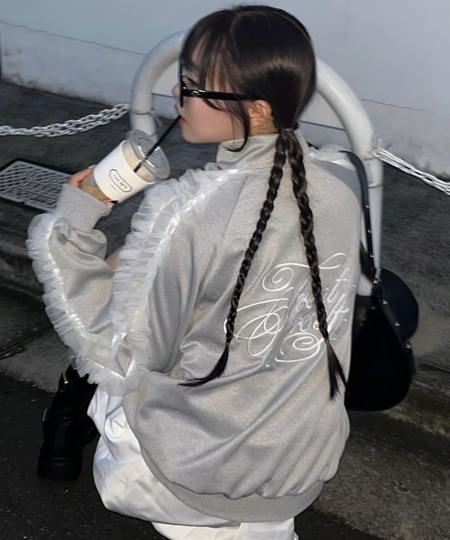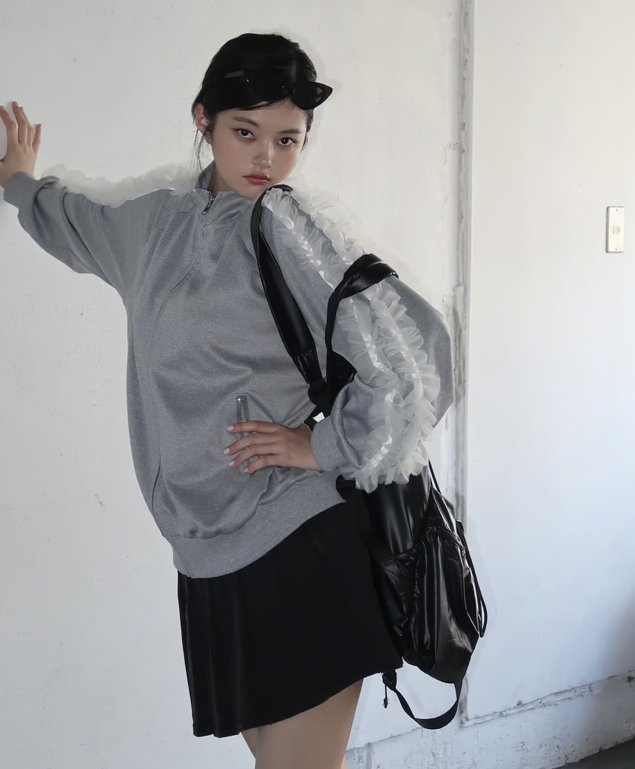 ラフに着用できるシルエットのトラックジャケットにチュールで甘さをプラスしたTreat Ürselfならではのカジュアル×ガーリーなジャージアイテムが登場。