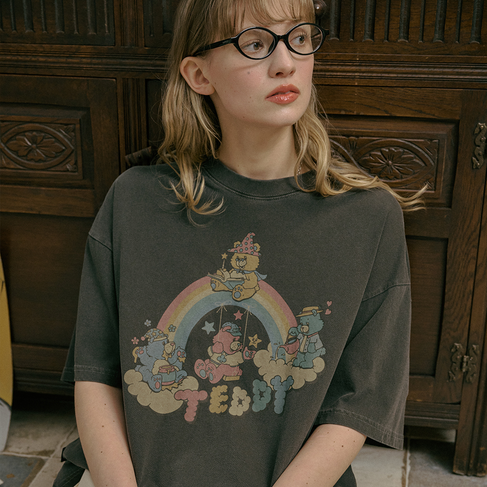 RAIN TEDDY Pigment Short Sleeve T-shirt(Smoke Black)