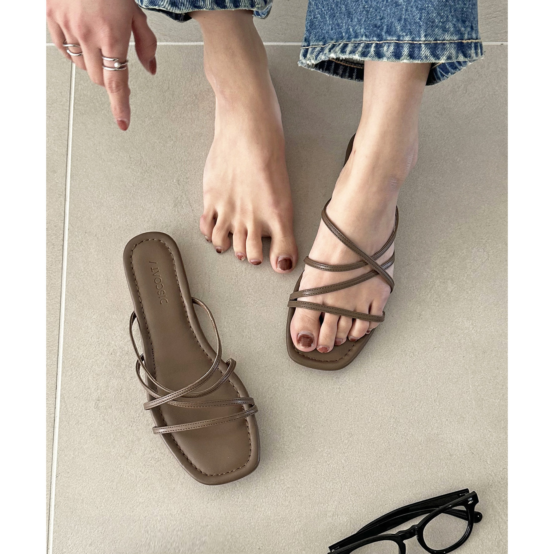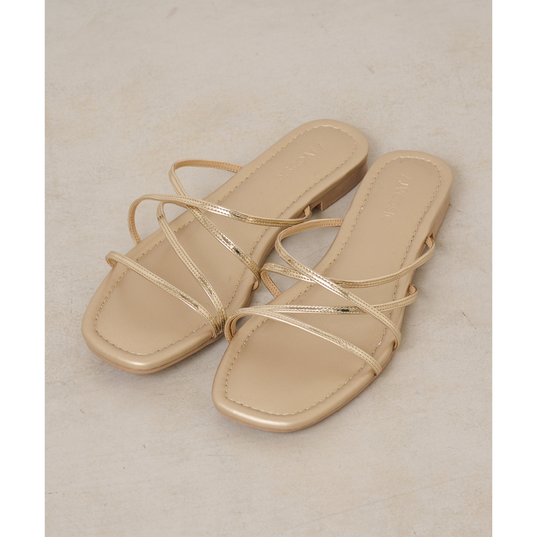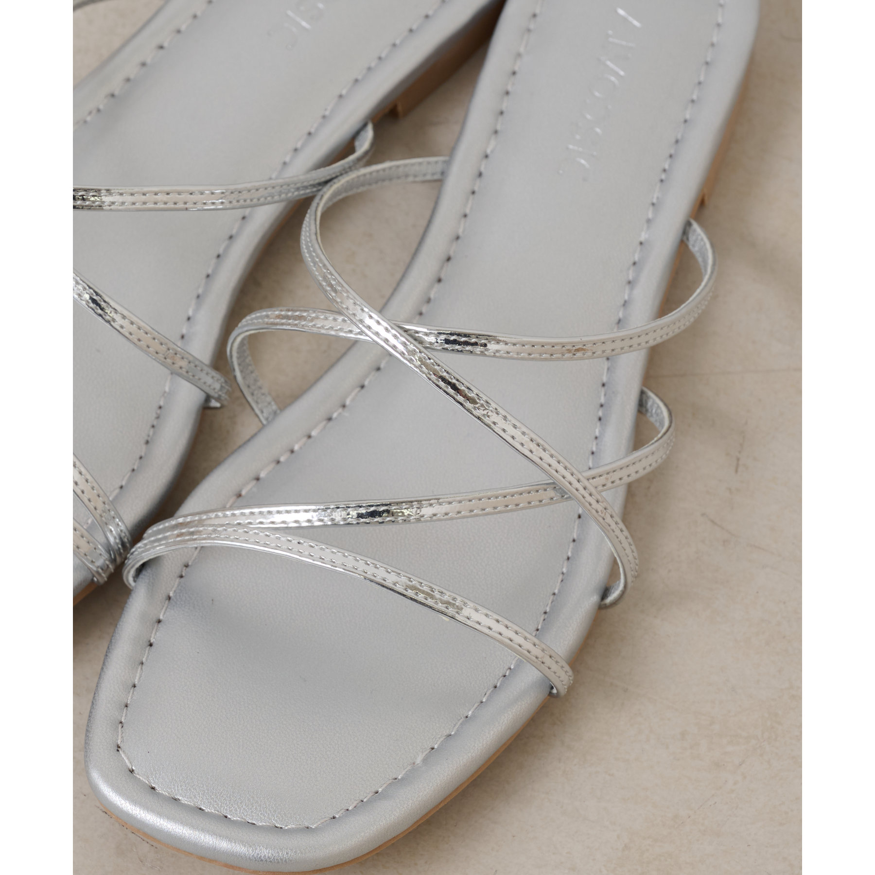 華奢なクロスストラップが女性らしく、足元をすっきりと見せてくれます。ローヒールのため歩きやすく疲れにくいです◎また、着脱がしやすいのでちょっとしたお出掛けにもピッタリです♪シンプルなデザインなのでボトムス問わず合わせていただけます。定番のブラック・シルバー・ゴールドに加え、今年はトレンドのブラウンが登場です。