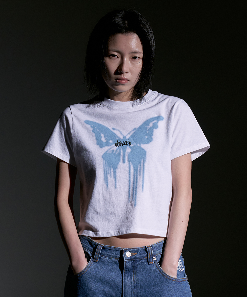 BUTTERFLY GOTH CROP TEE[WHITE]