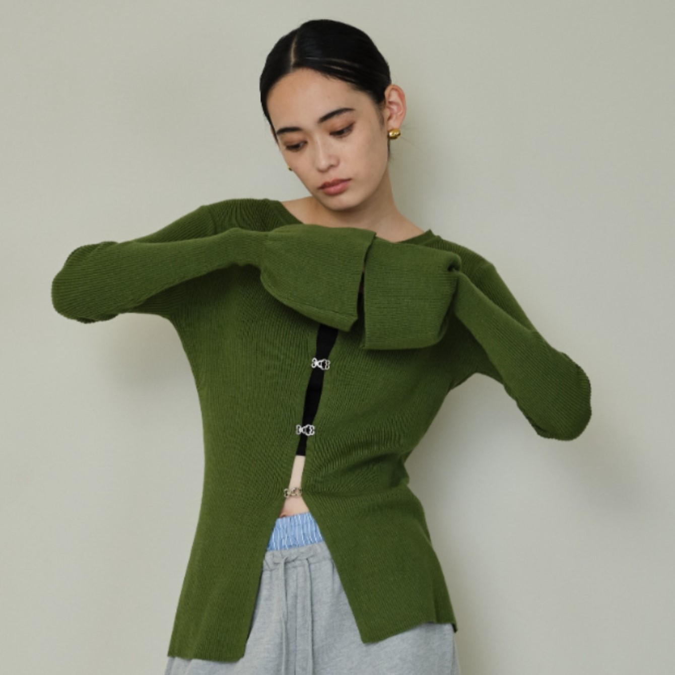 ・この商品は伸びやすいニットアイテムです。保管の際は必ず吊りではなく、平置きで保管するようにお願いします。