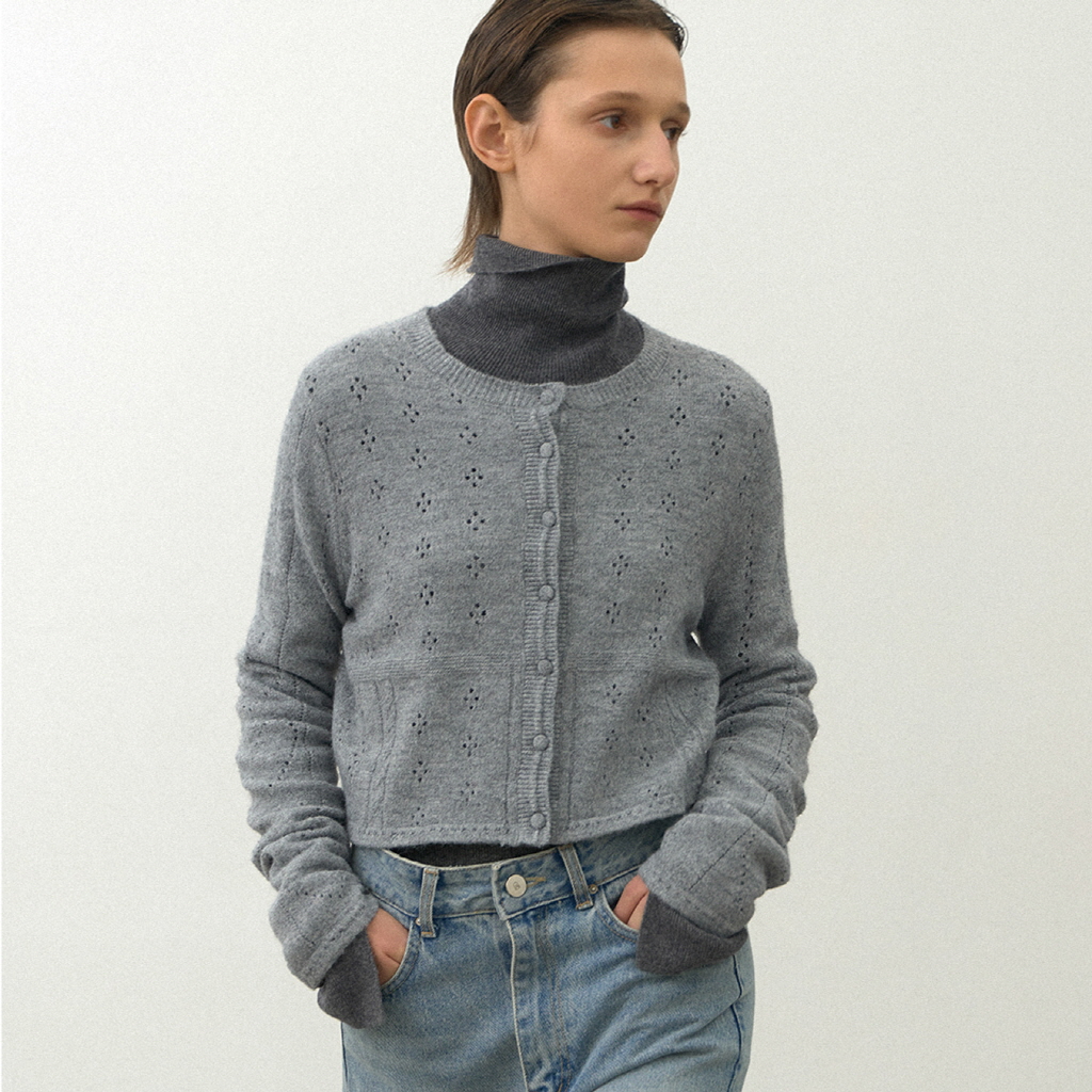 섬세한 펀칭 스카시 조직의 크롭 가디건입니다.