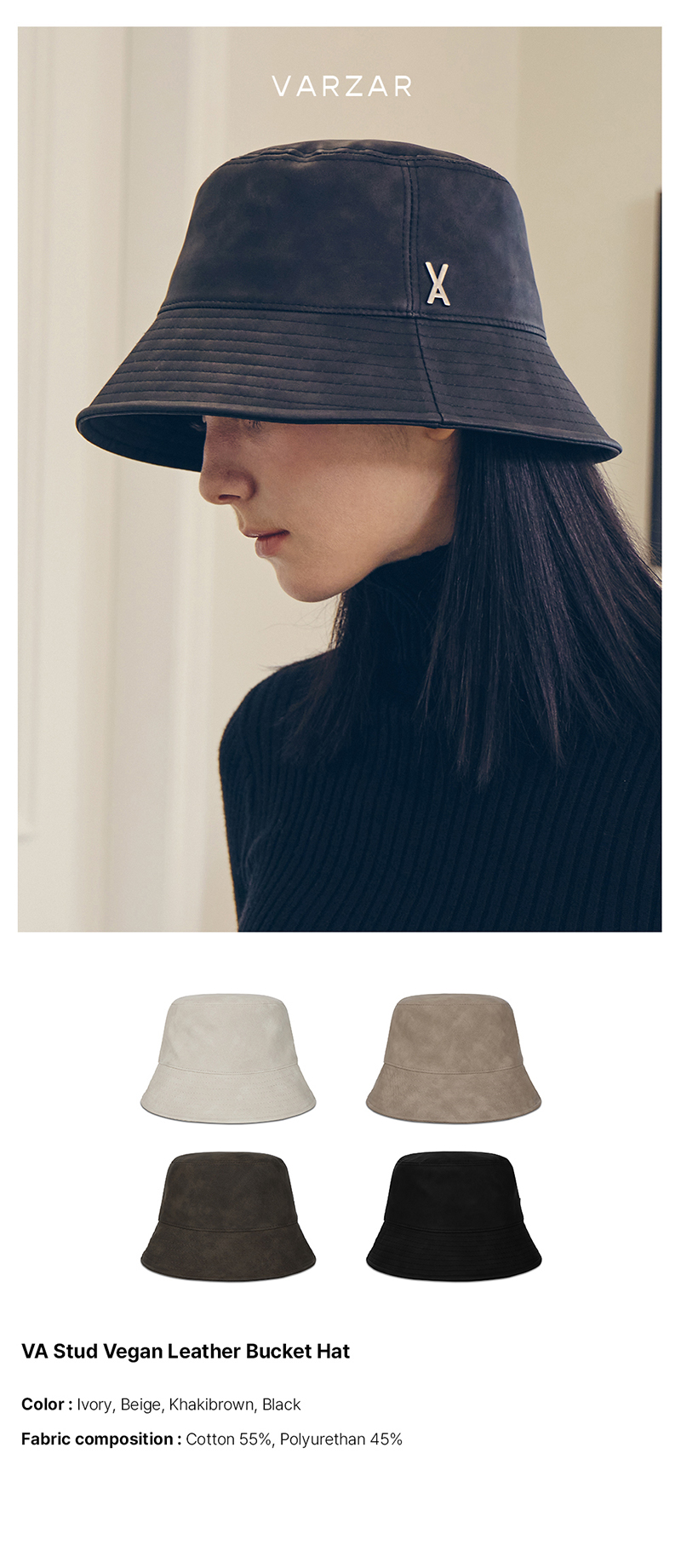 VA Stud Vegan Leather Bucket Hat Black