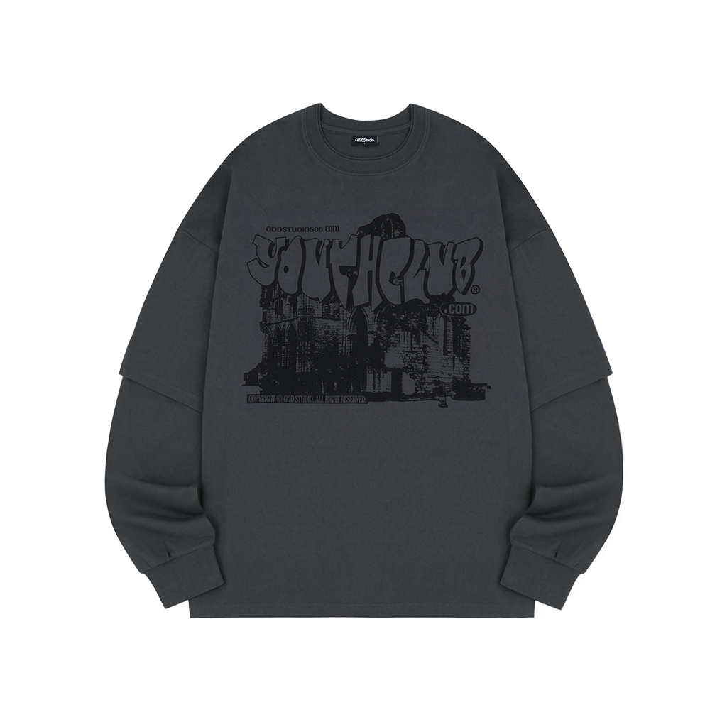 Youth Club Graphic Layered Oversized Fit Long Sleeve - charcoal