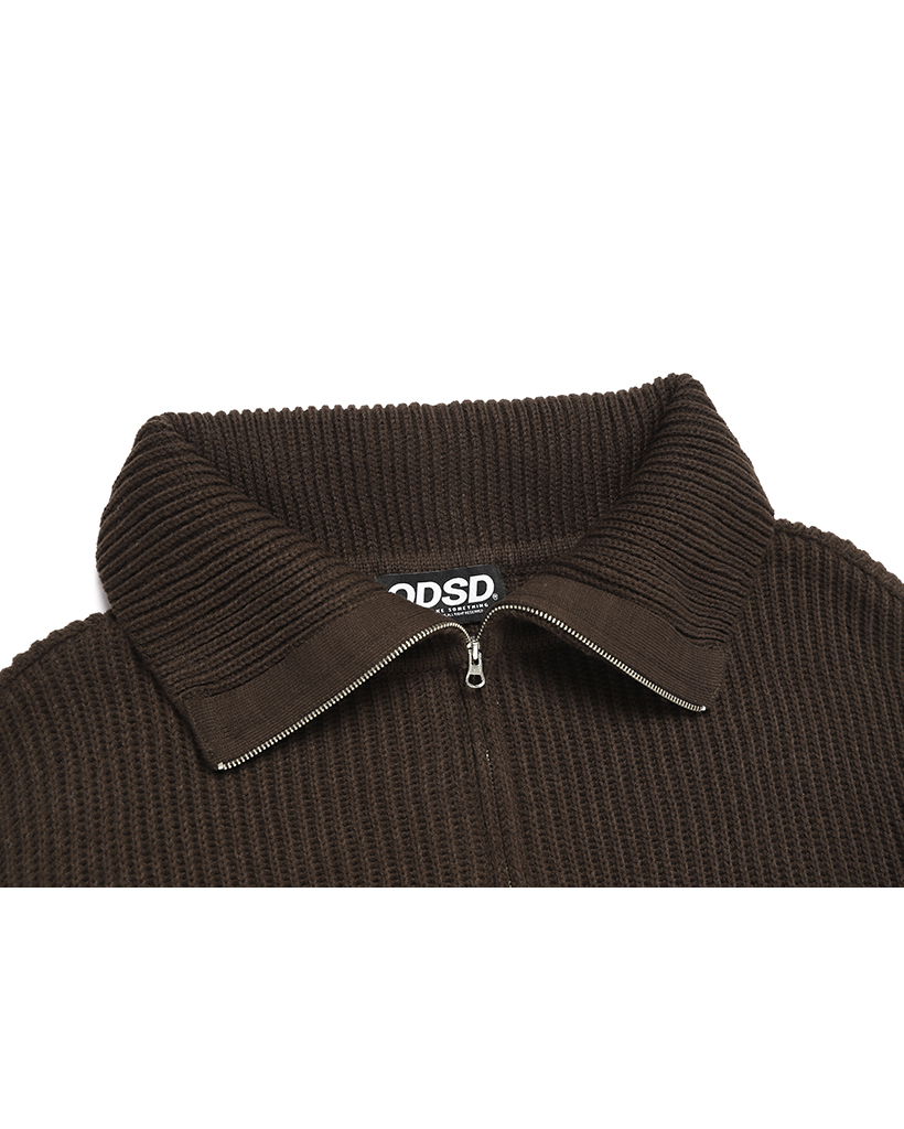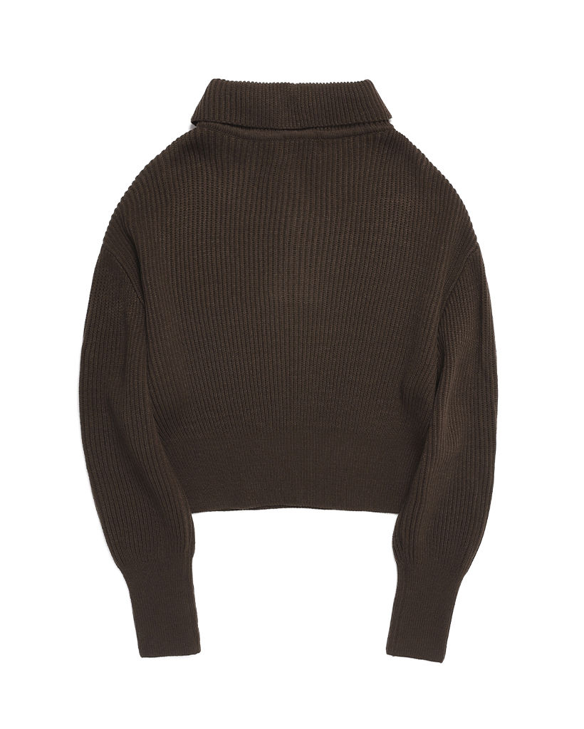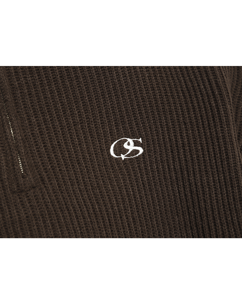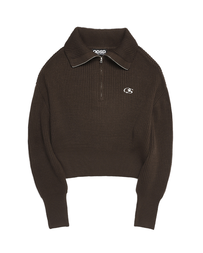OS logo cropped knit half zip-up- BROWN