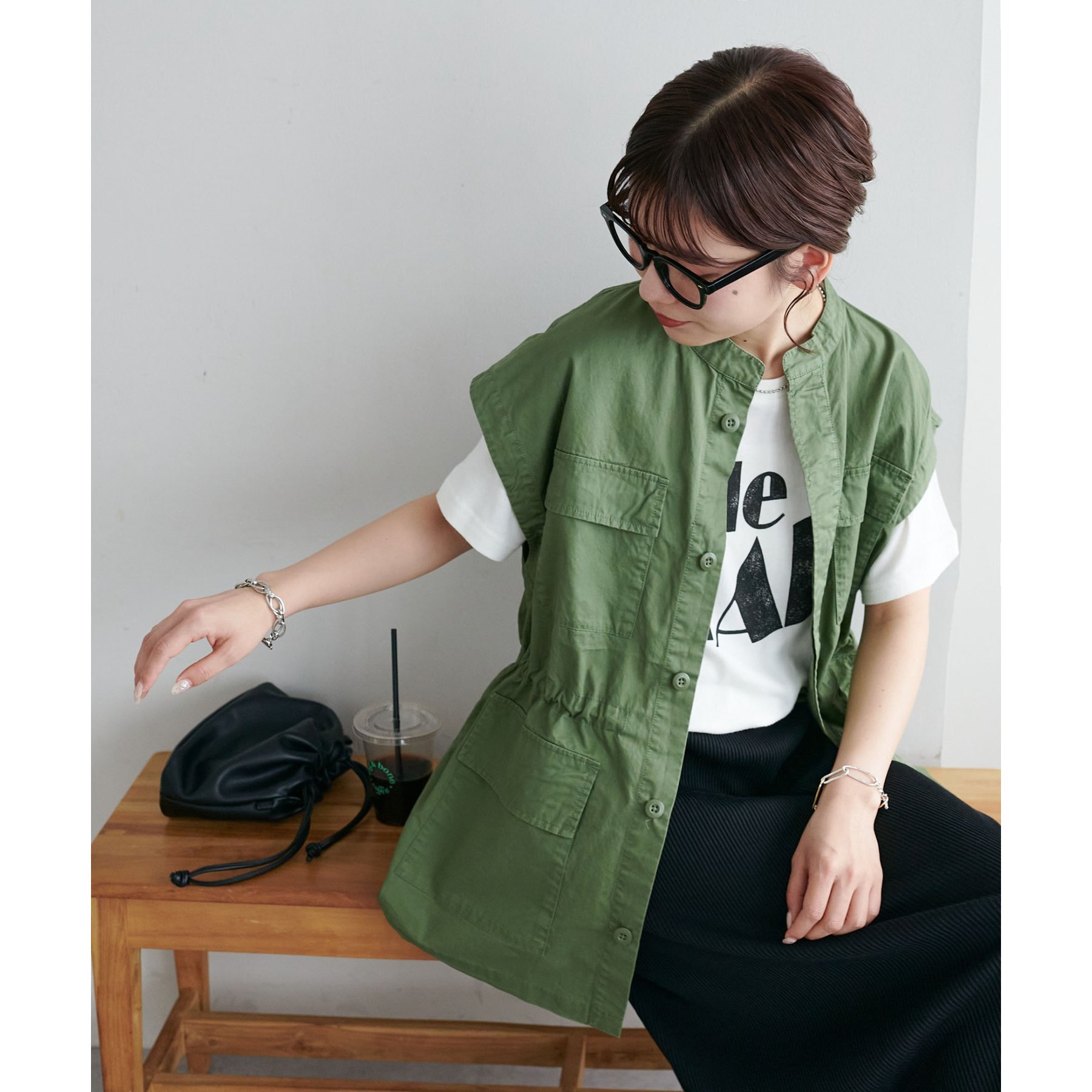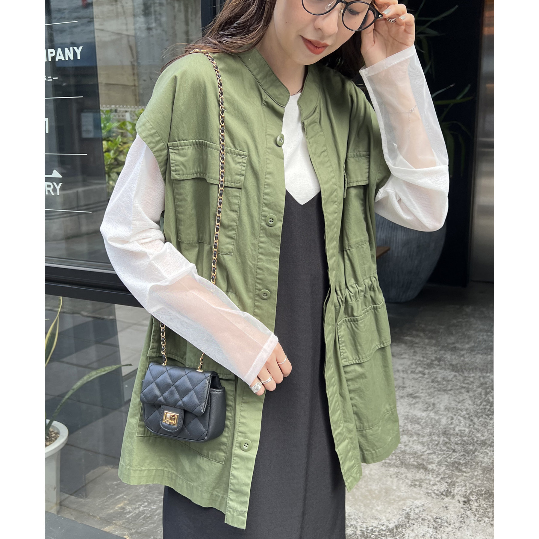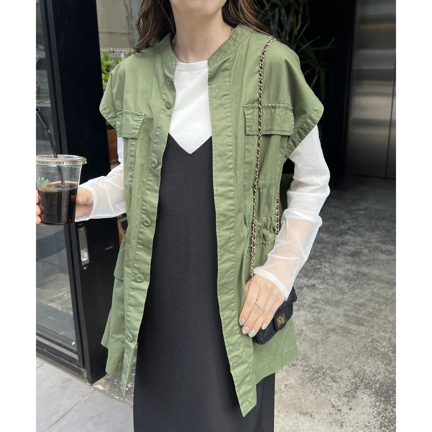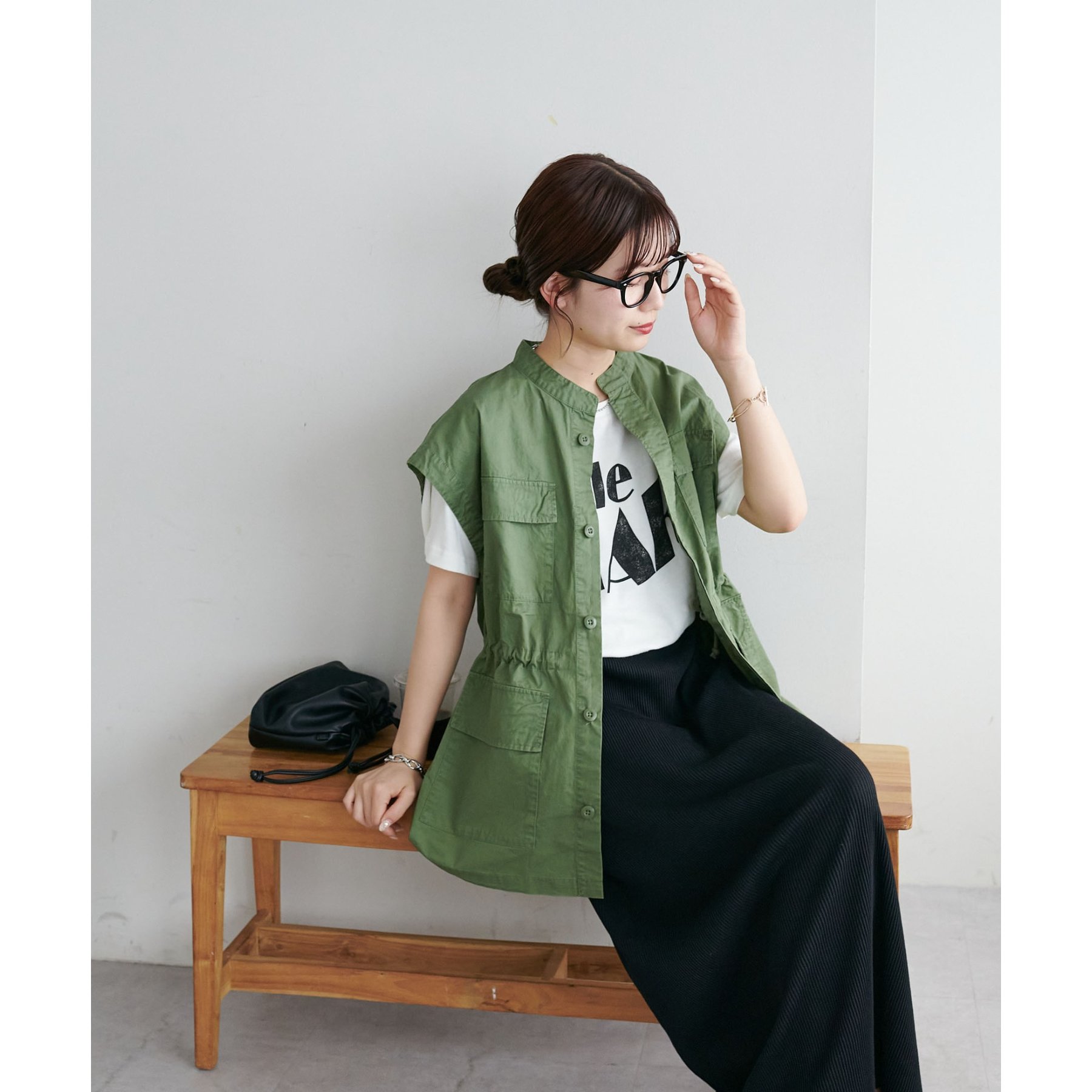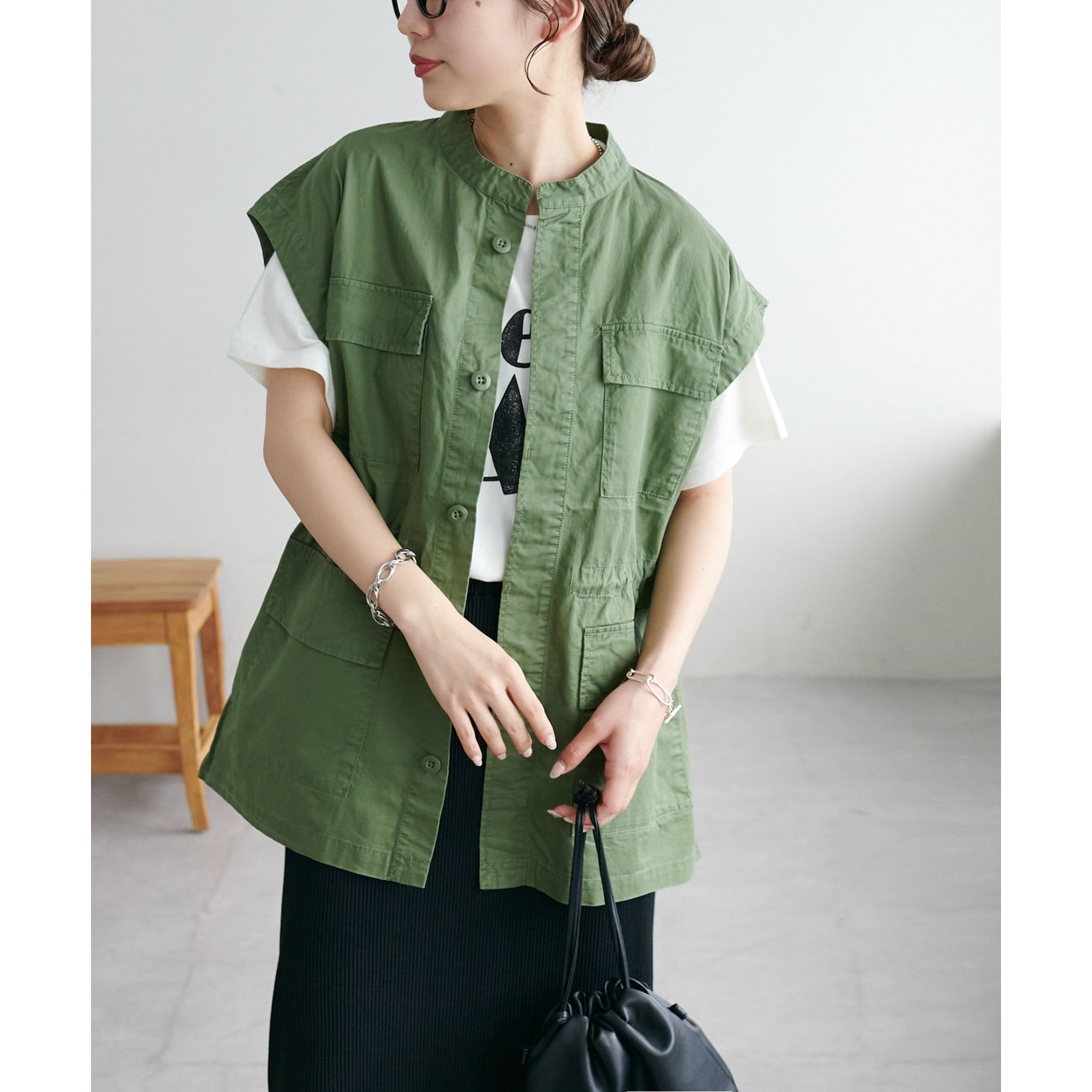 旬のレイヤードを楽しむ、スタンドネックミリタリーベスト