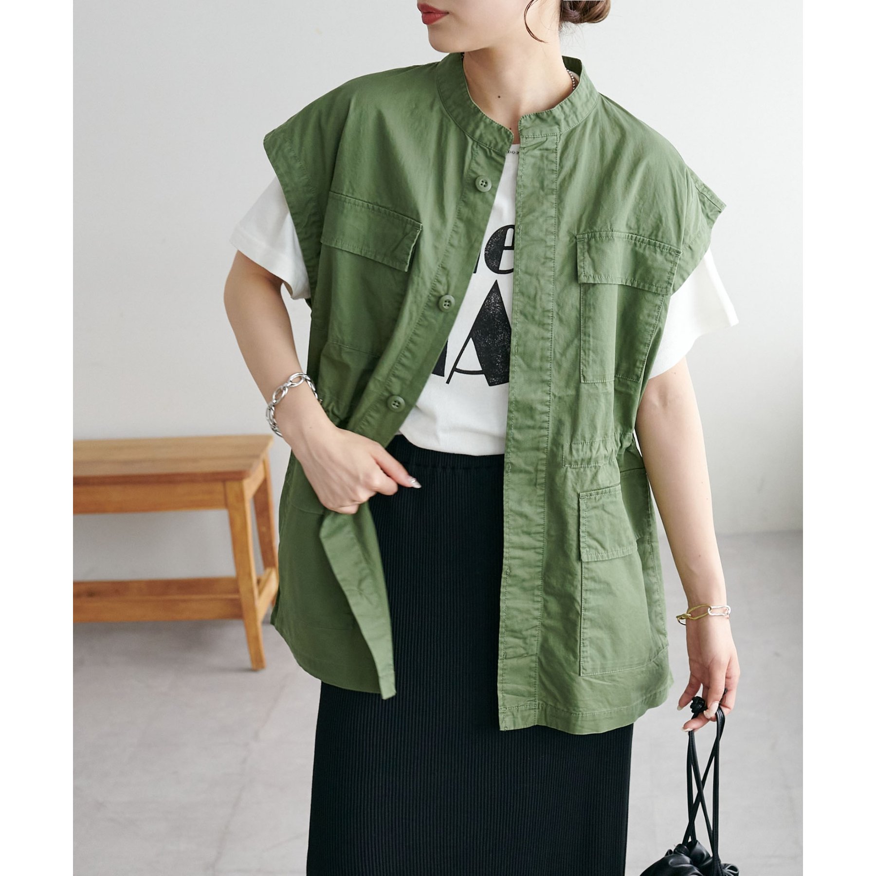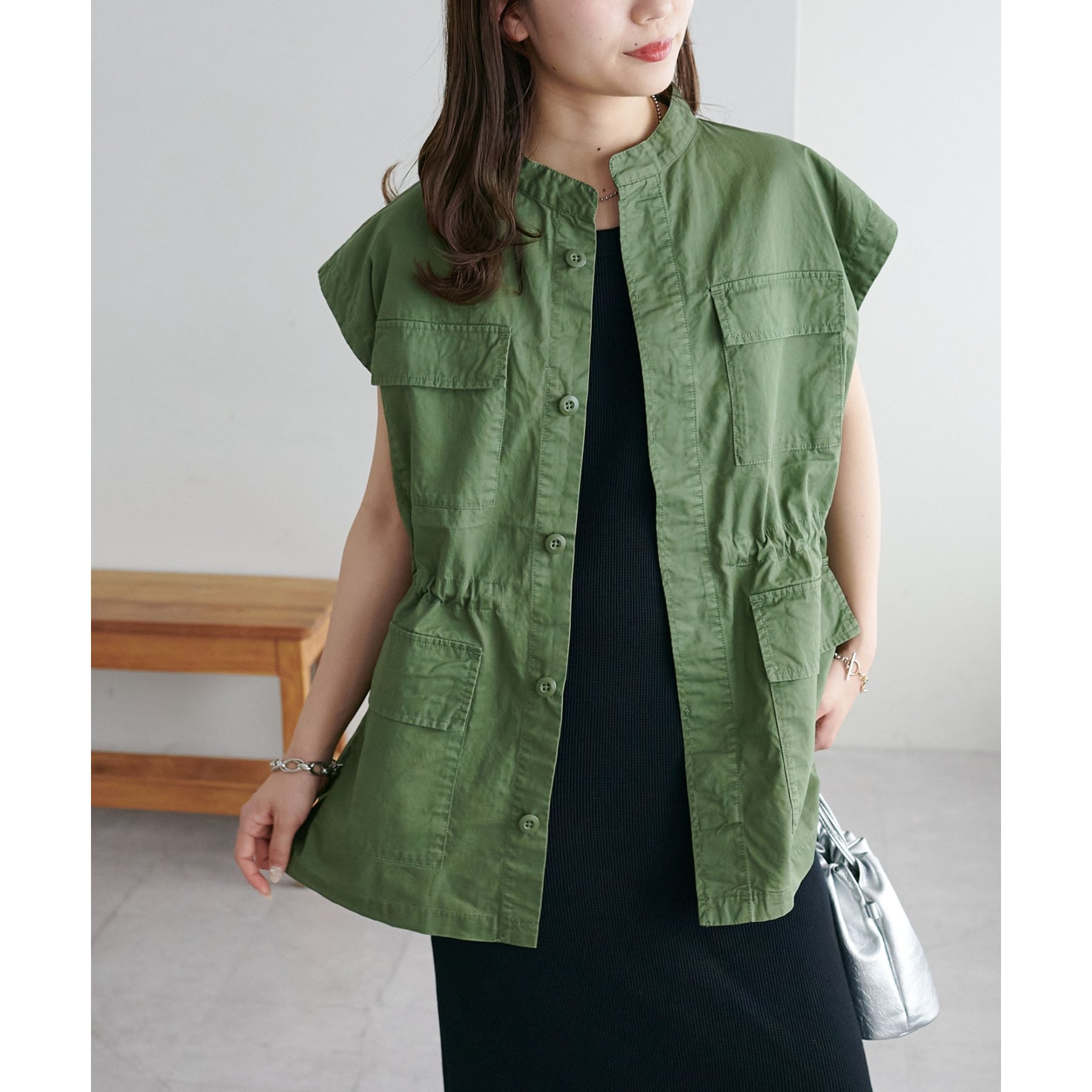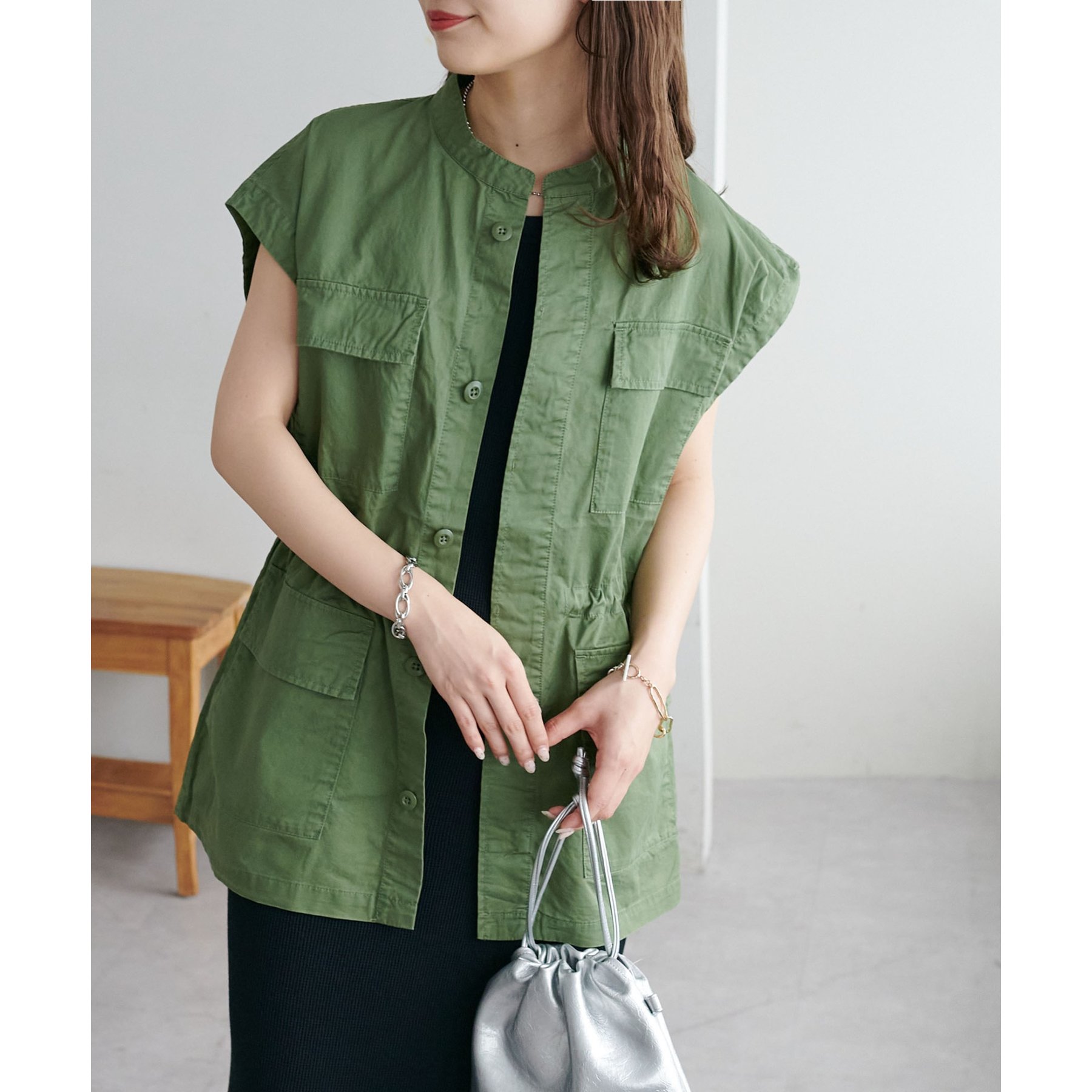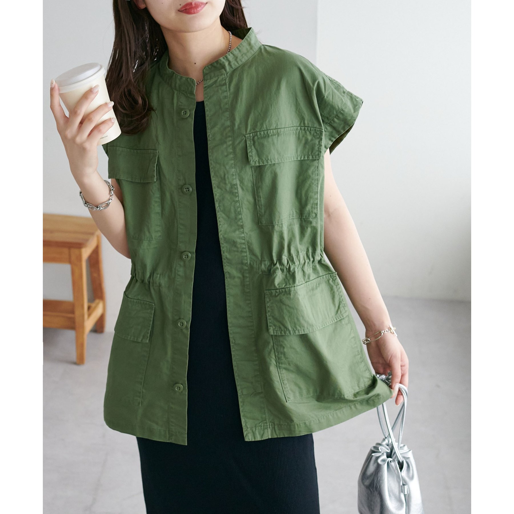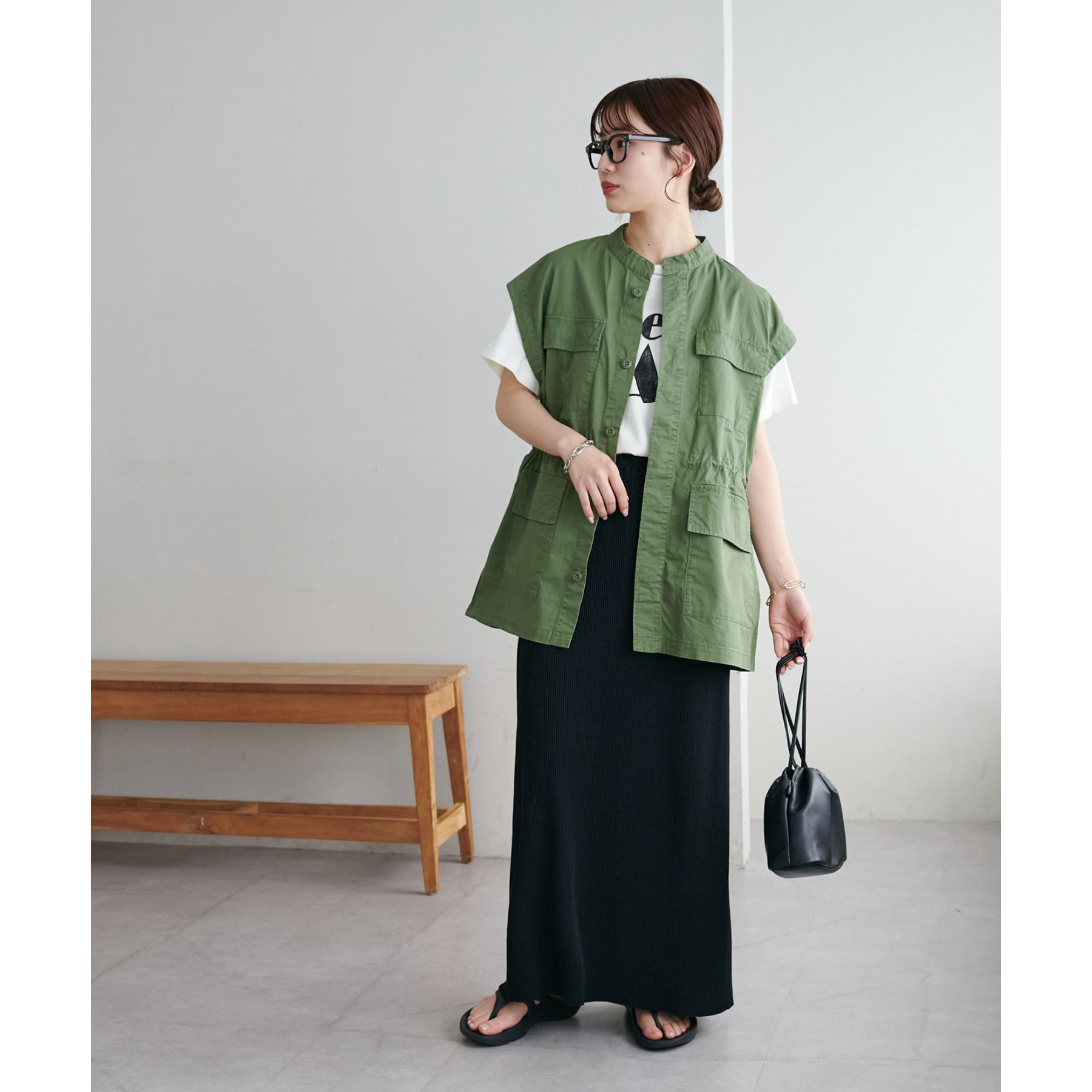 旬のレイヤードを楽しむ、スタンドネックミリタリーベスト