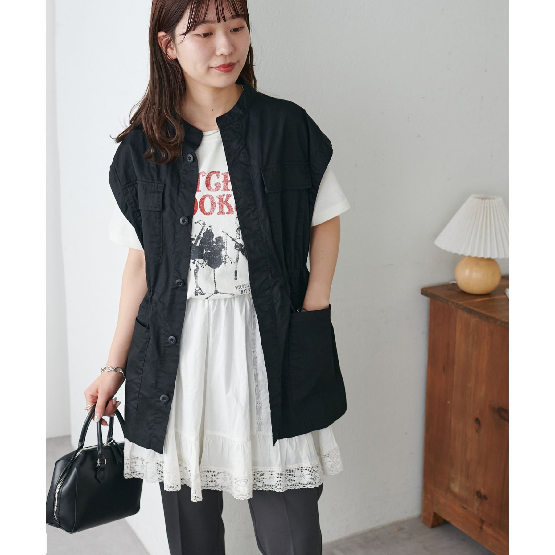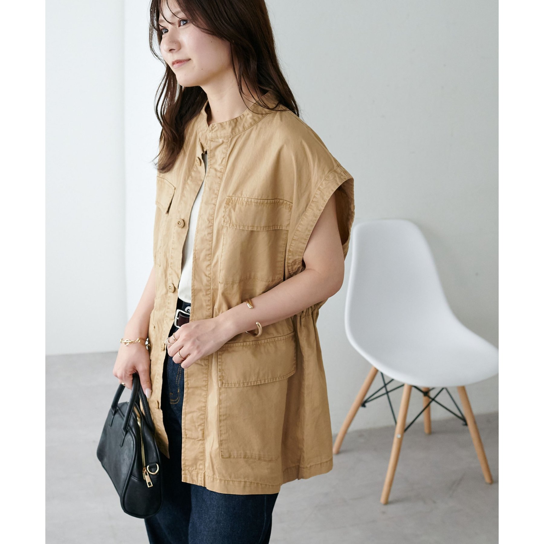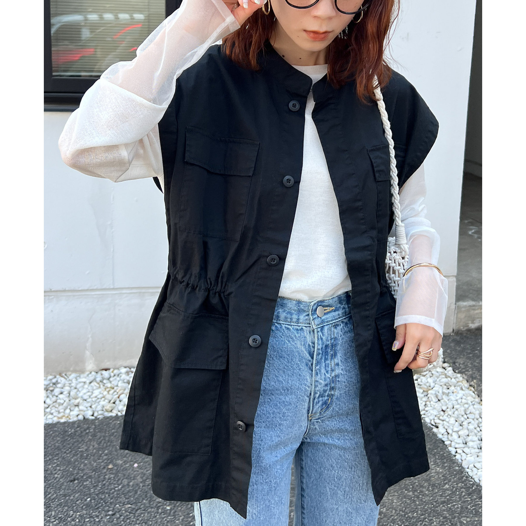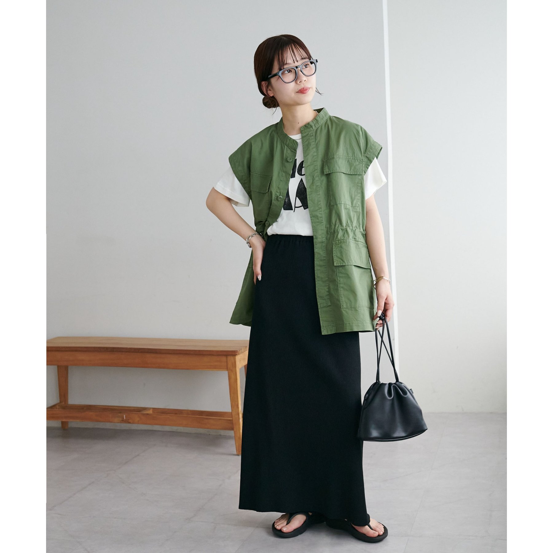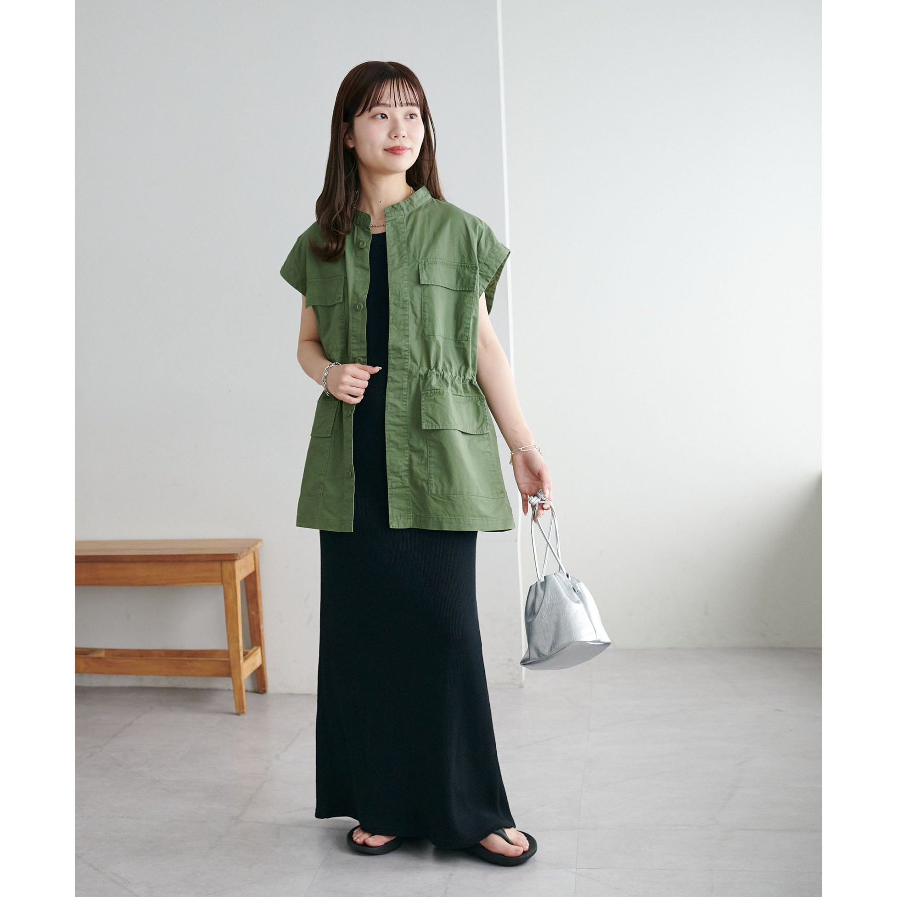 旬のレイヤードを楽しむ、スタンドネックミリタリーベスト