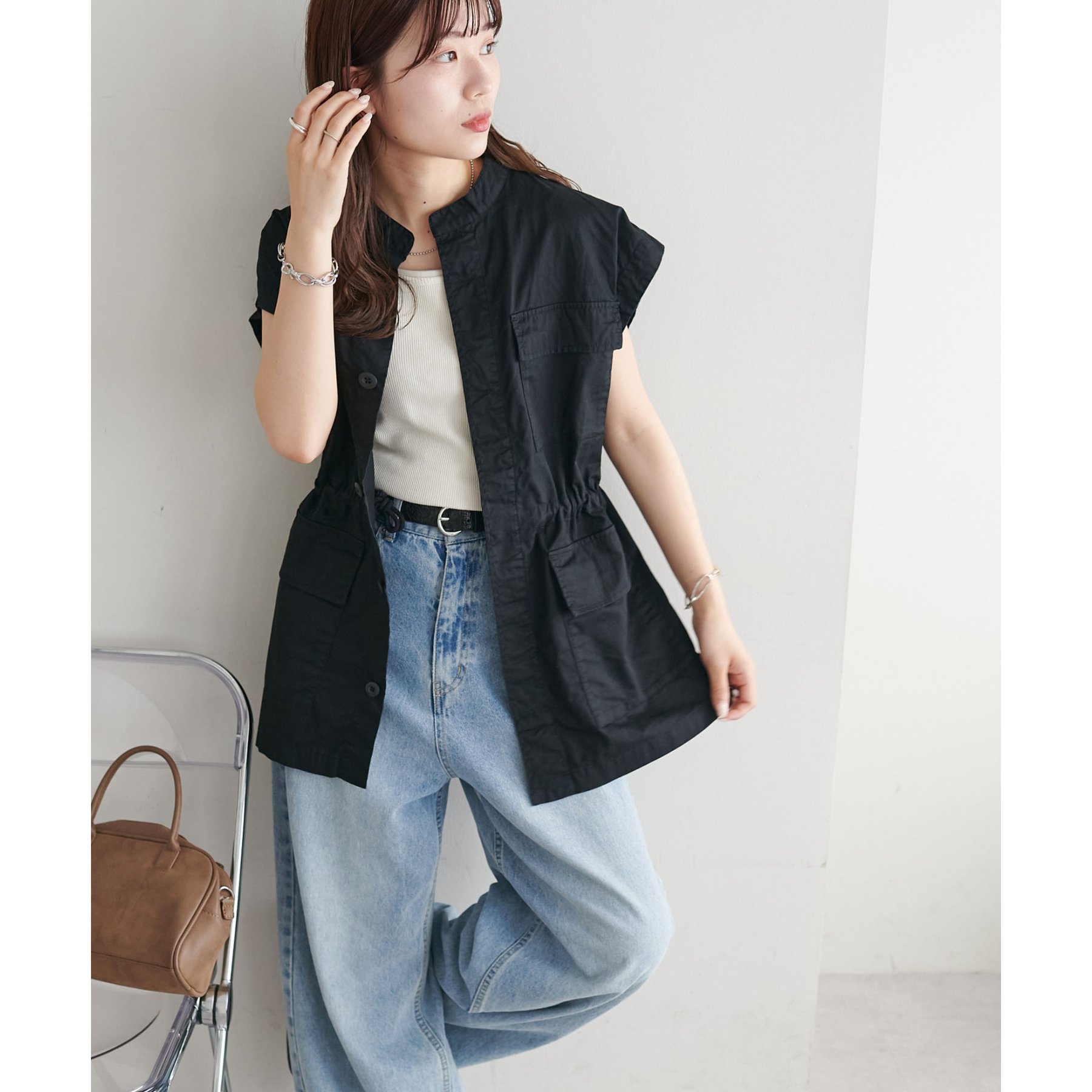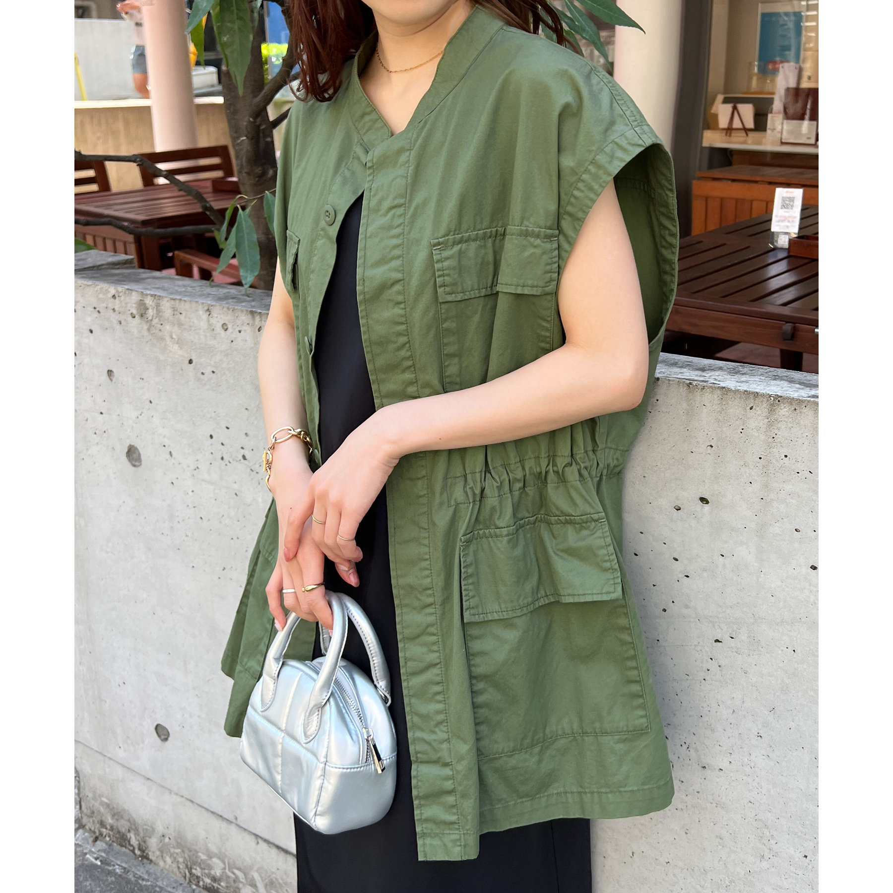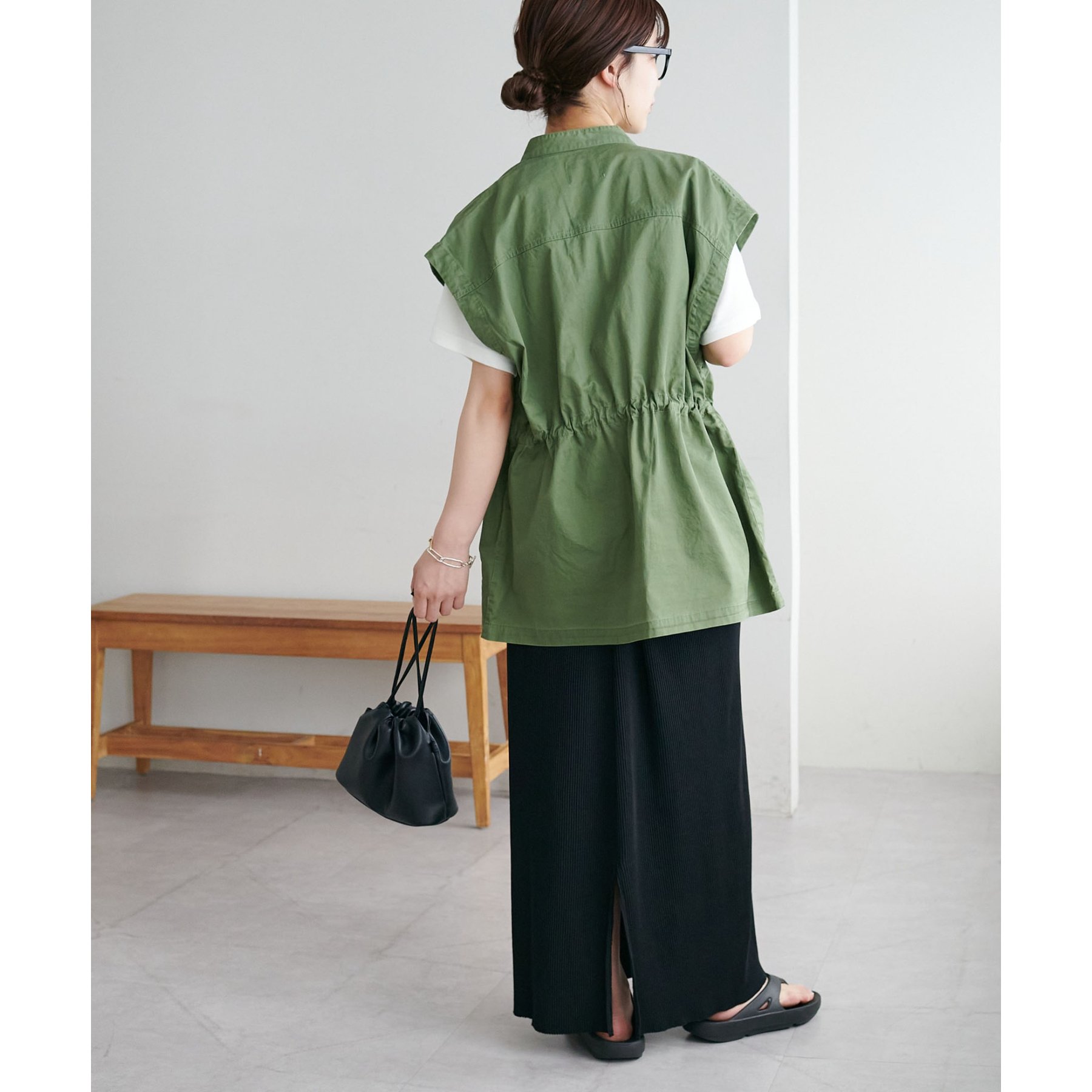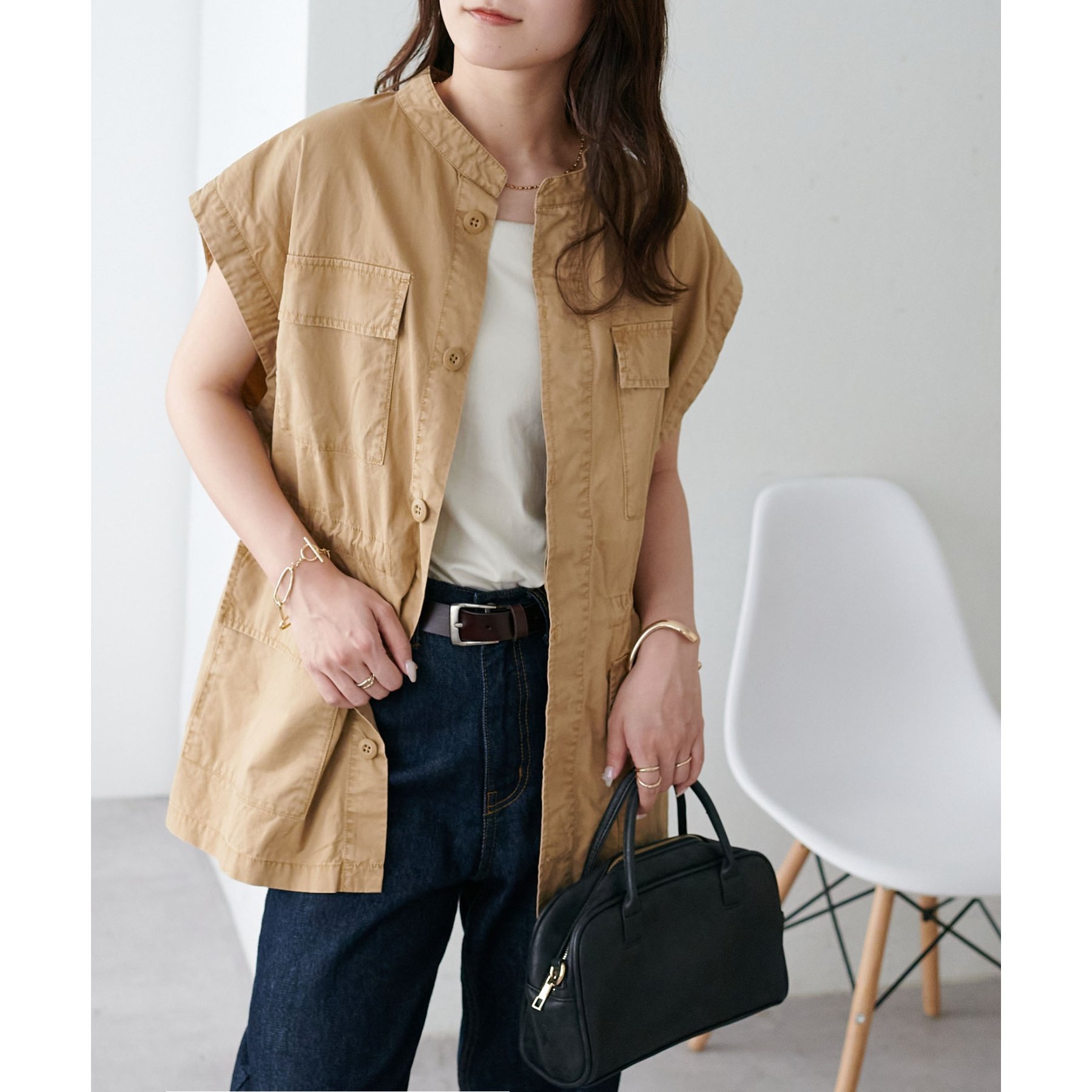 旬のレイヤードを楽しむ、スタンドネックミリタリーベスト