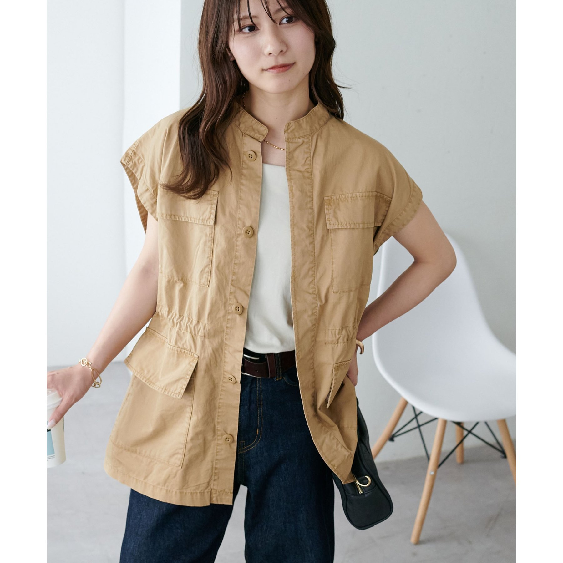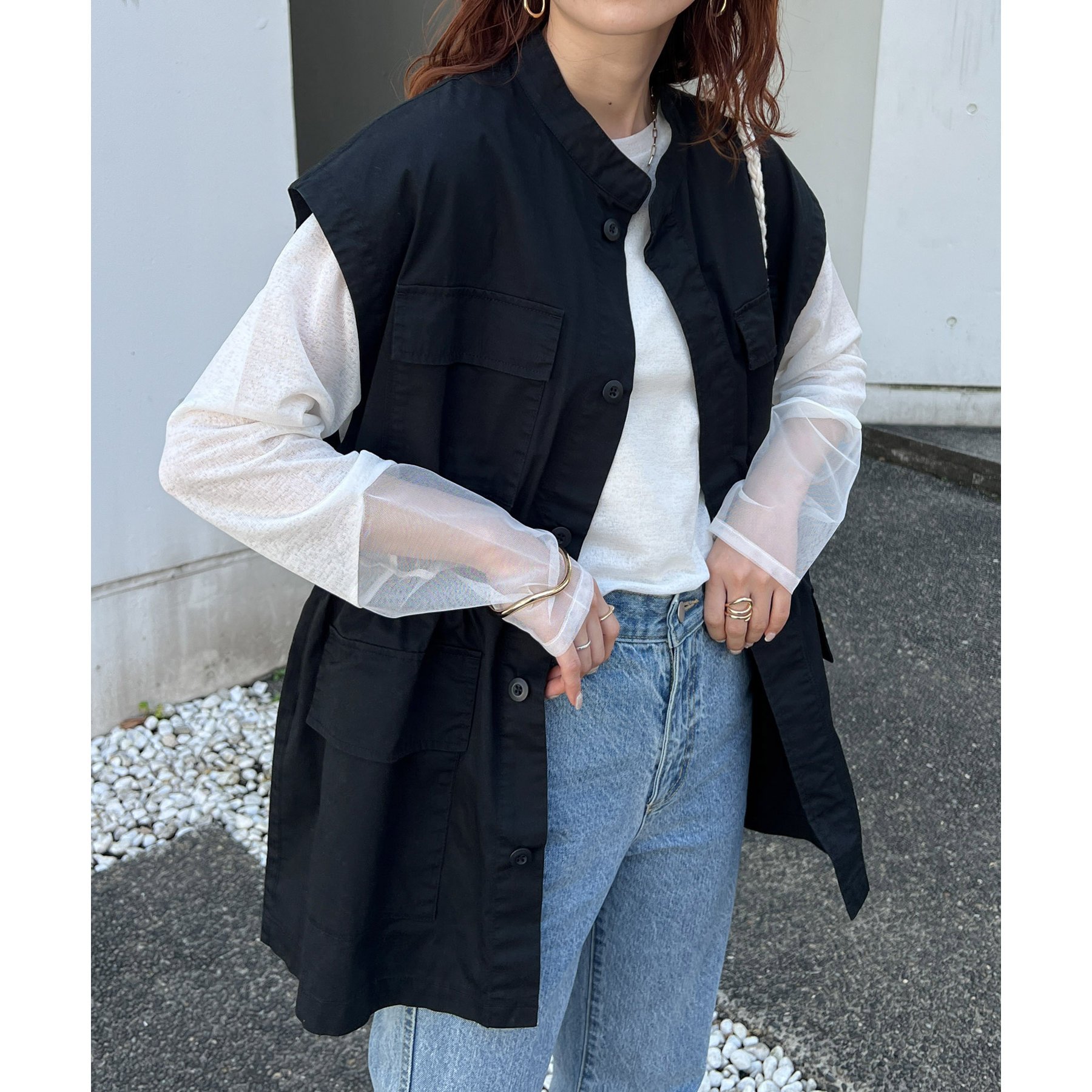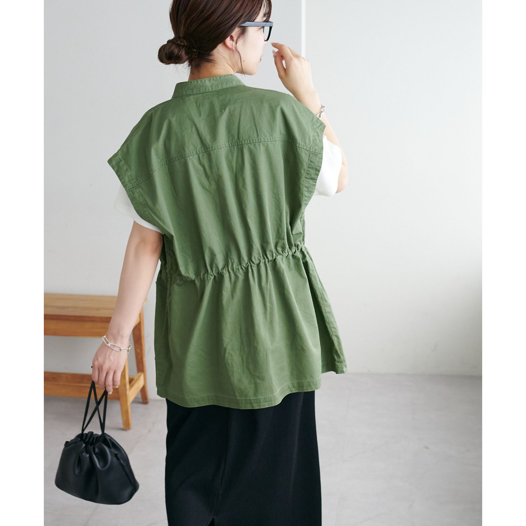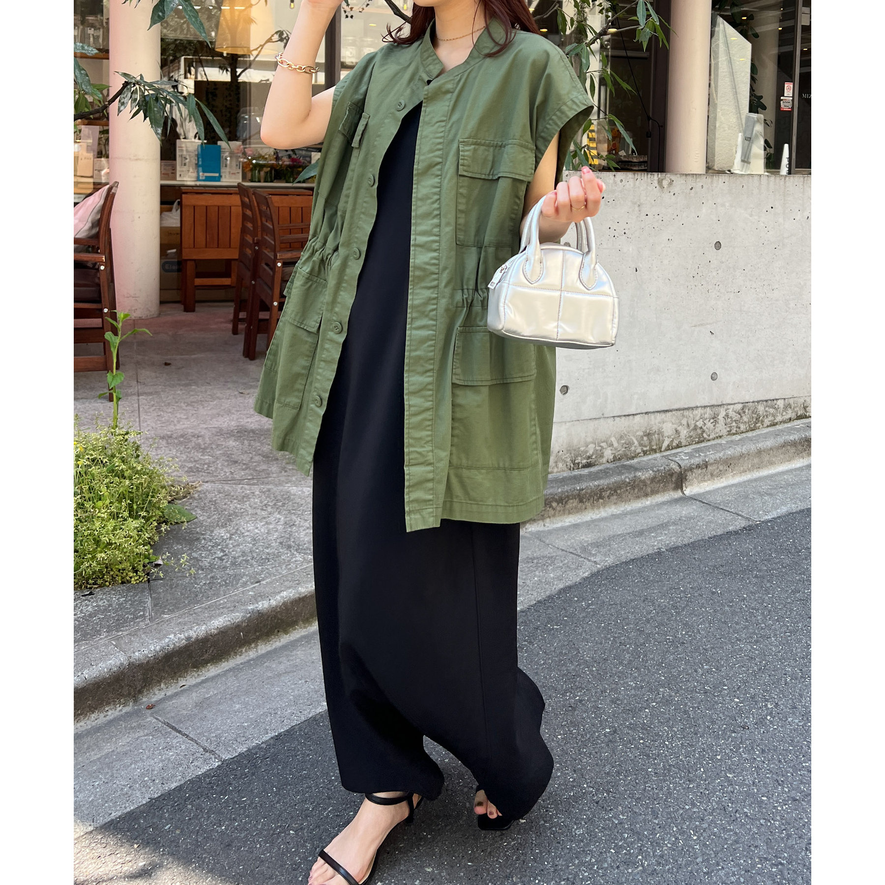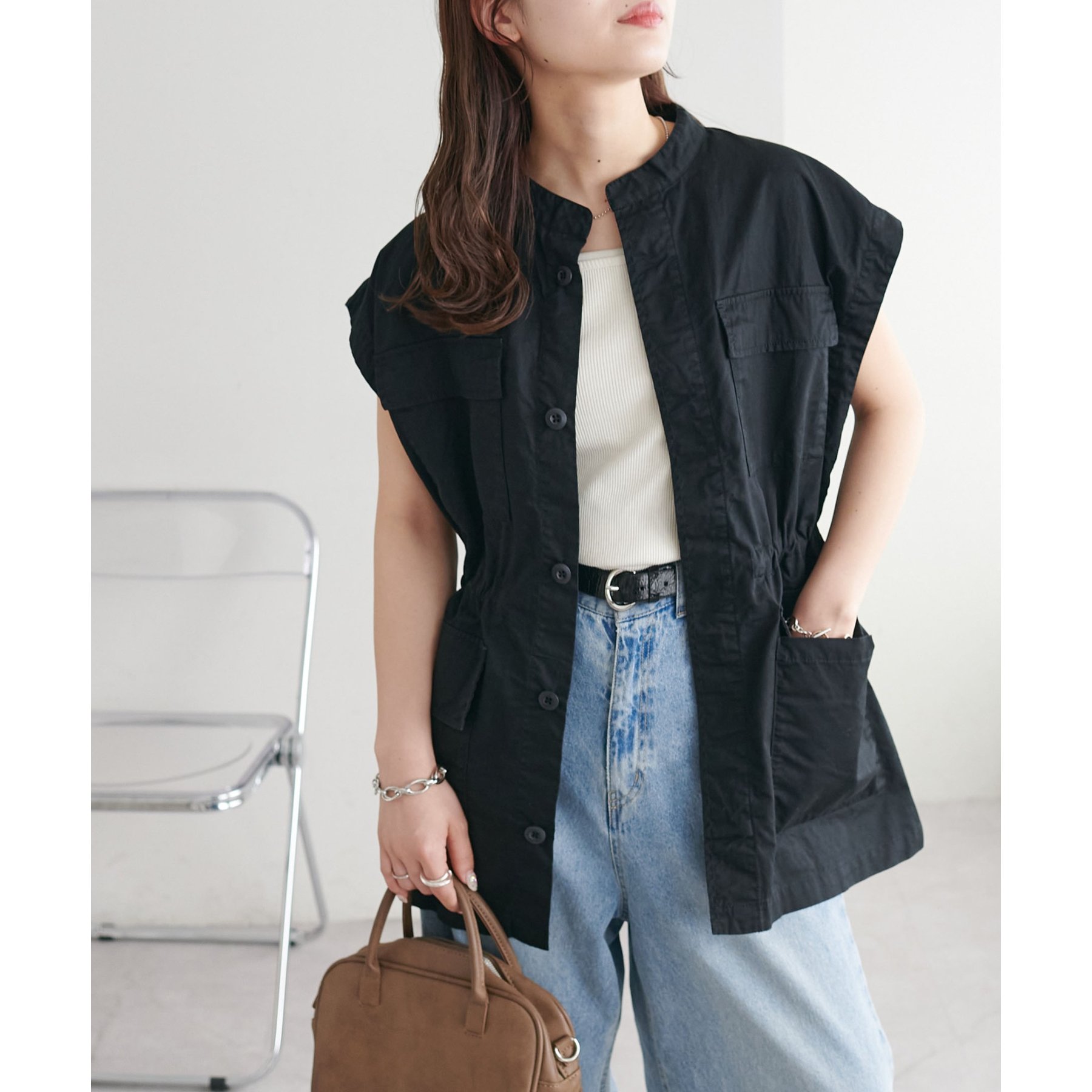 旬のレイヤードを楽しむ、スタンドネックミリタリーベスト