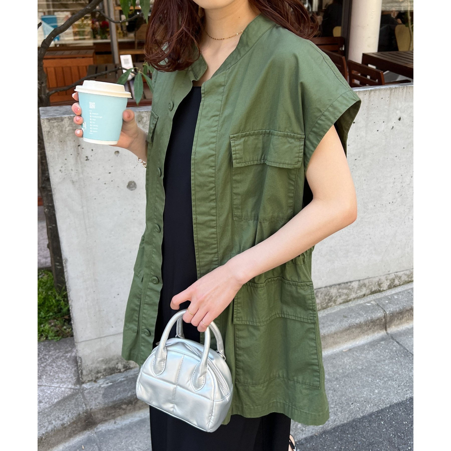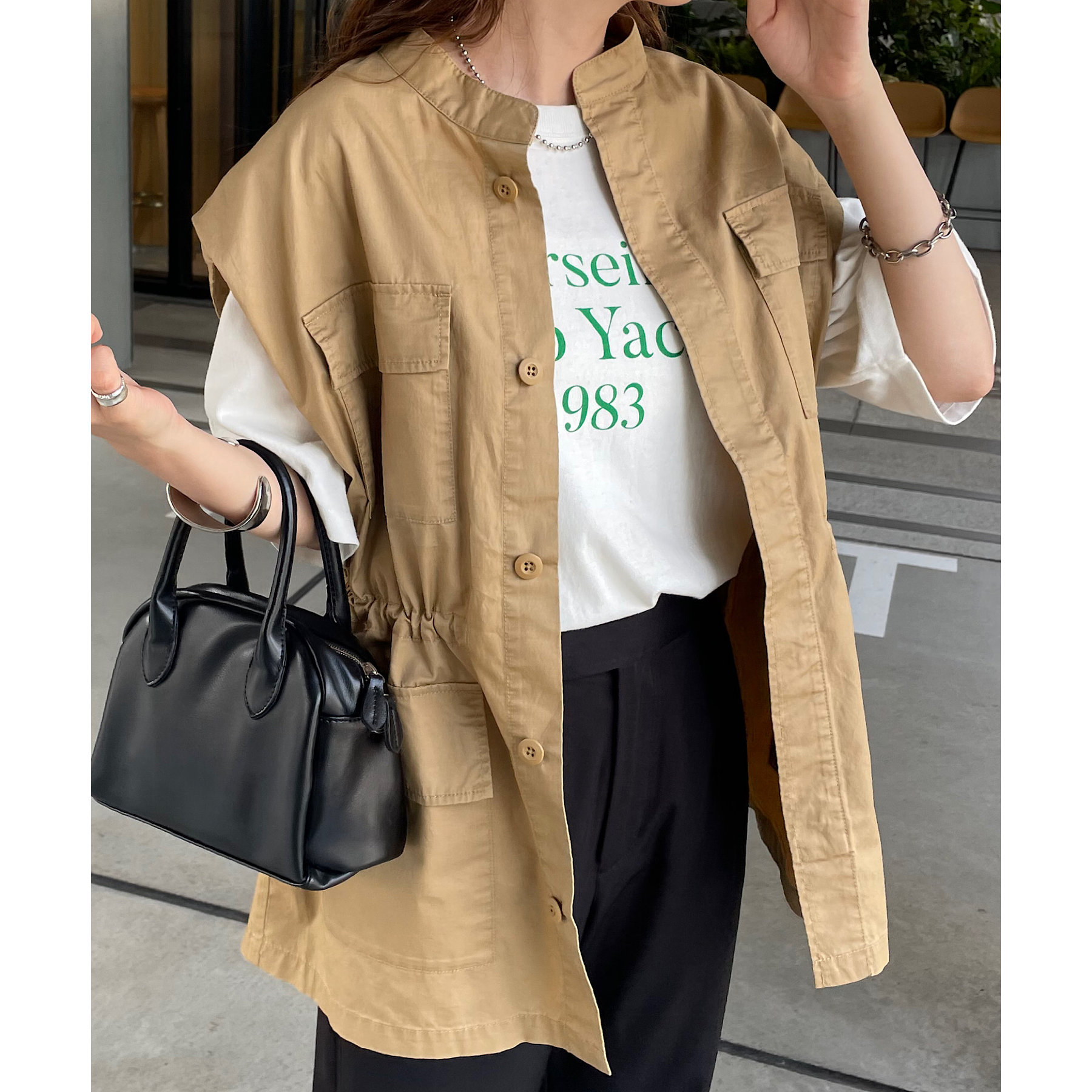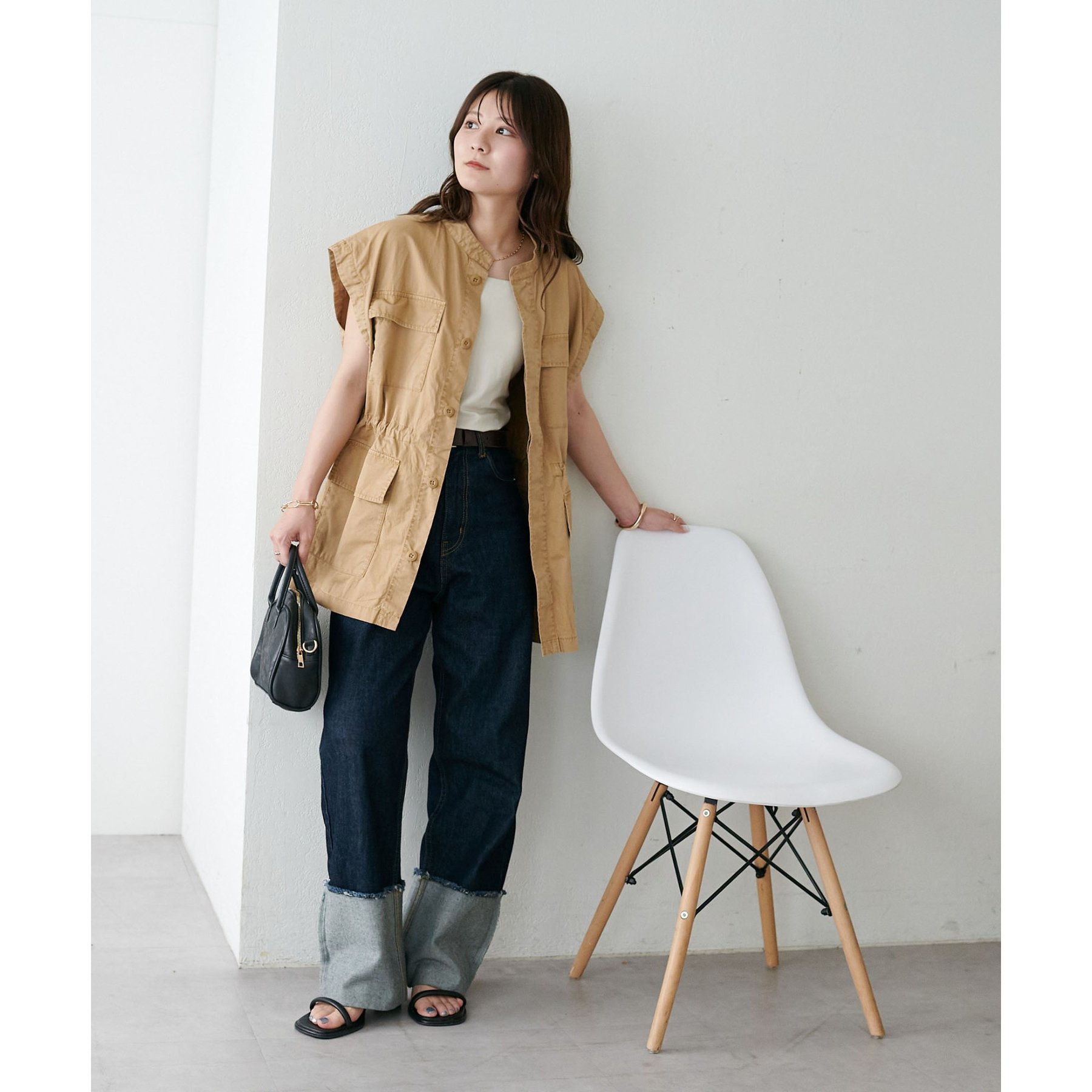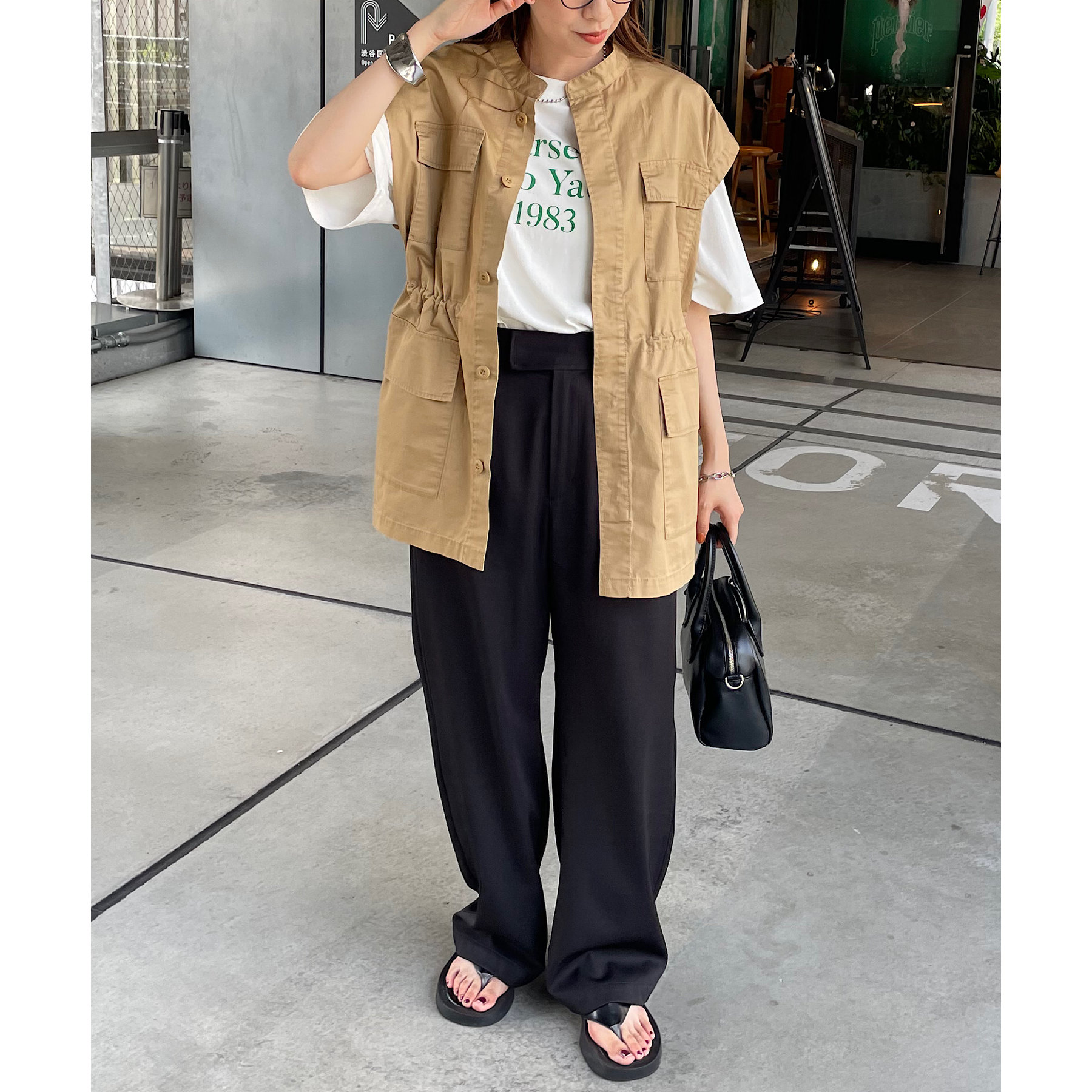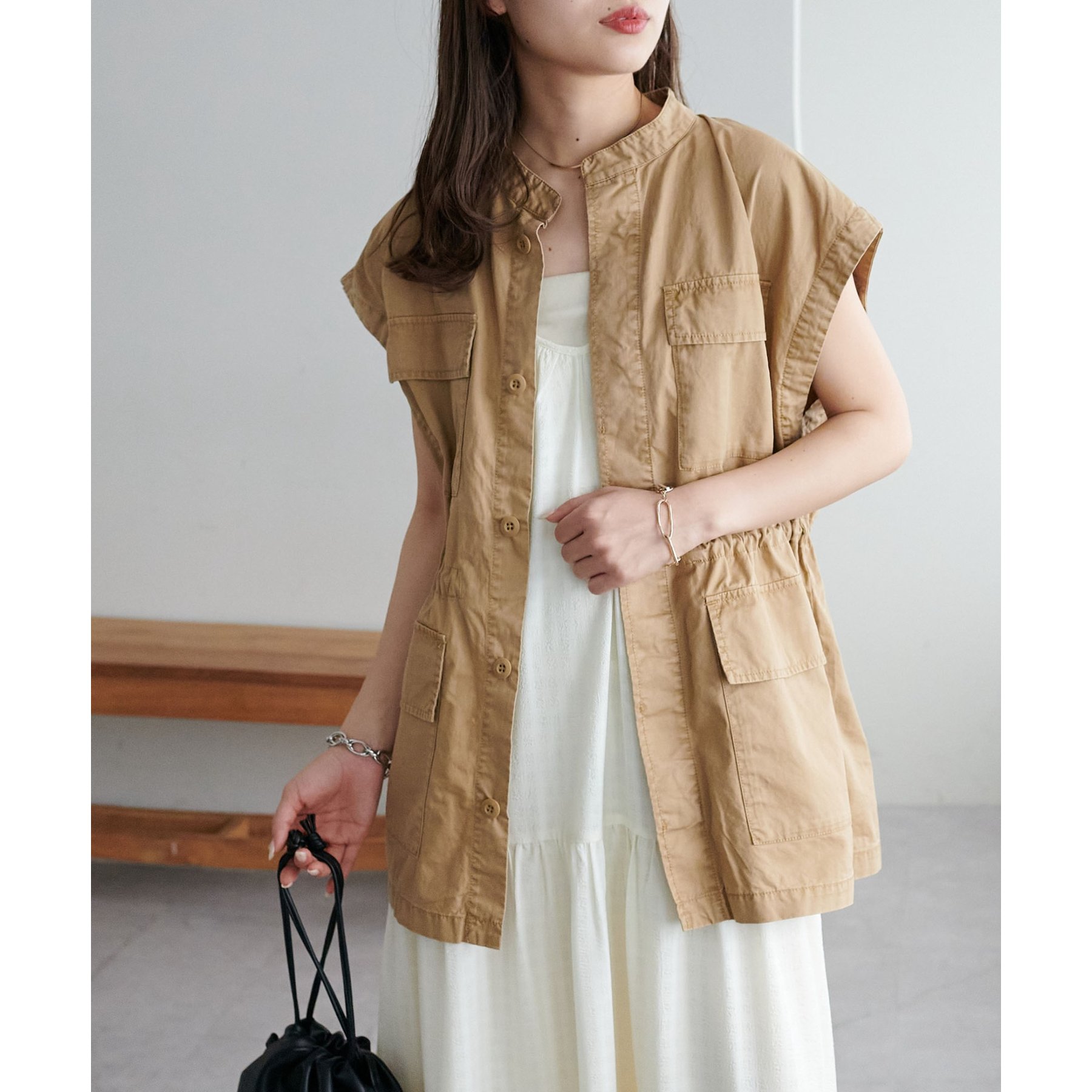 旬のレイヤードを楽しむ、スタンドネックミリタリーベスト
