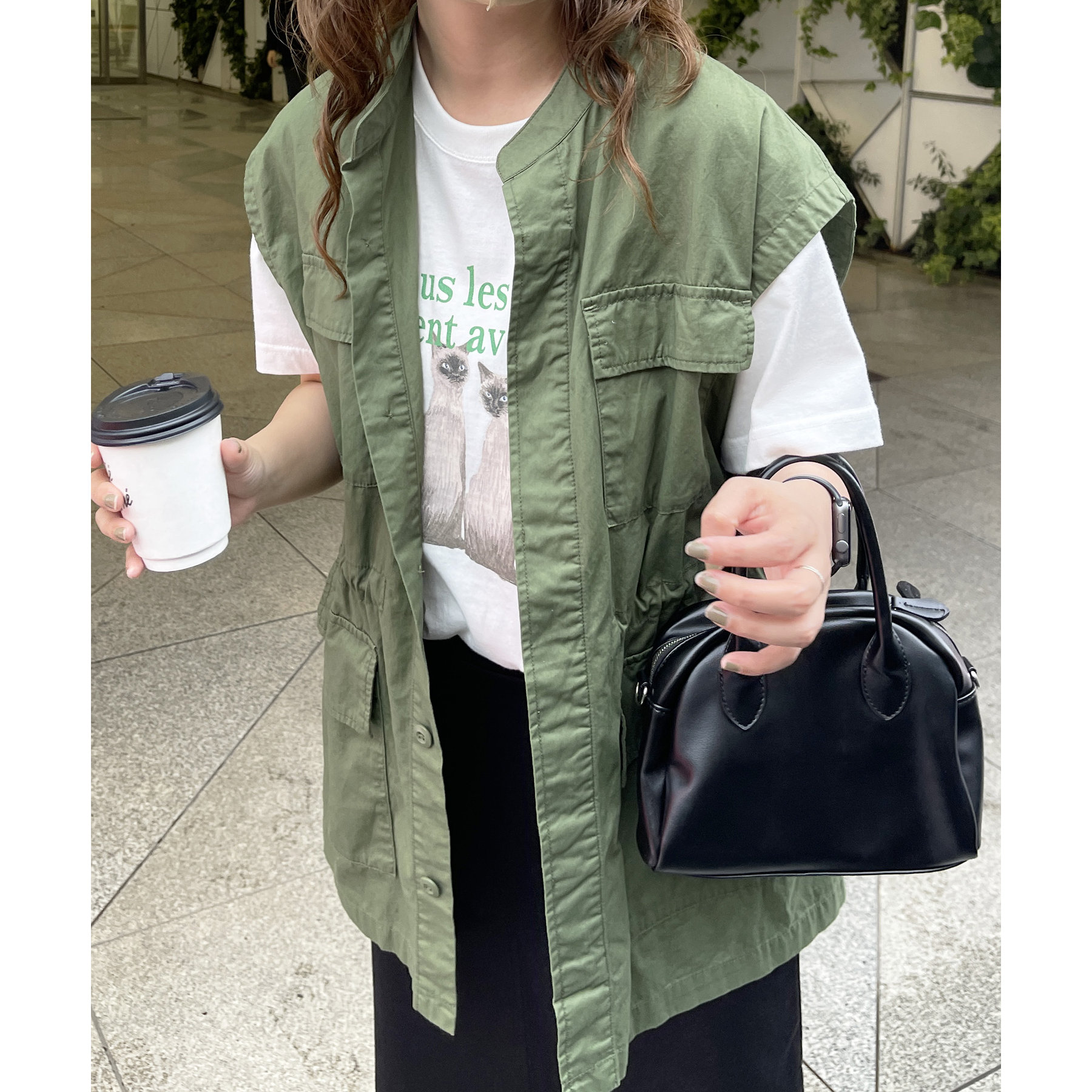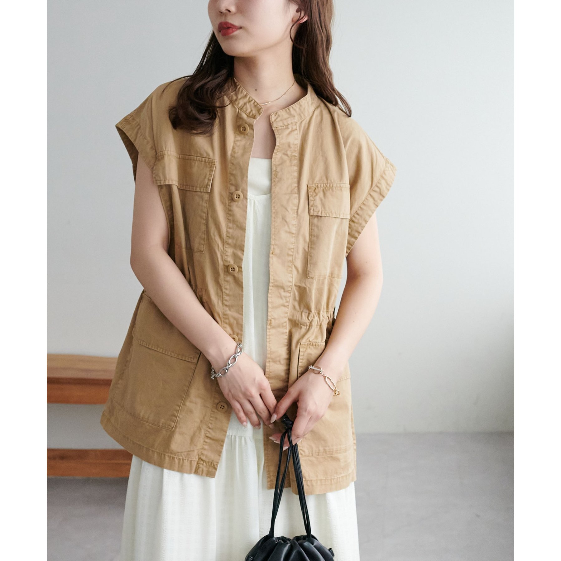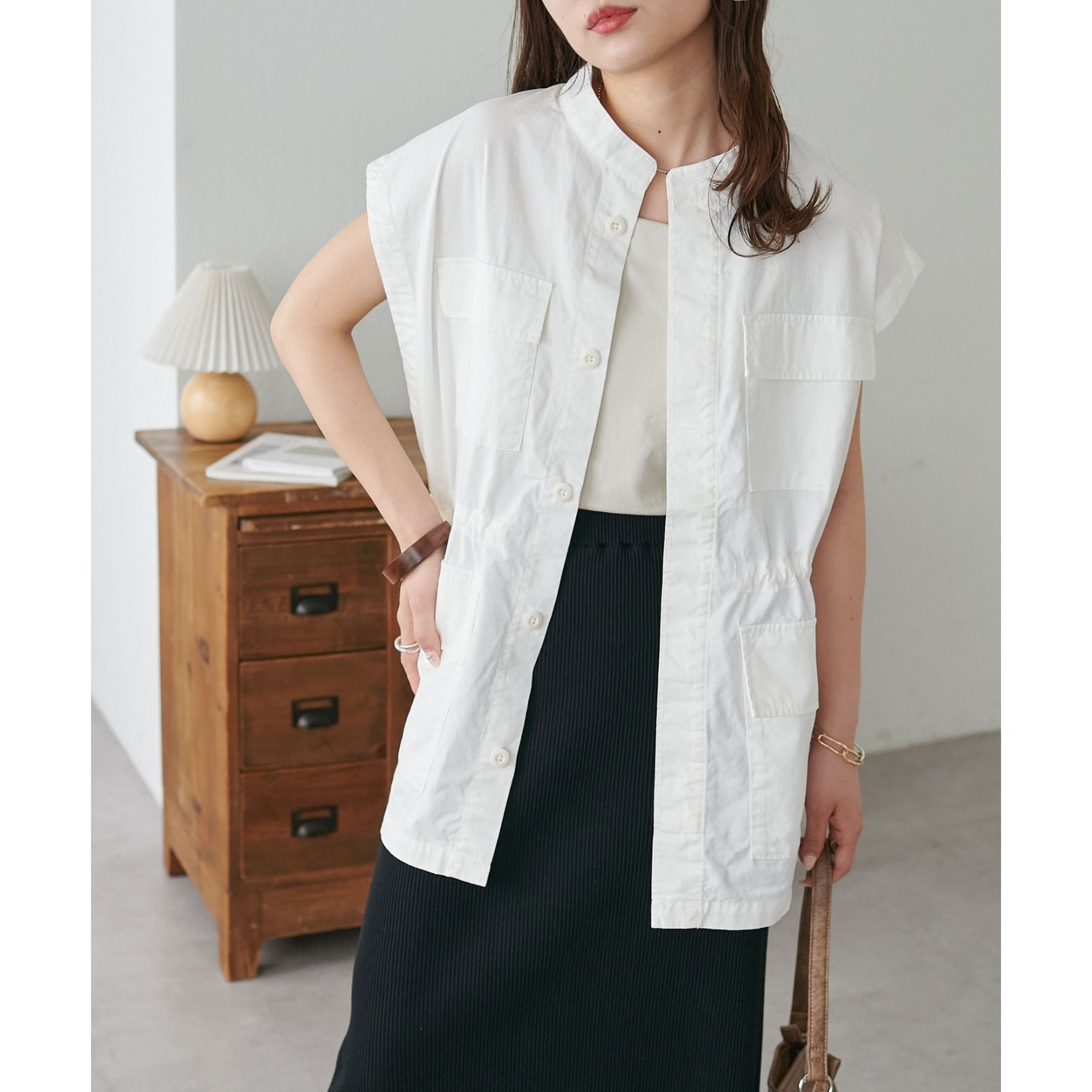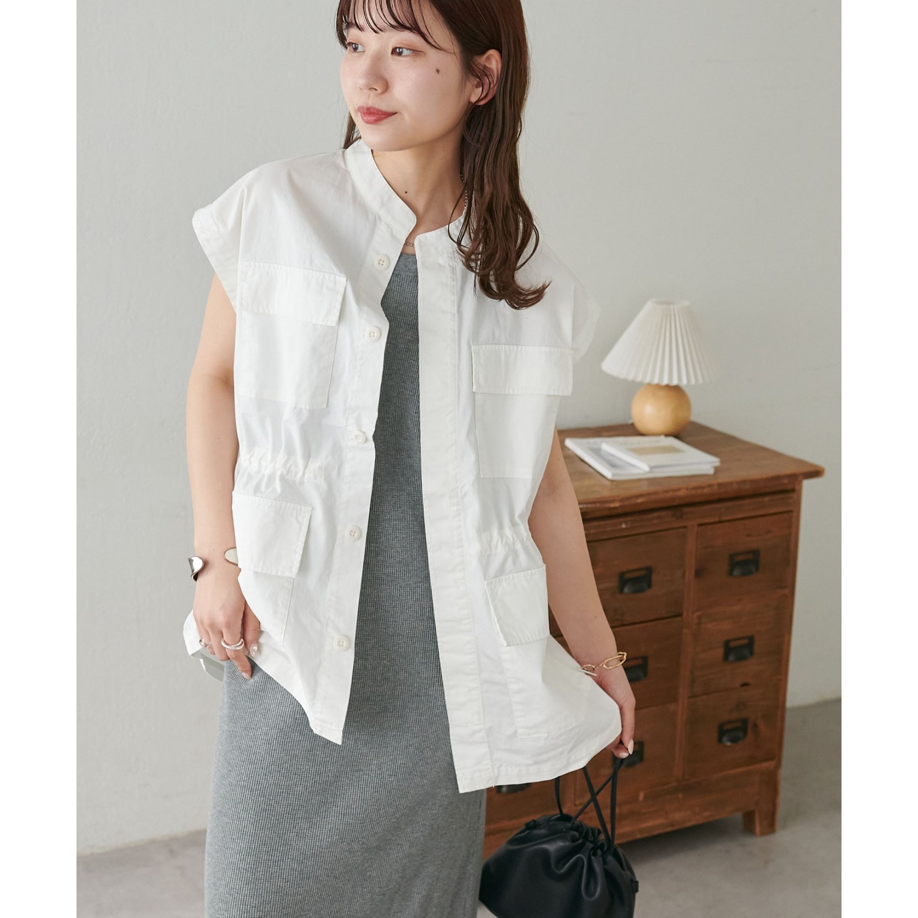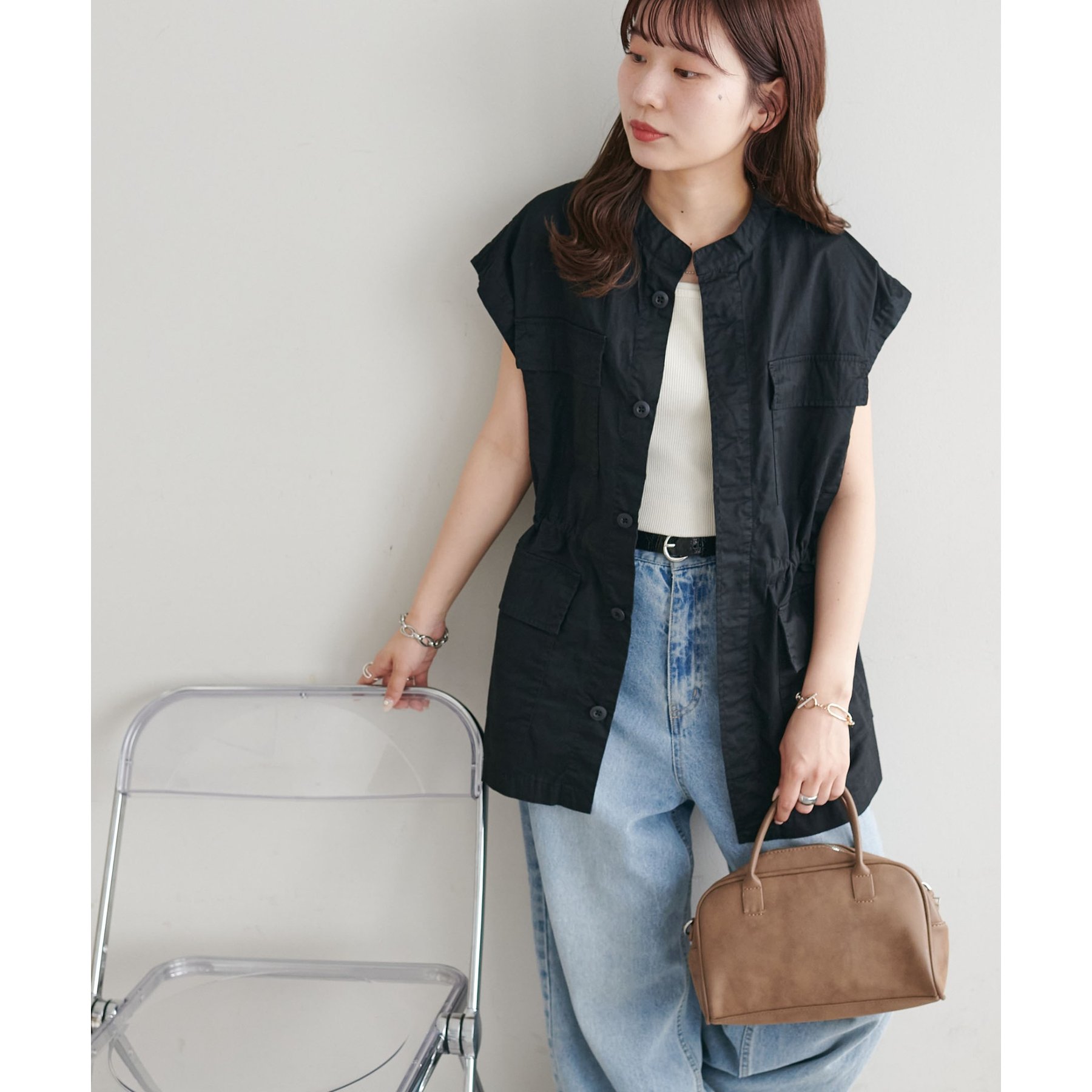 旬のレイヤードを楽しむ、スタンドネックミリタリーベスト