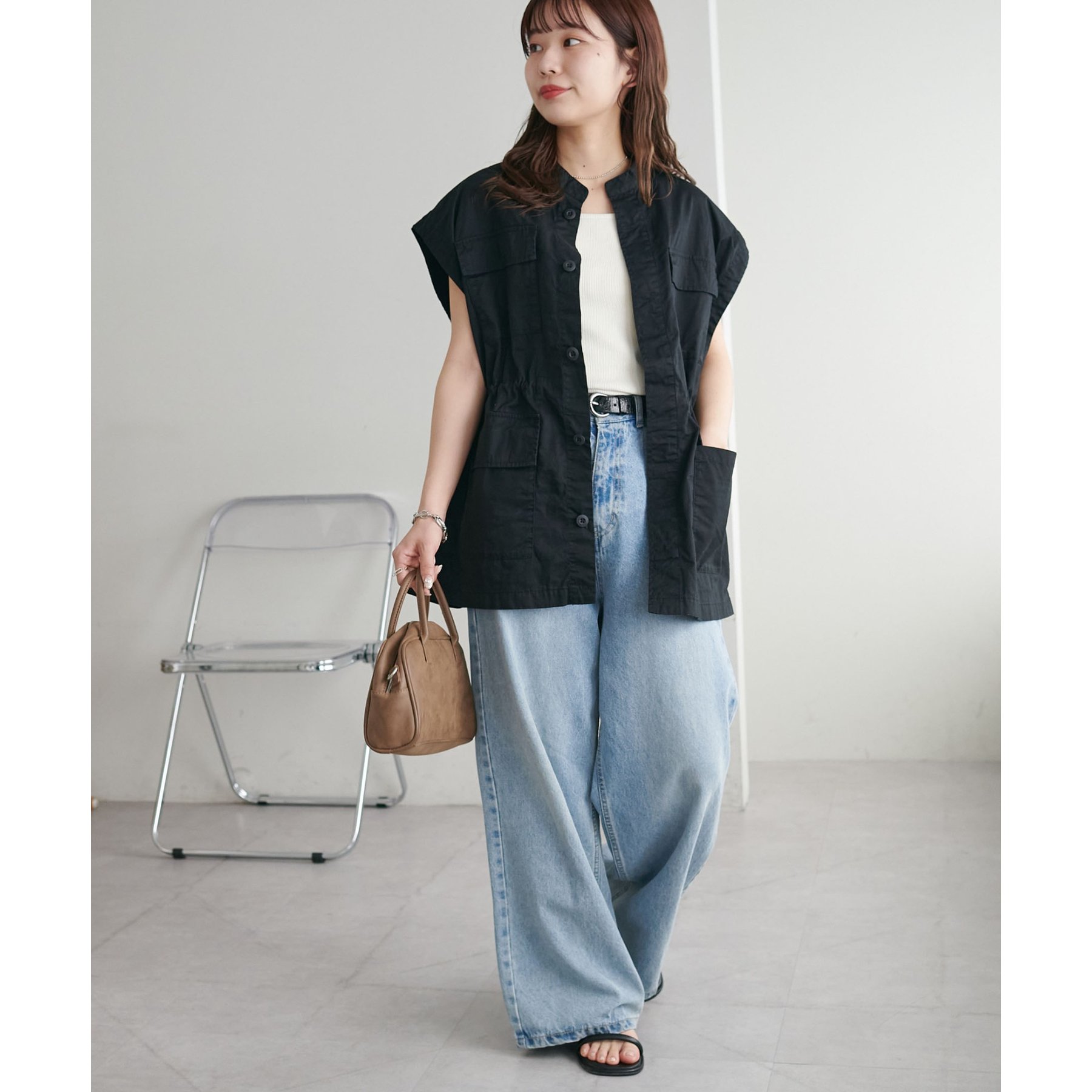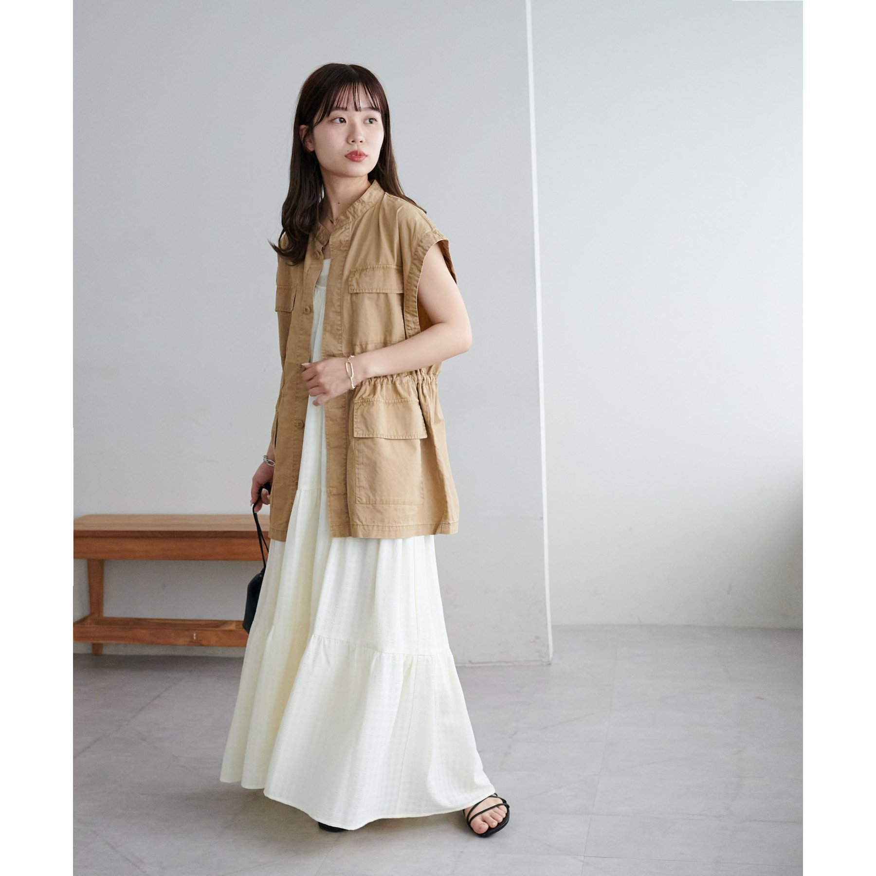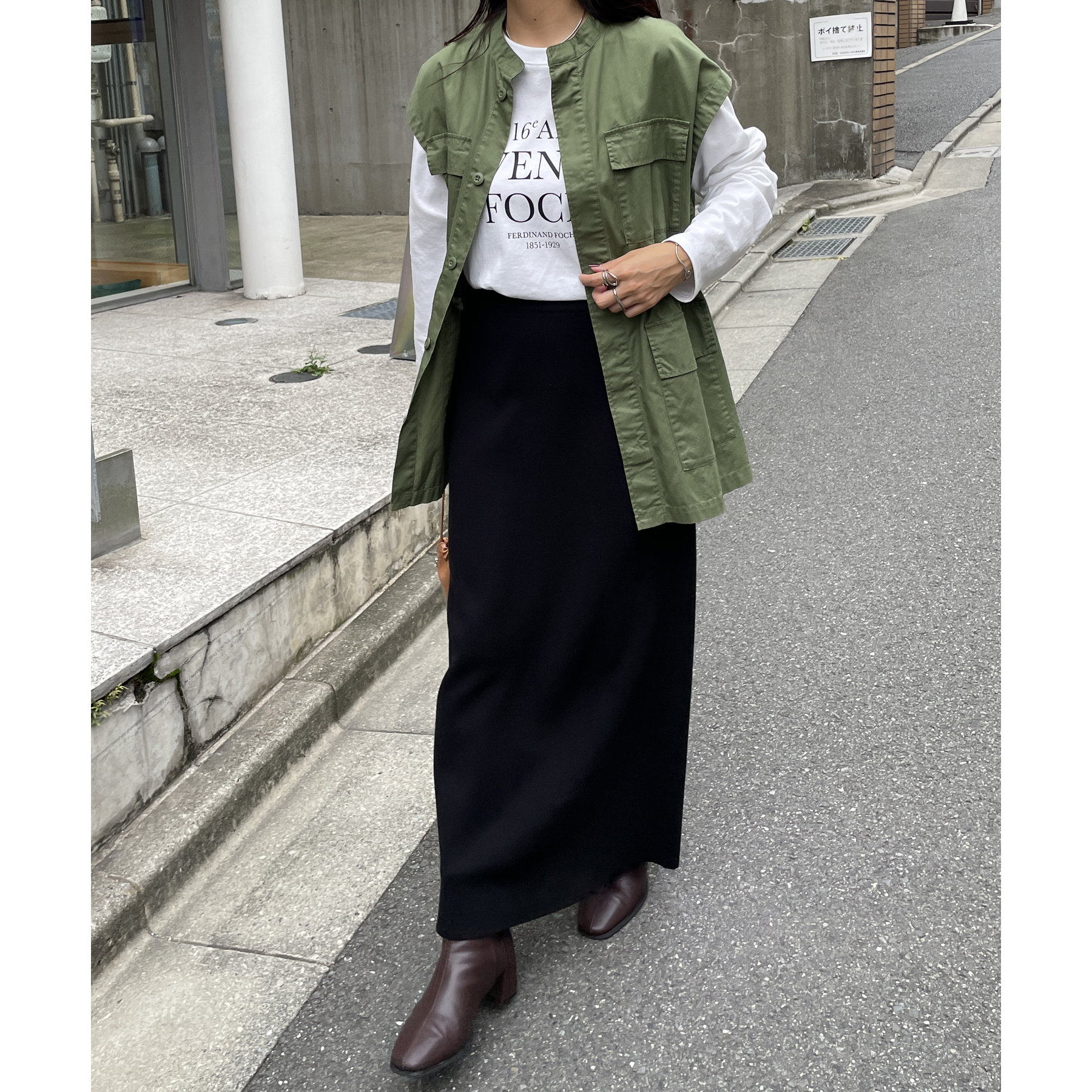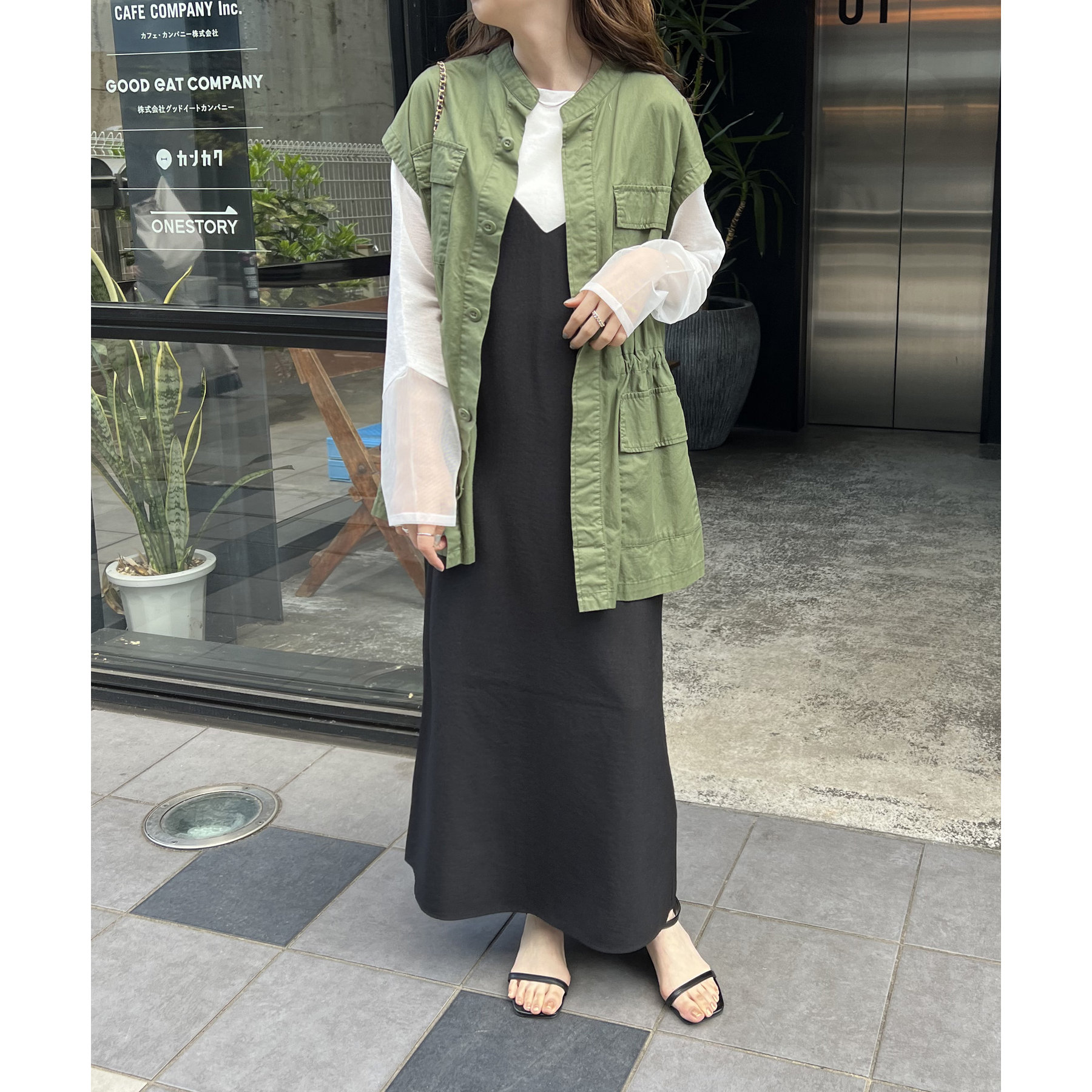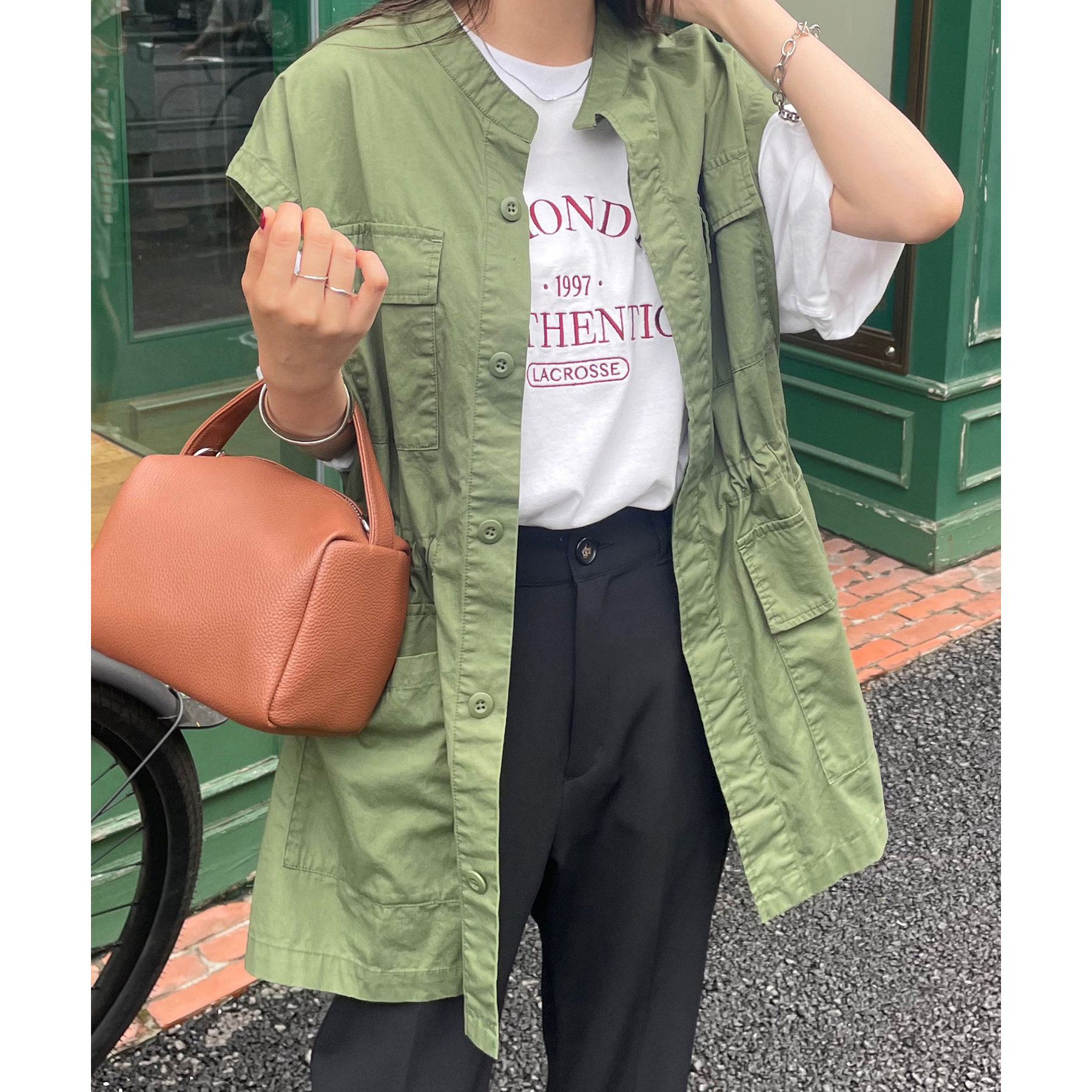 旬のレイヤードを楽しむ、スタンドネックミリタリーベスト