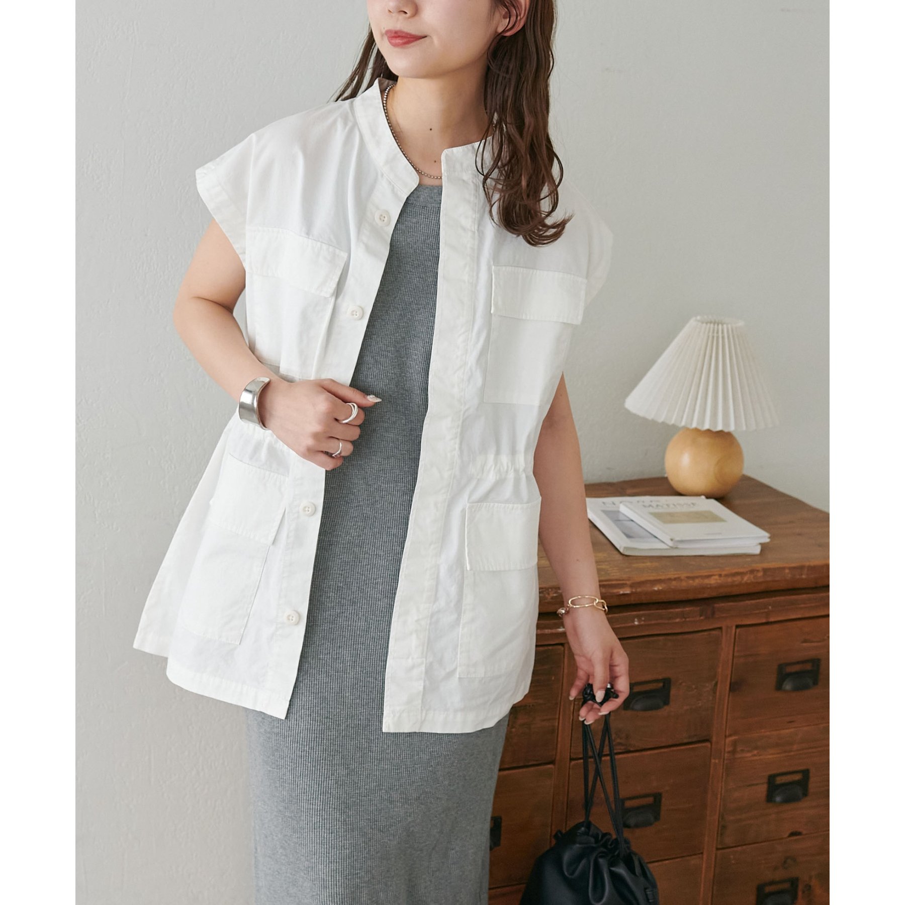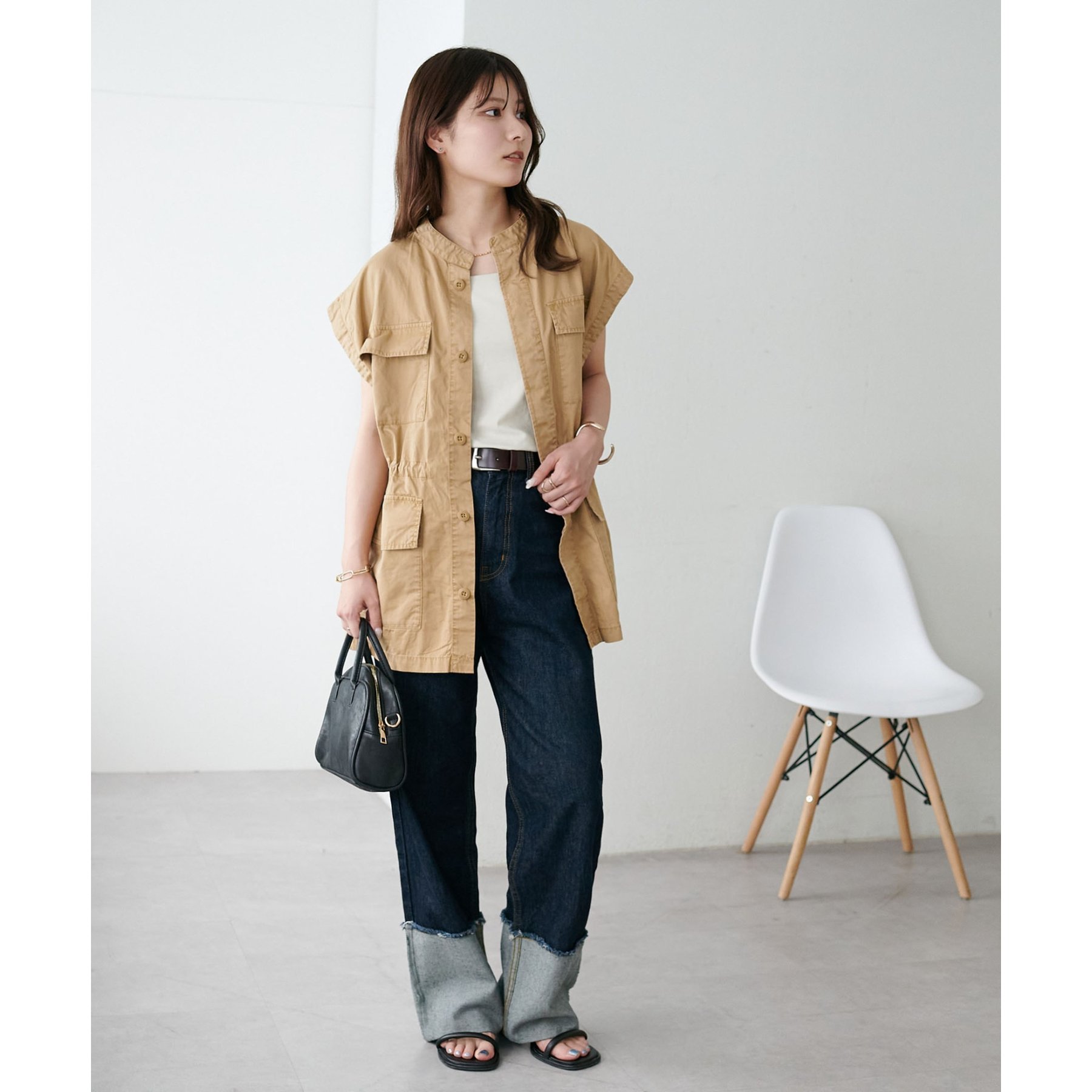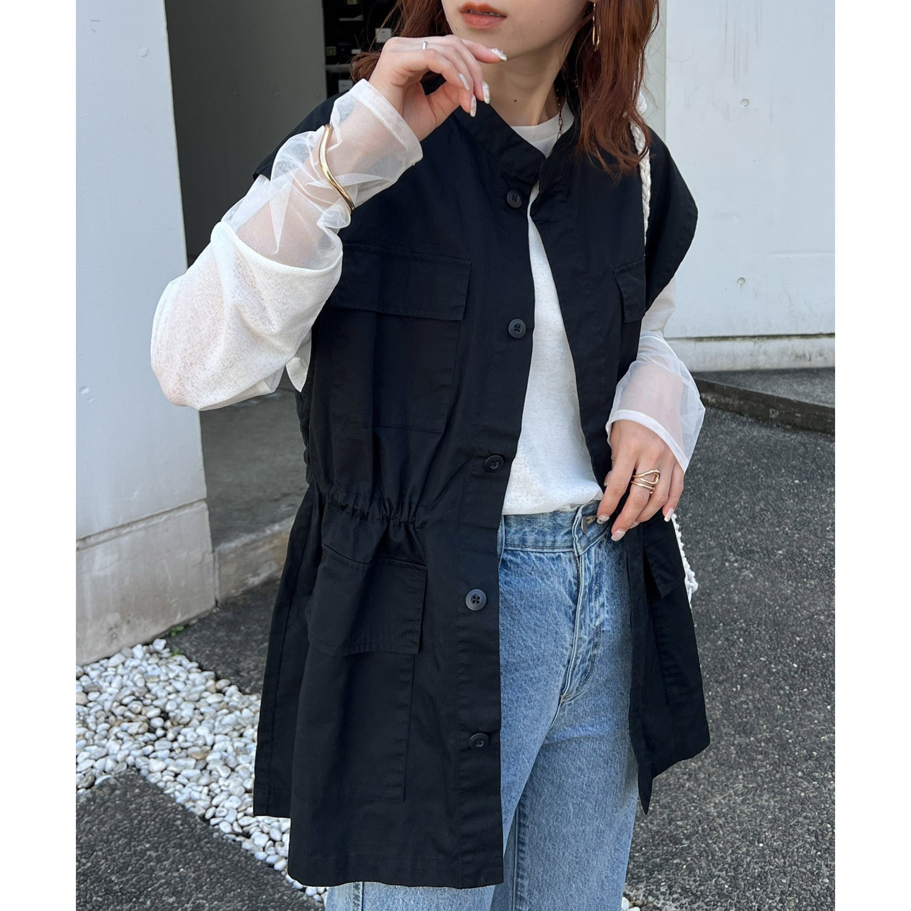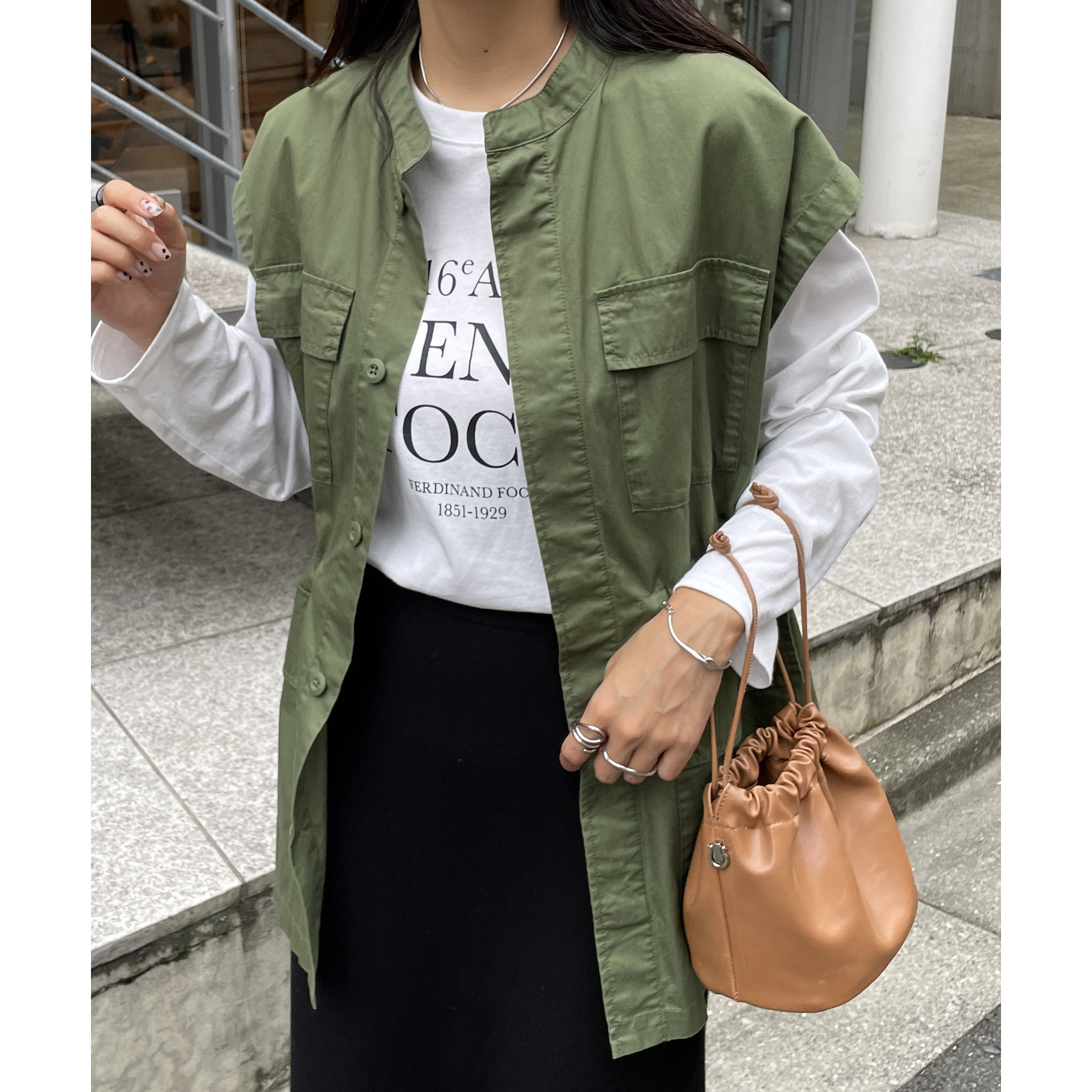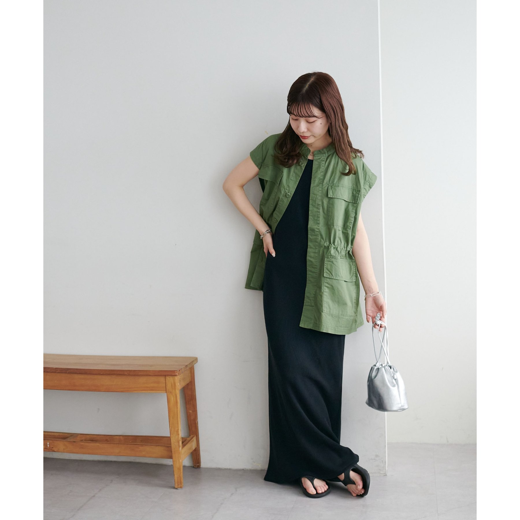 旬のレイヤードを楽しむ、スタンドネックミリタリーベスト