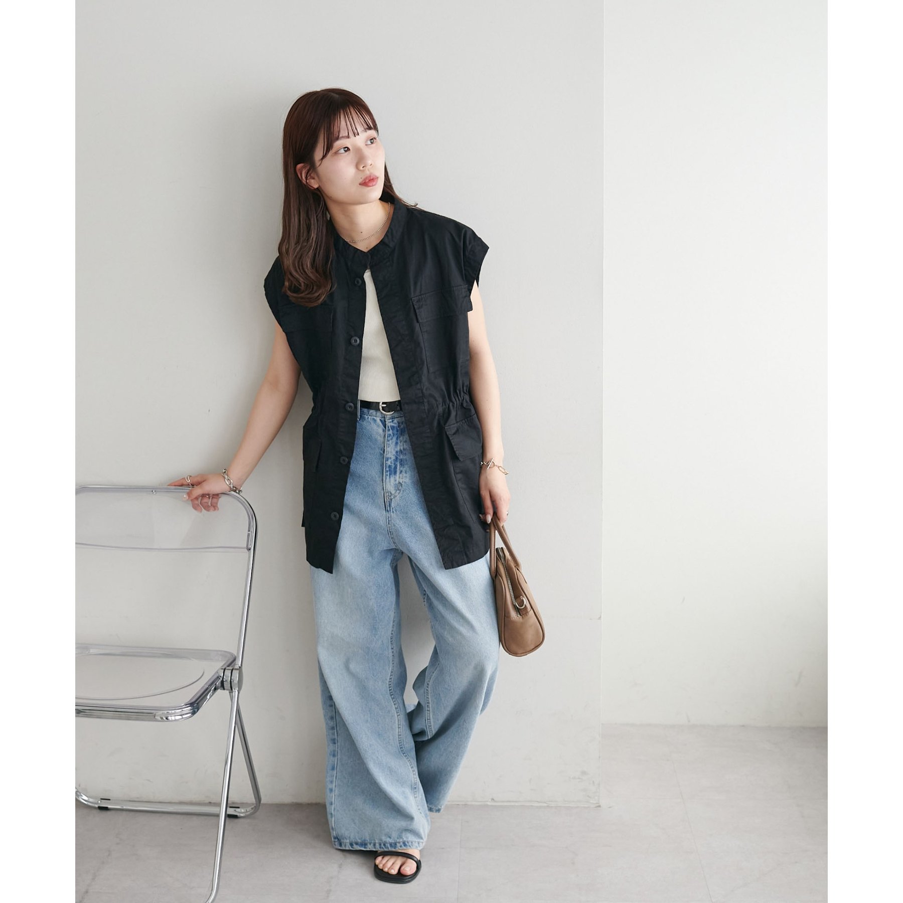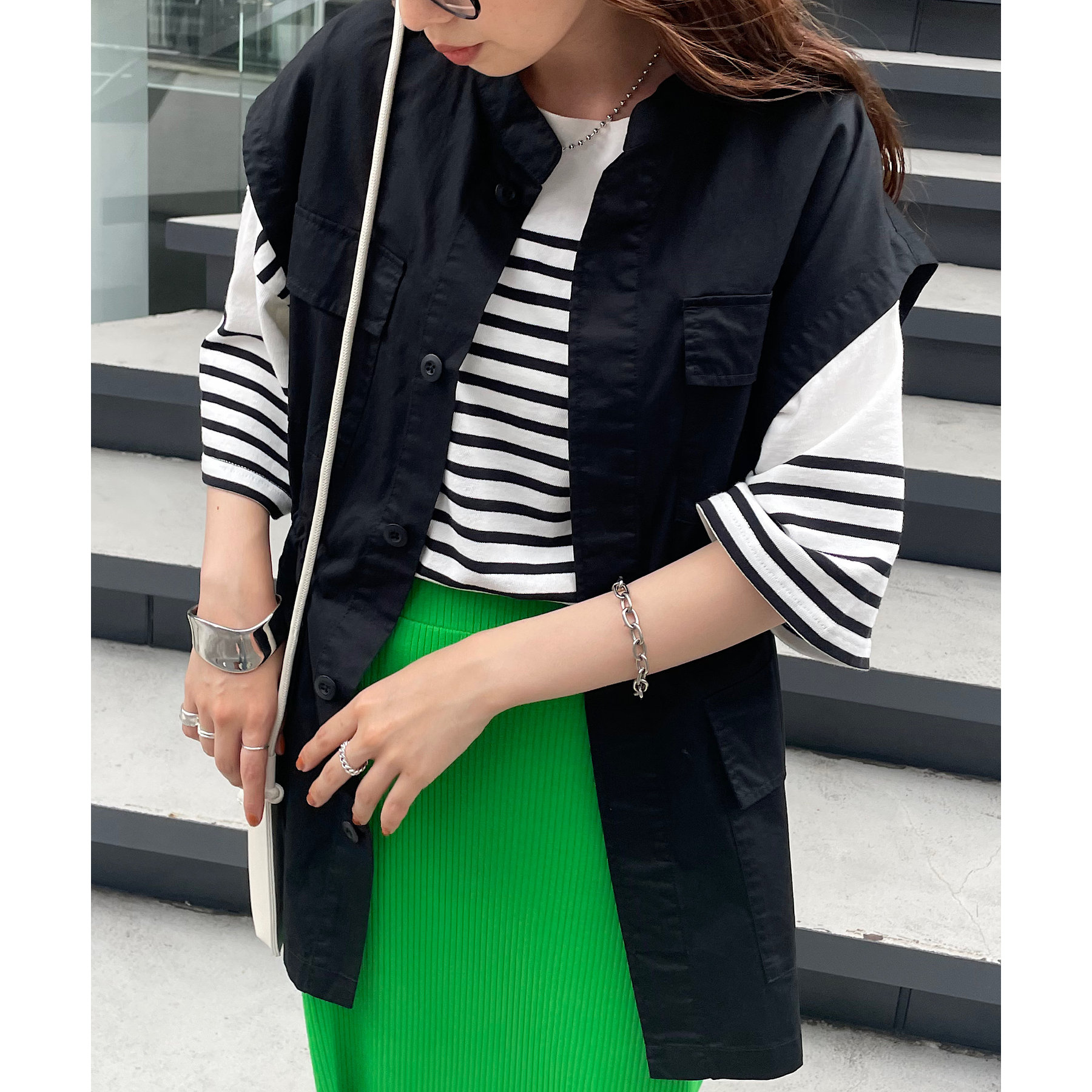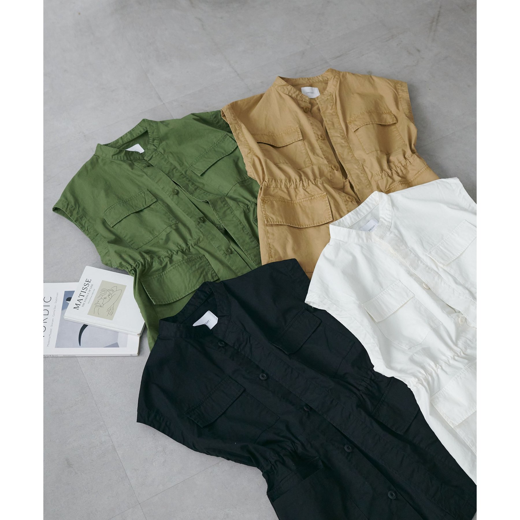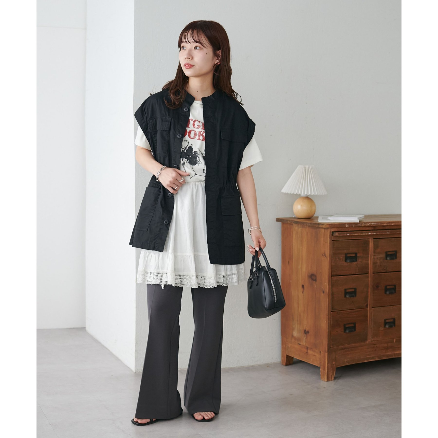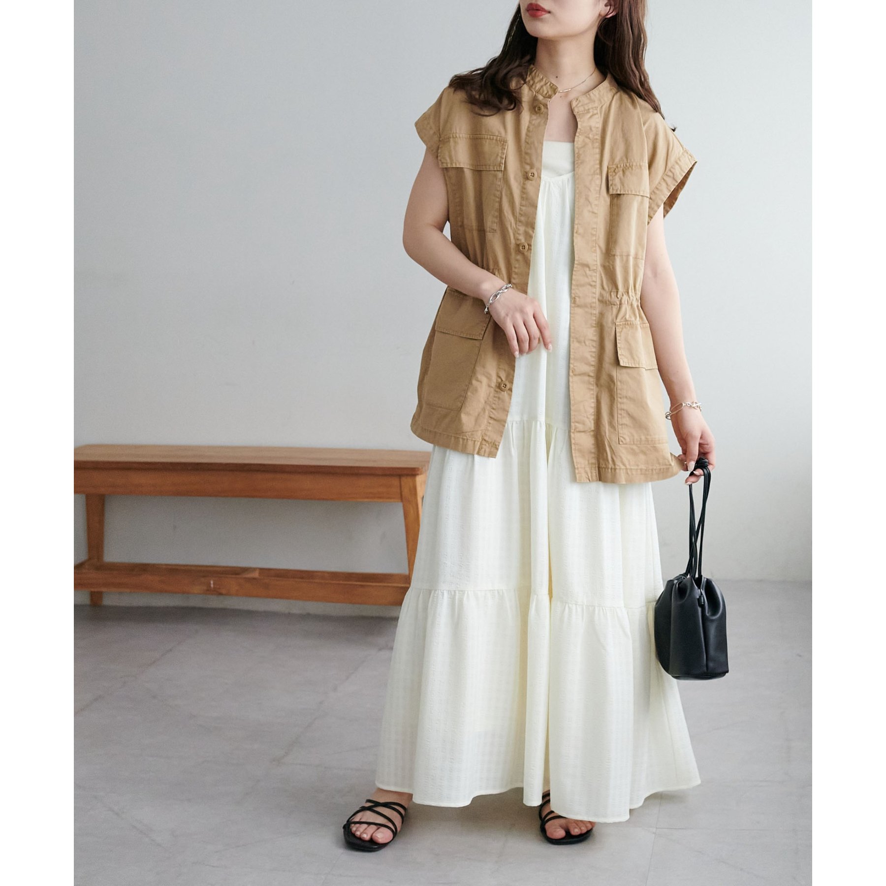 旬のレイヤードを楽しむ、スタンドネックミリタリーベスト