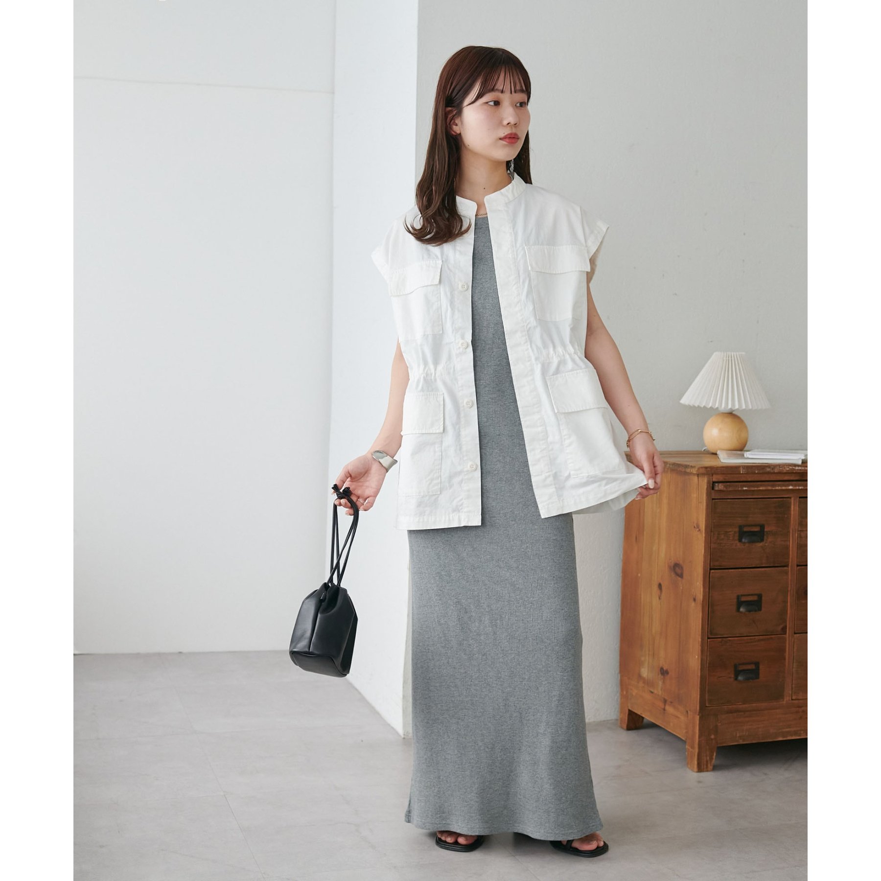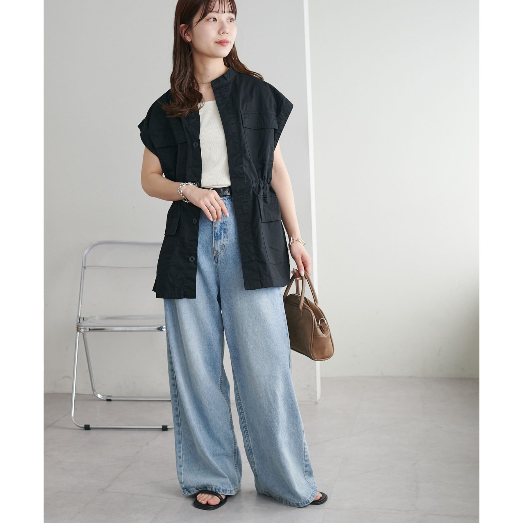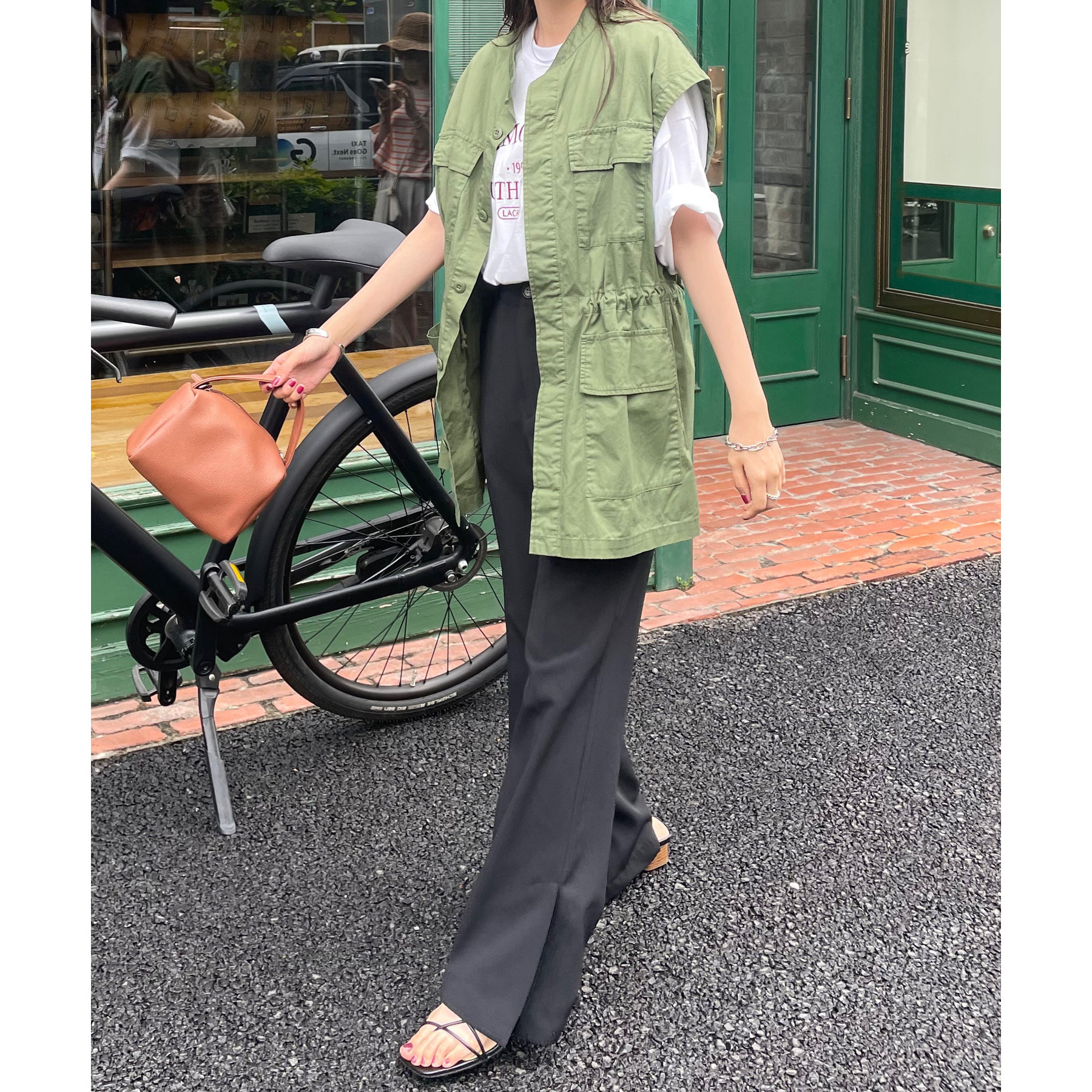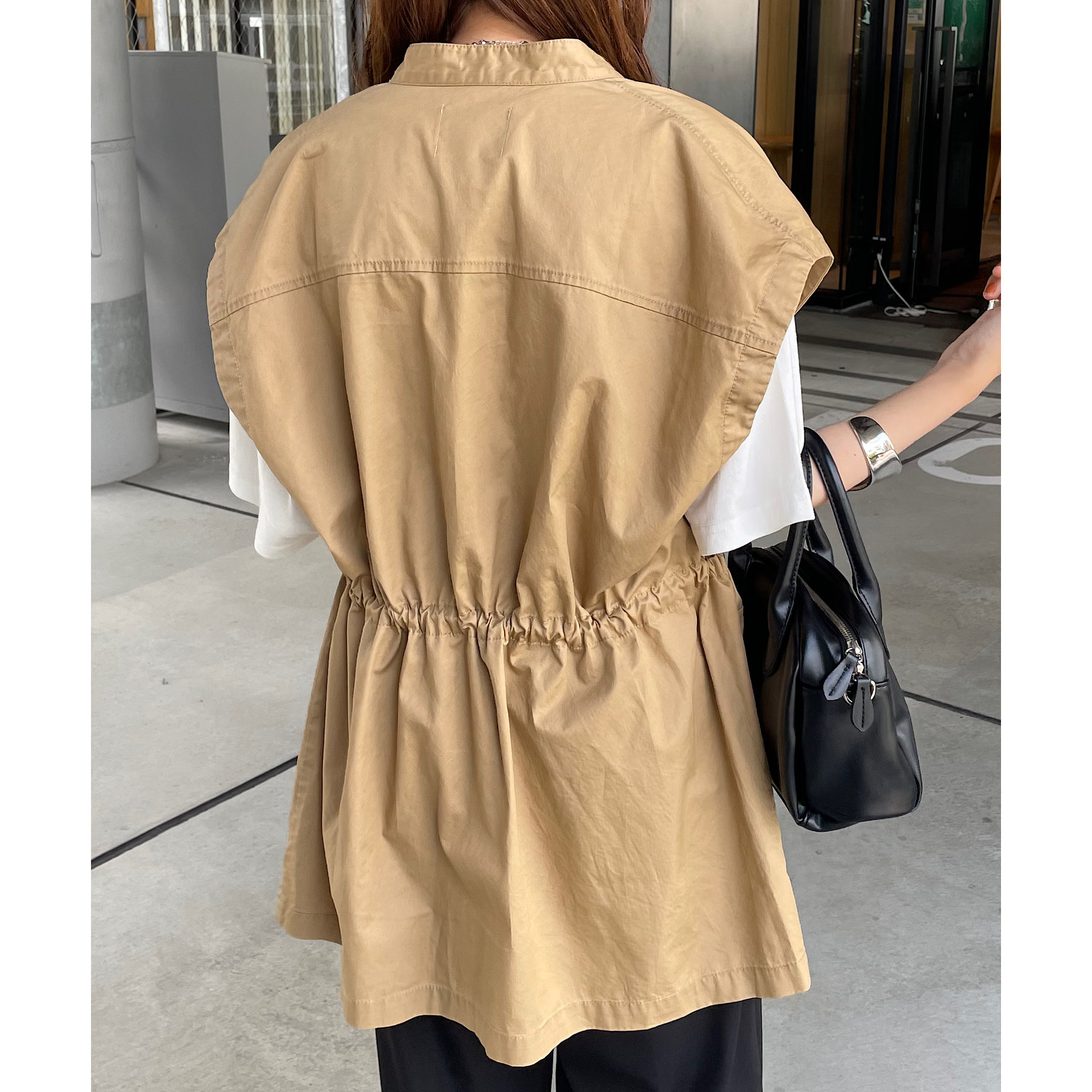 旬のレイヤードを楽しむ、スタンドネックミリタリーベスト