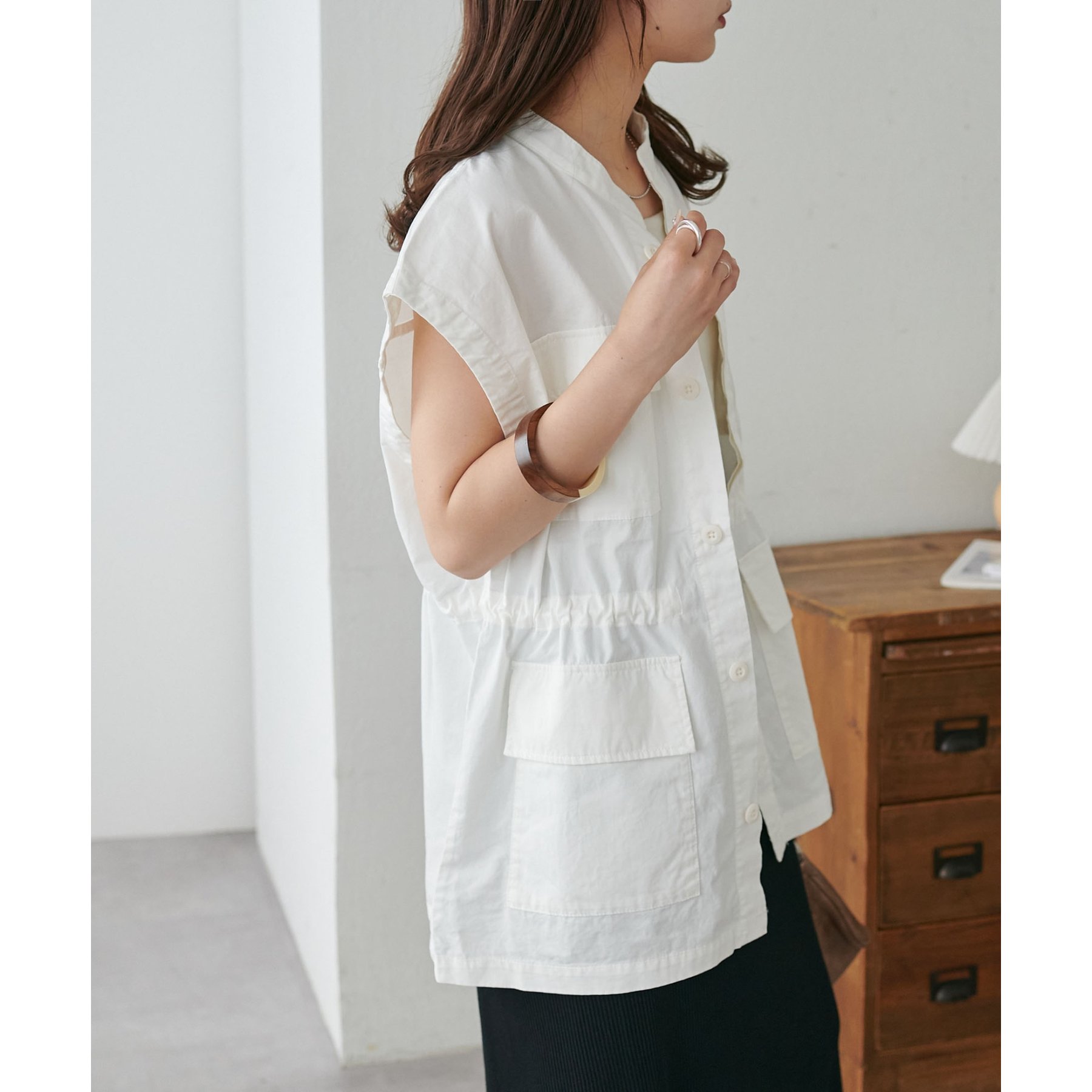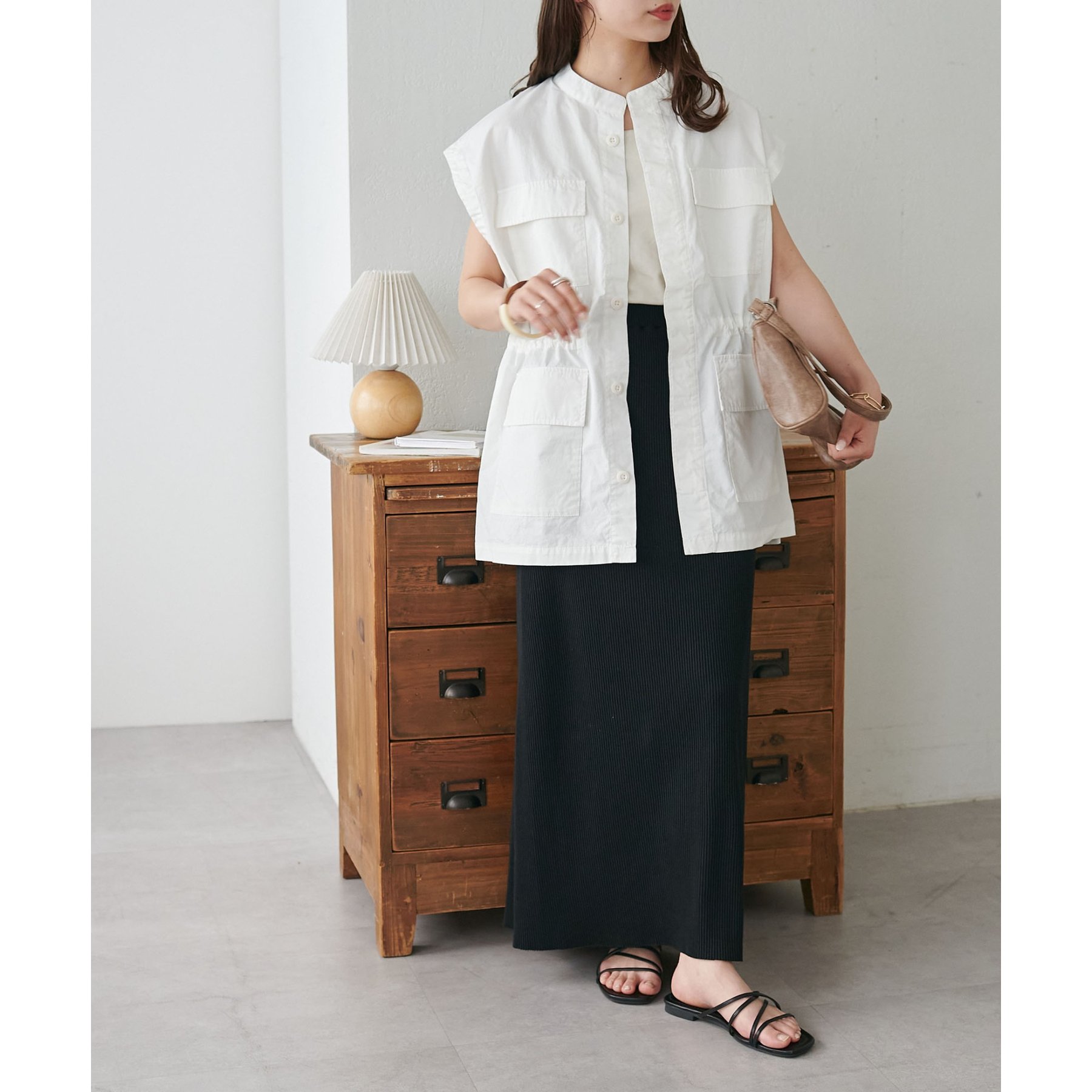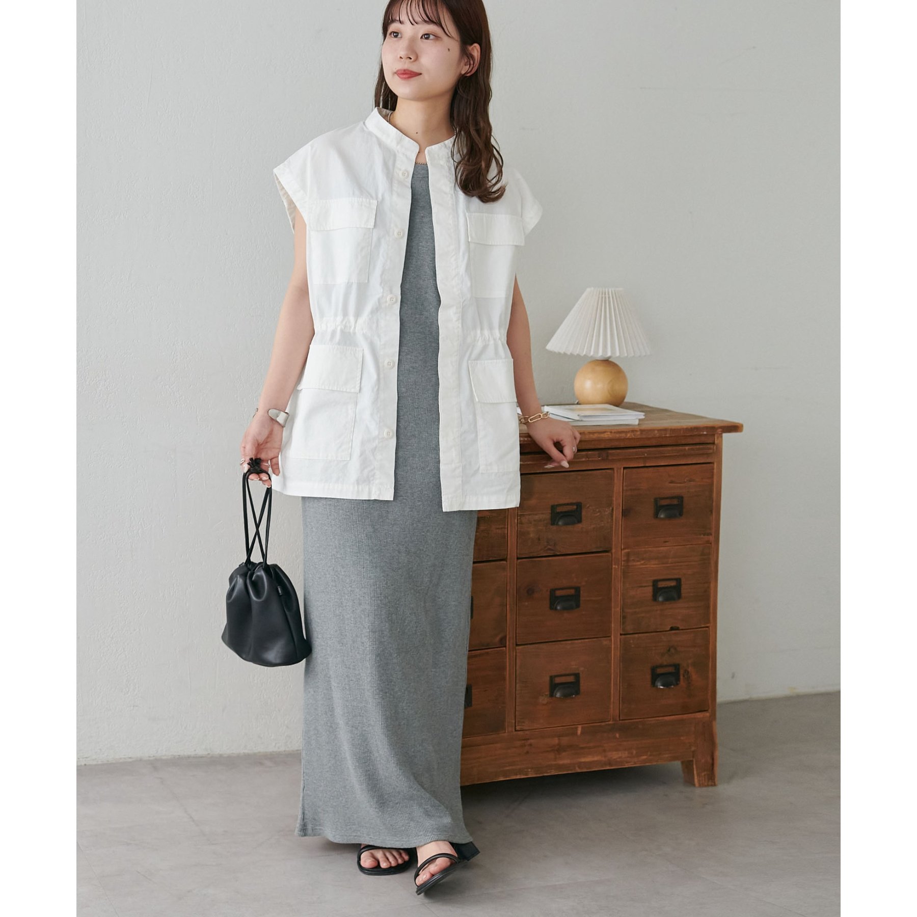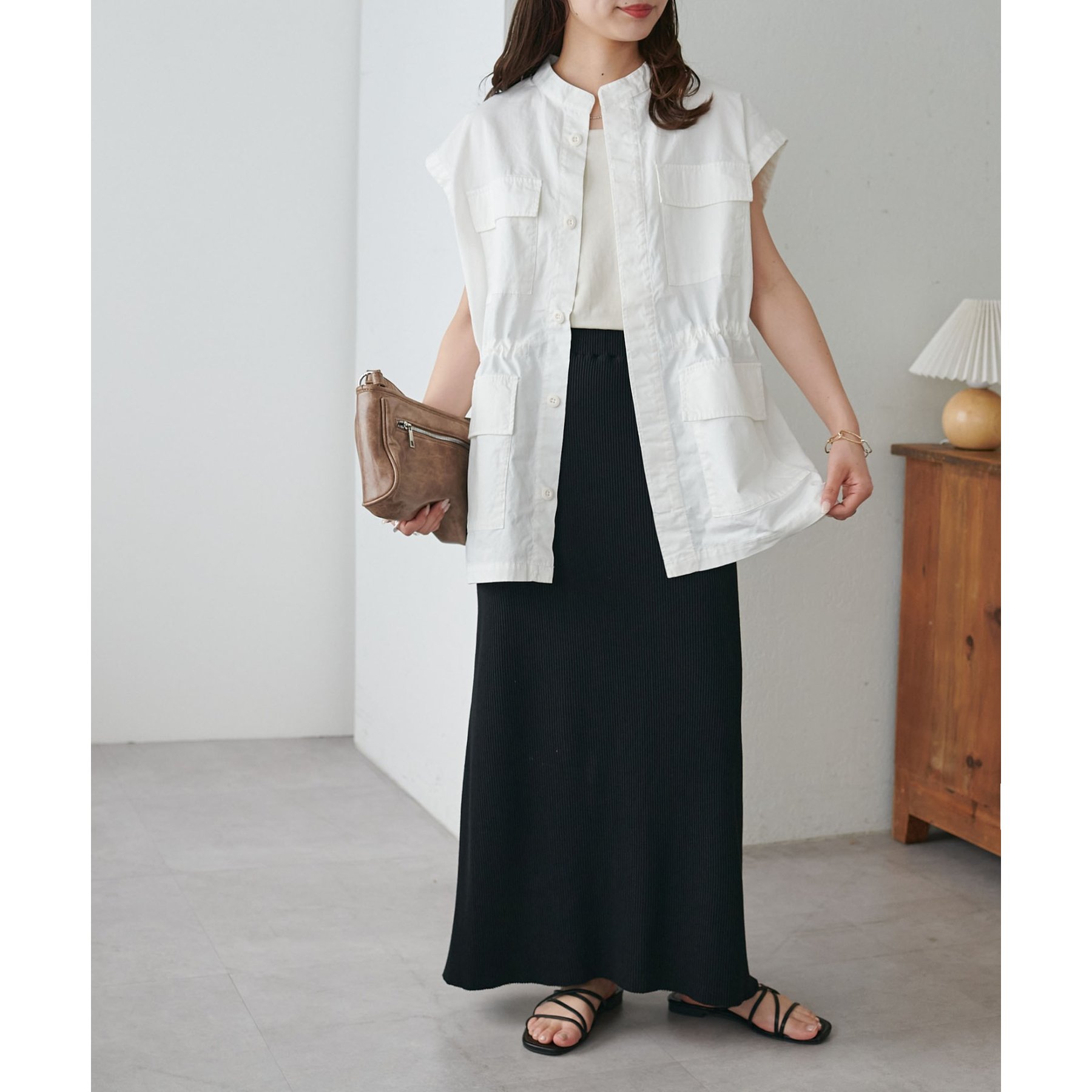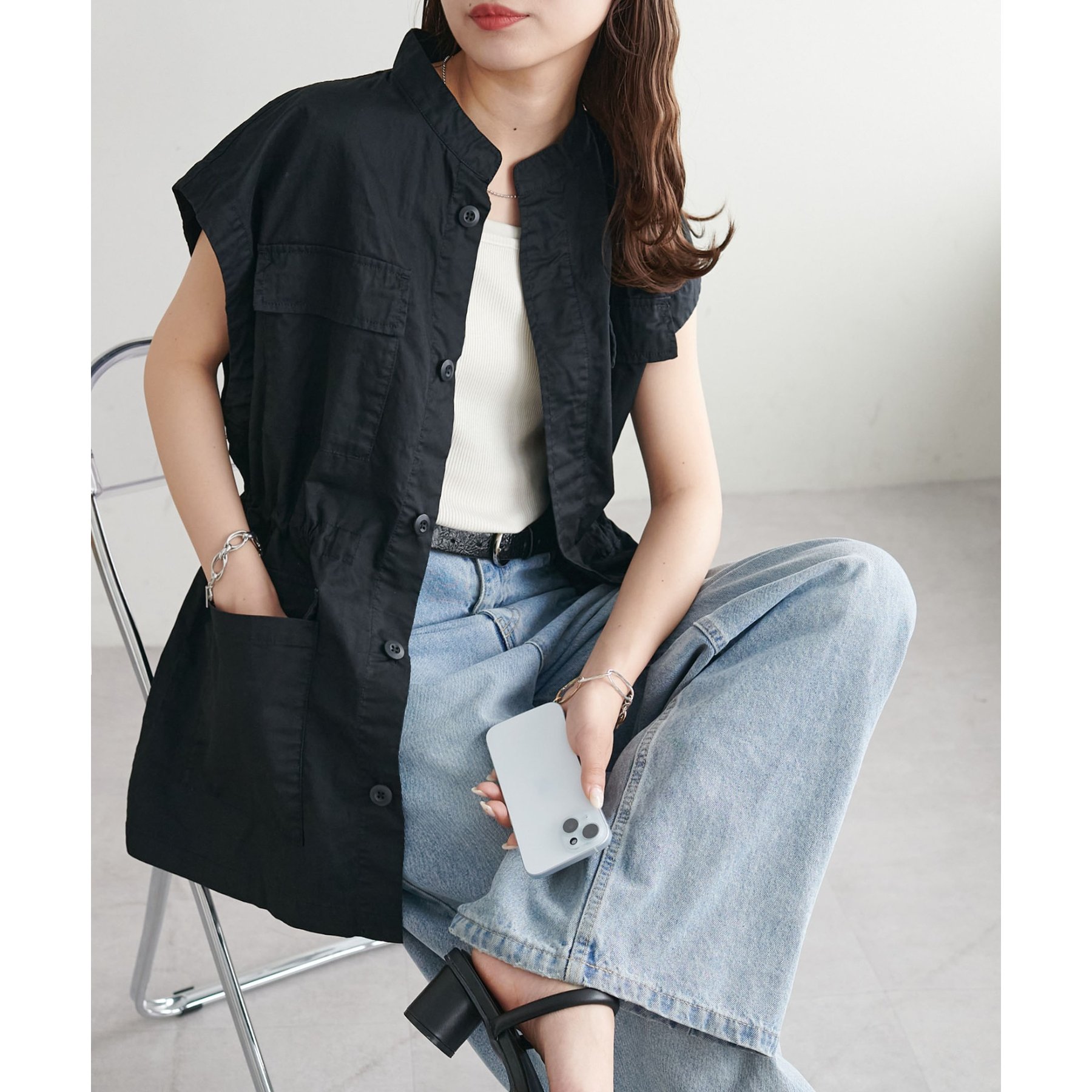 旬のレイヤードを楽しむ、スタンドネックミリタリーベスト
