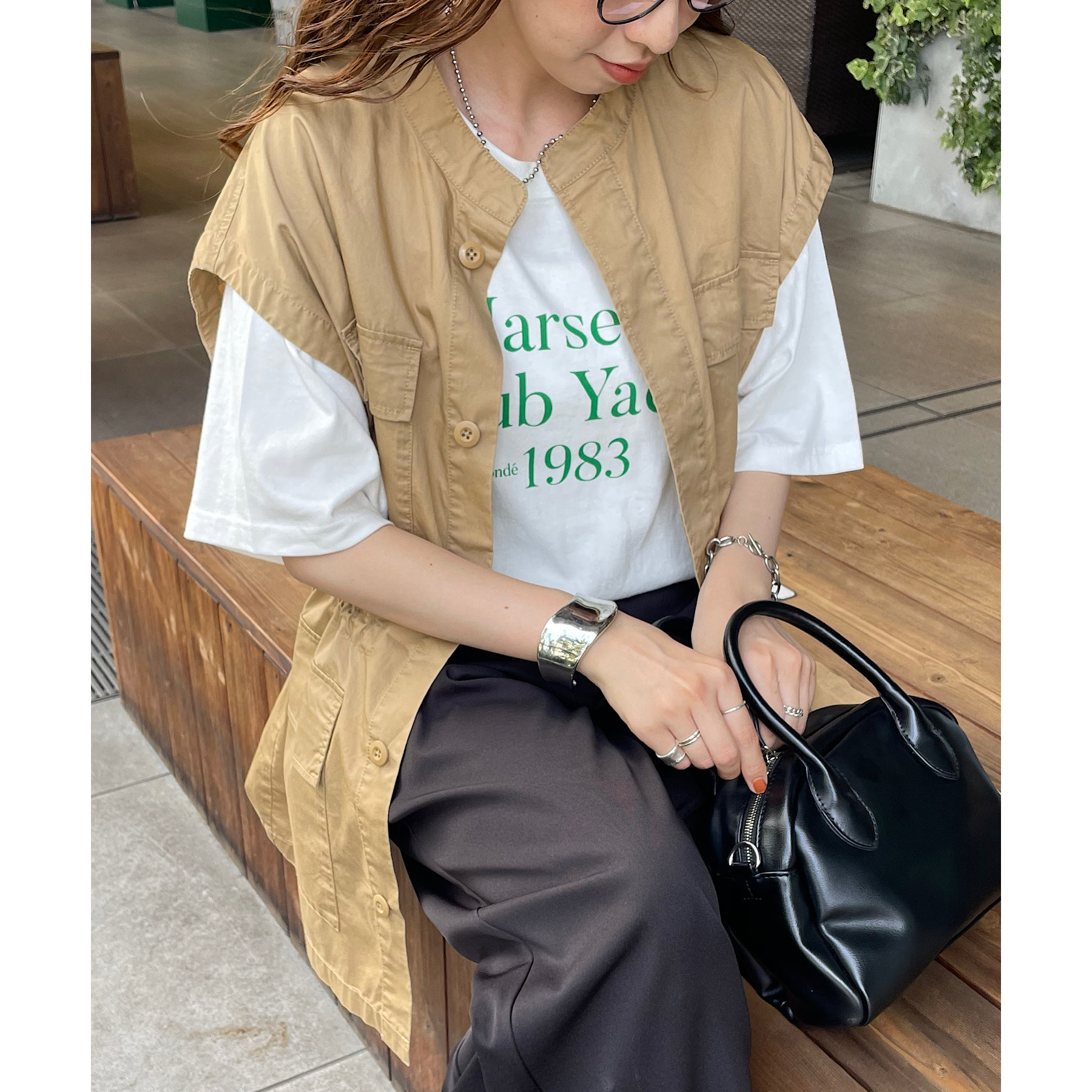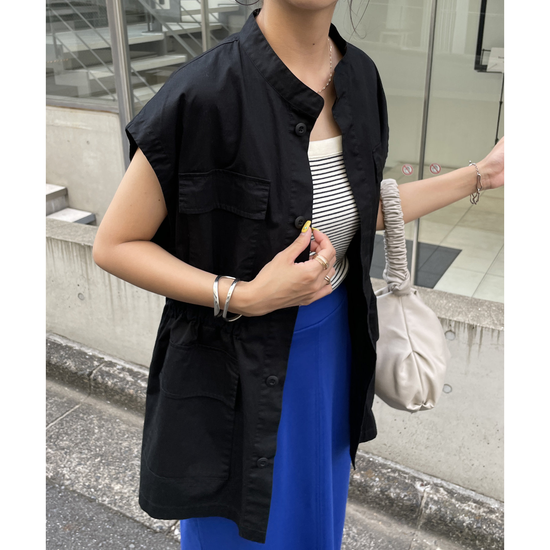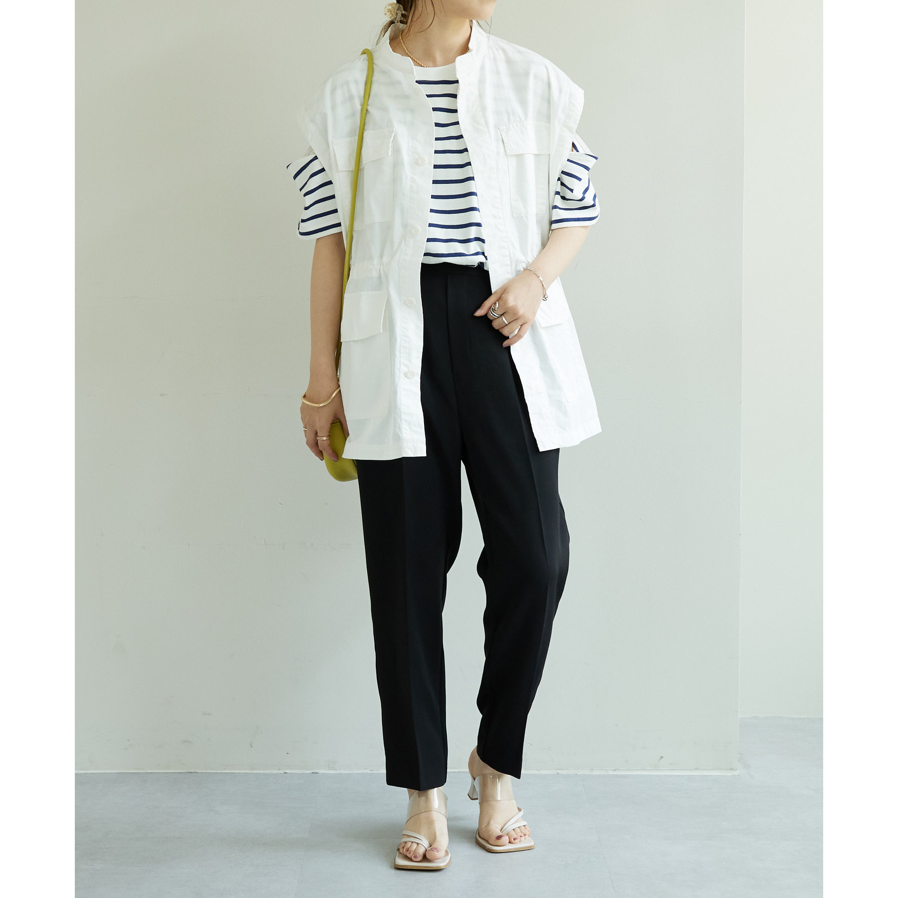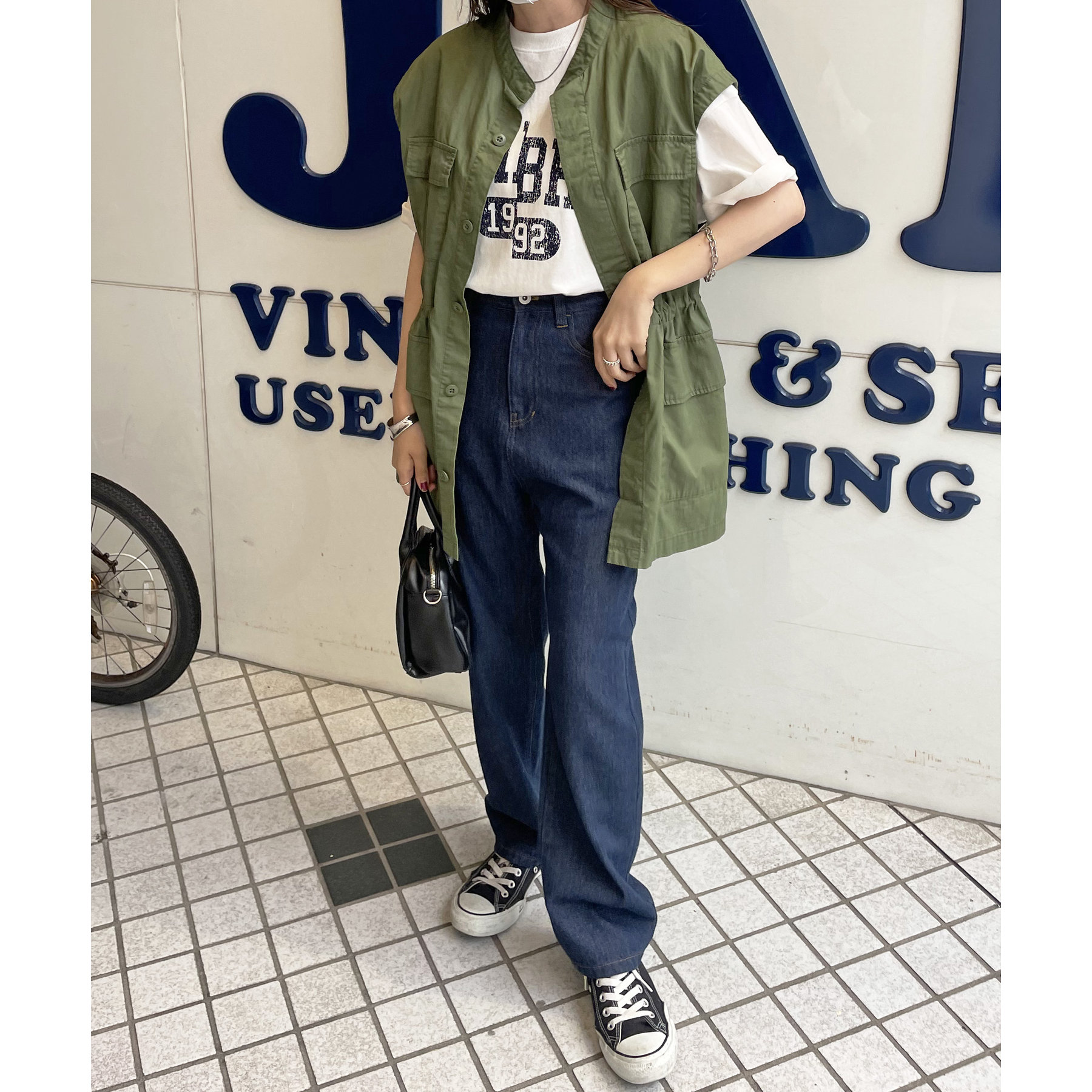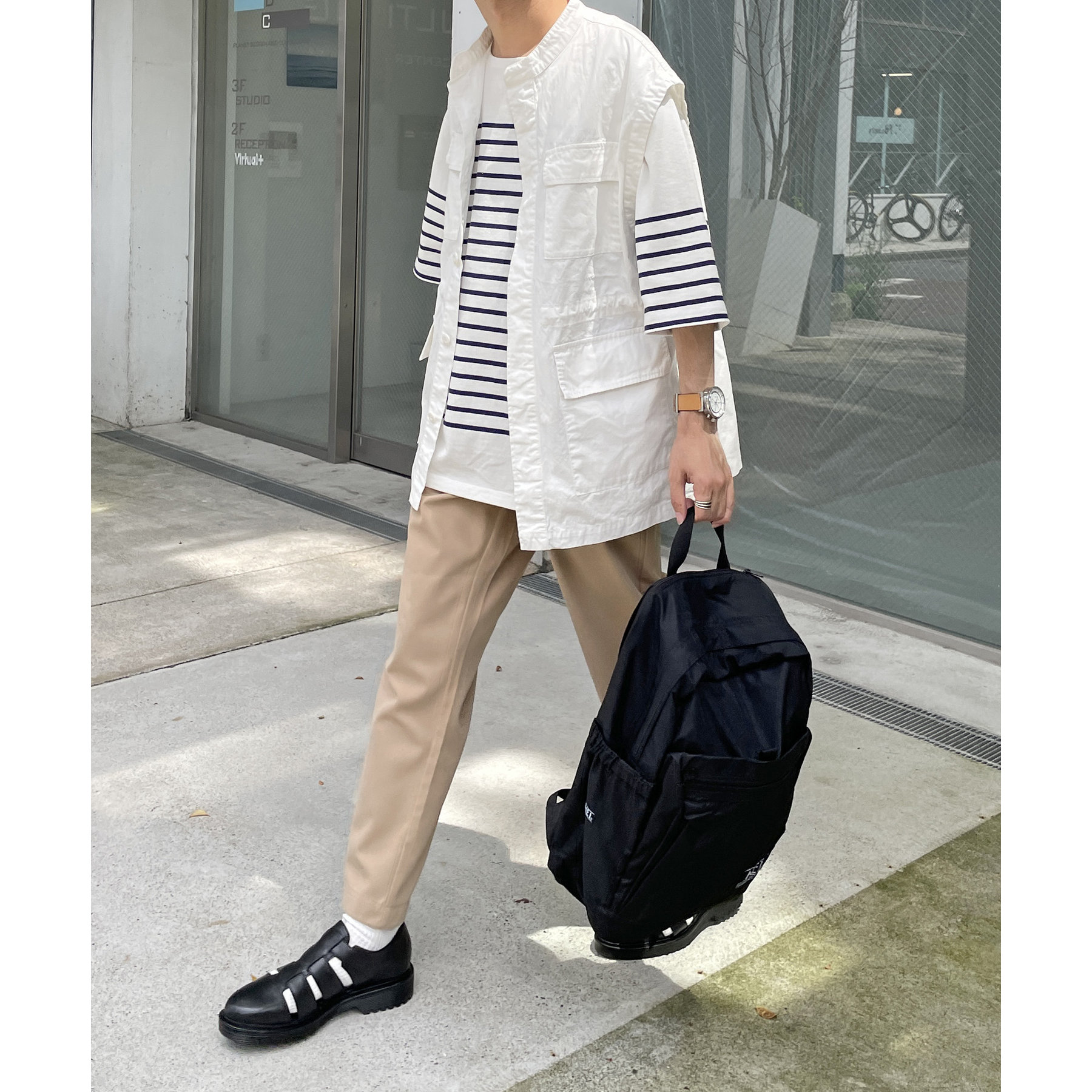 旬のレイヤードを楽しむ、スタンドネックミリタリーベスト