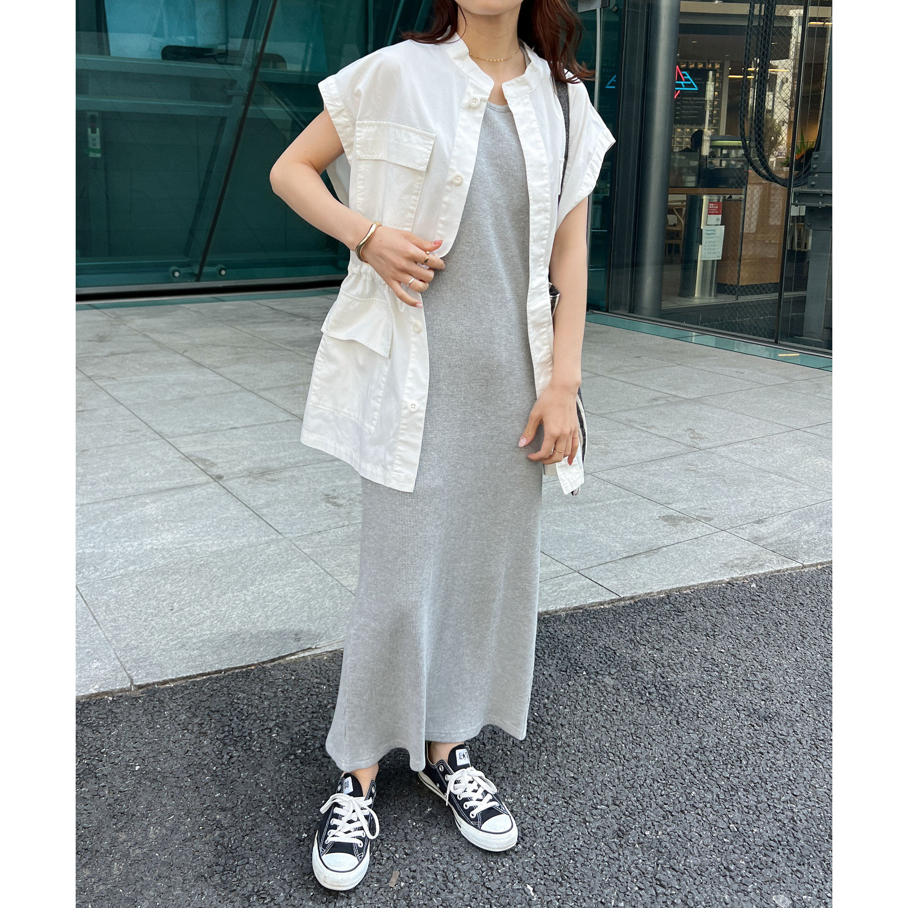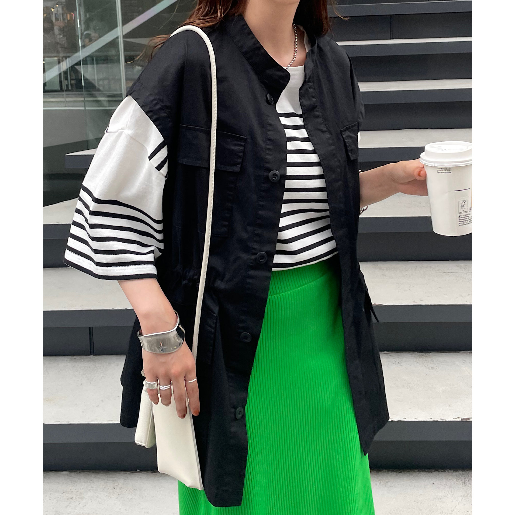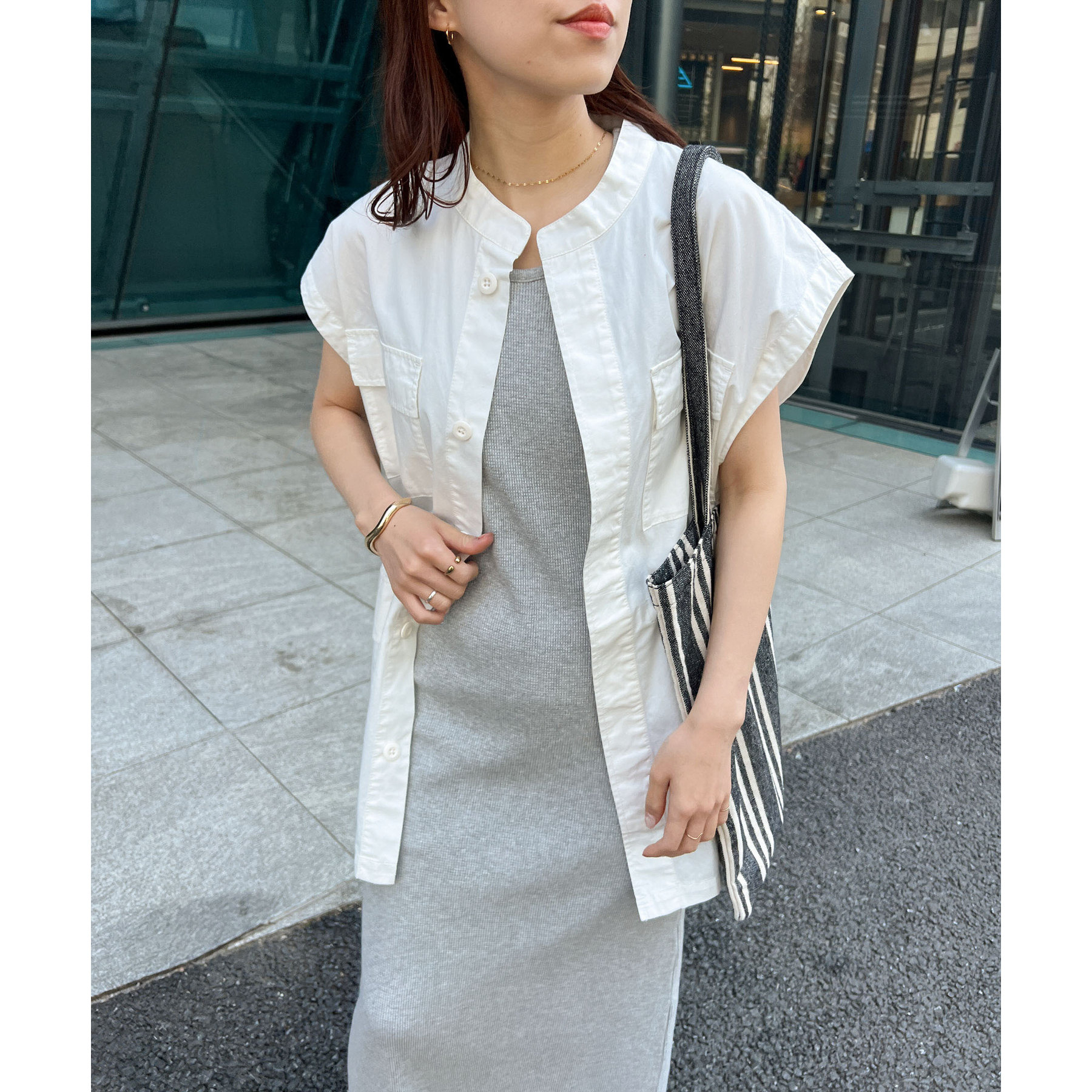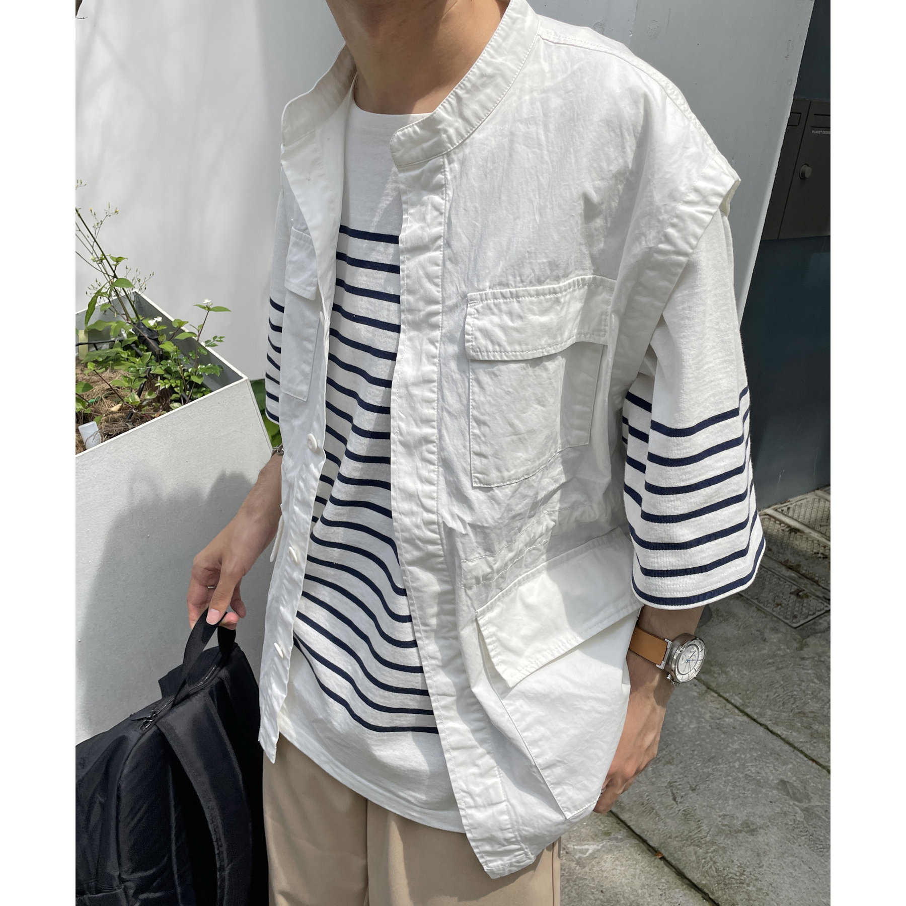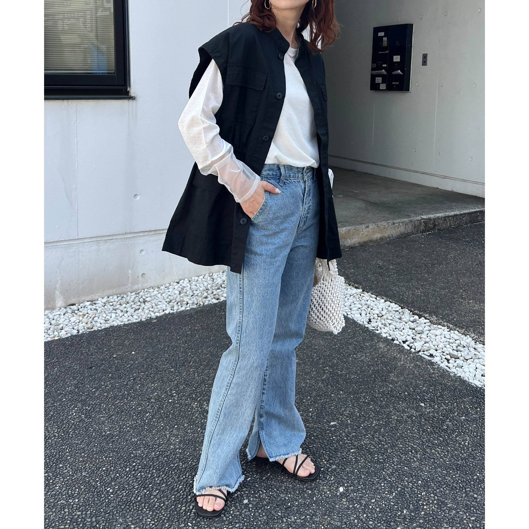 旬のレイヤードを楽しむ、スタンドネックミリタリーベスト
