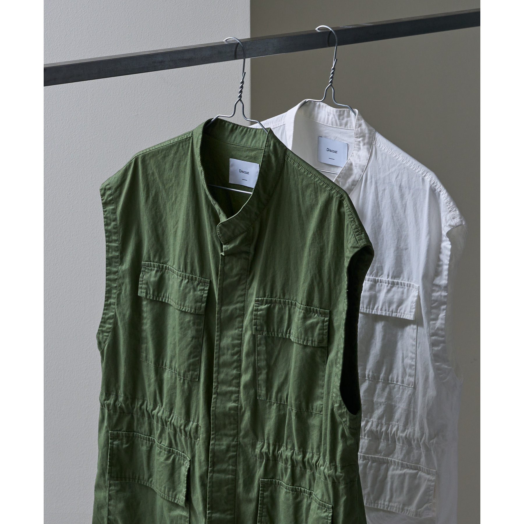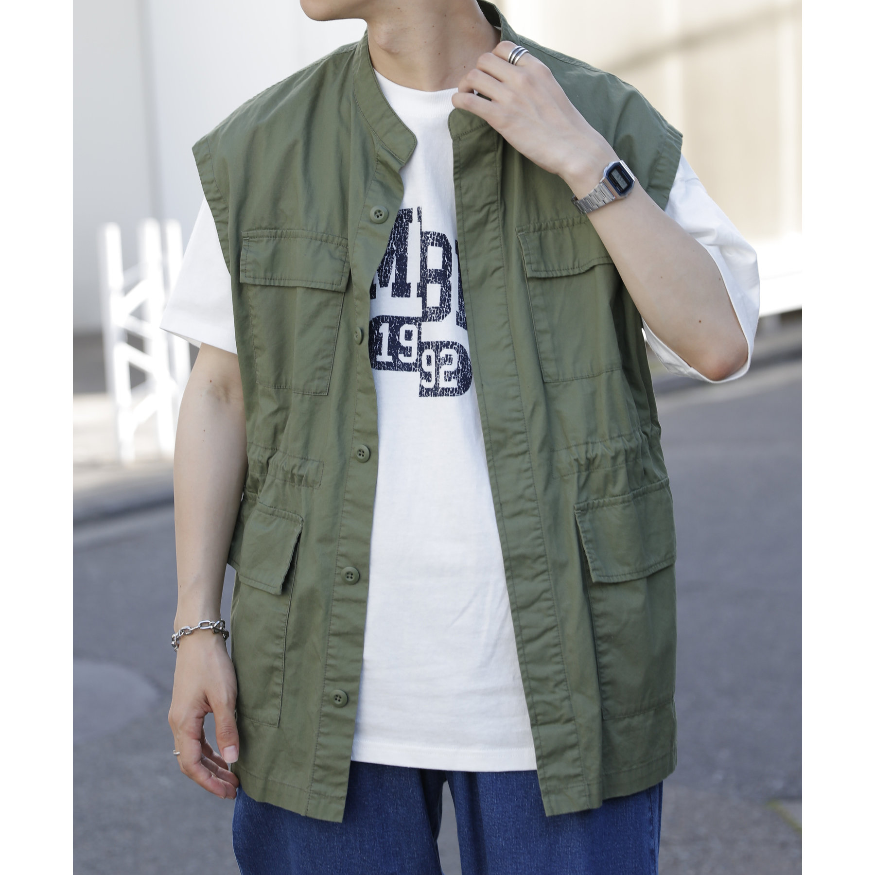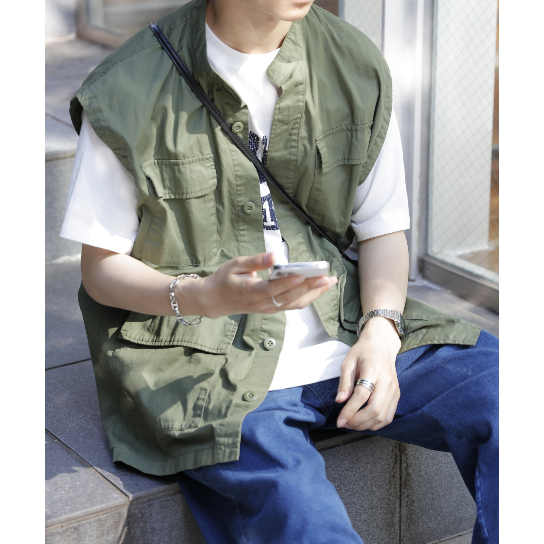 どんなコーディネートにも合わせやすく羽織るだけでサマになる、軽量ミリタリーベスト。