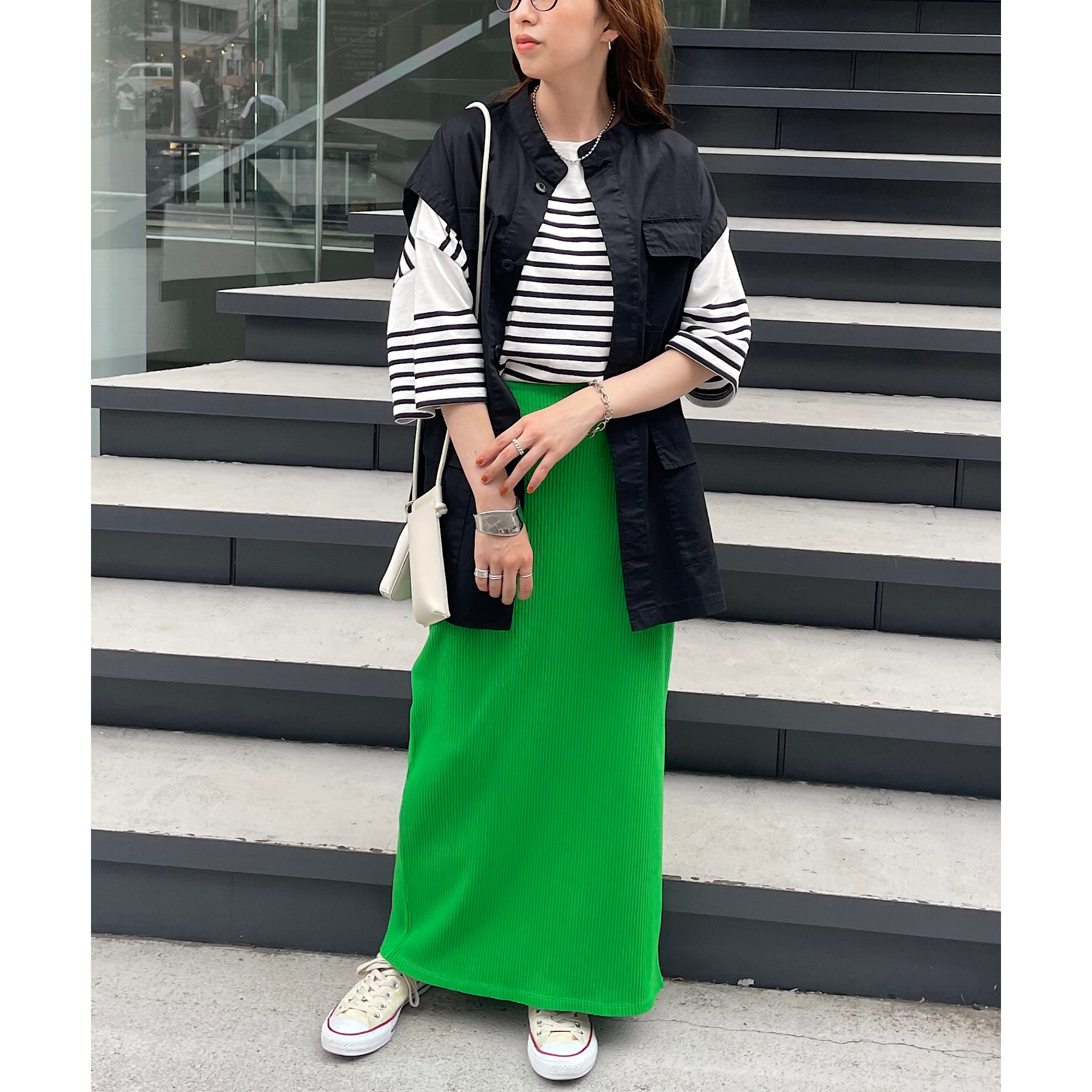 トップスの重ね着も着膨れ感がなく、年代を問わず春から秋まで幅広いレイヤードスタイルが楽しめます♩
