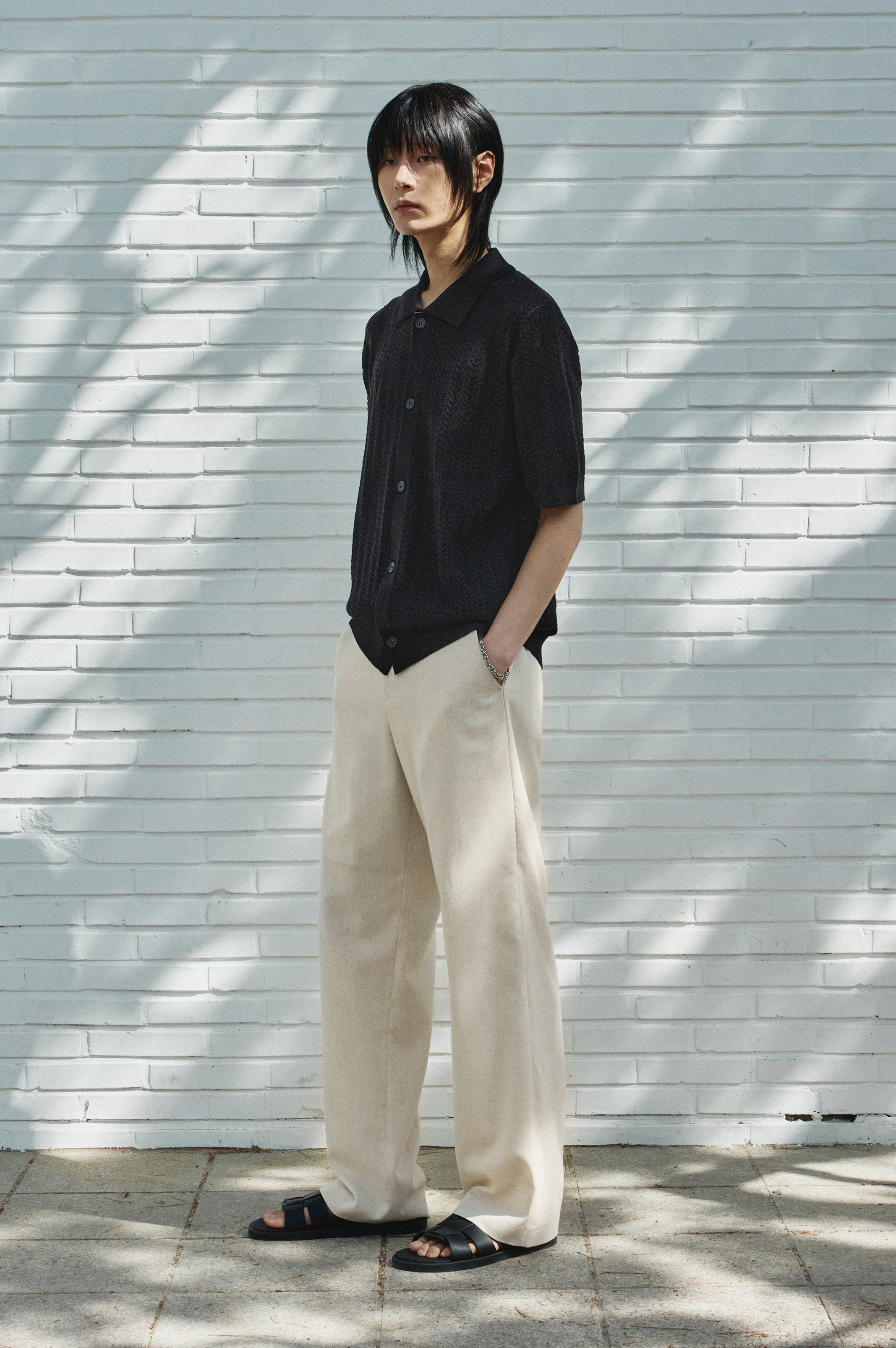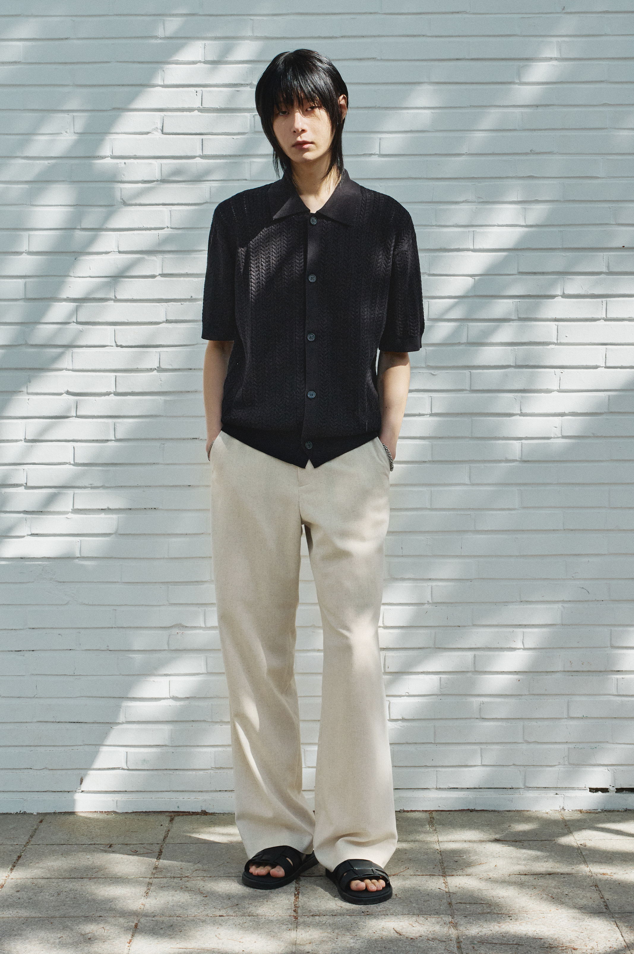 Washable Cable Half Cardigan [BLACK]