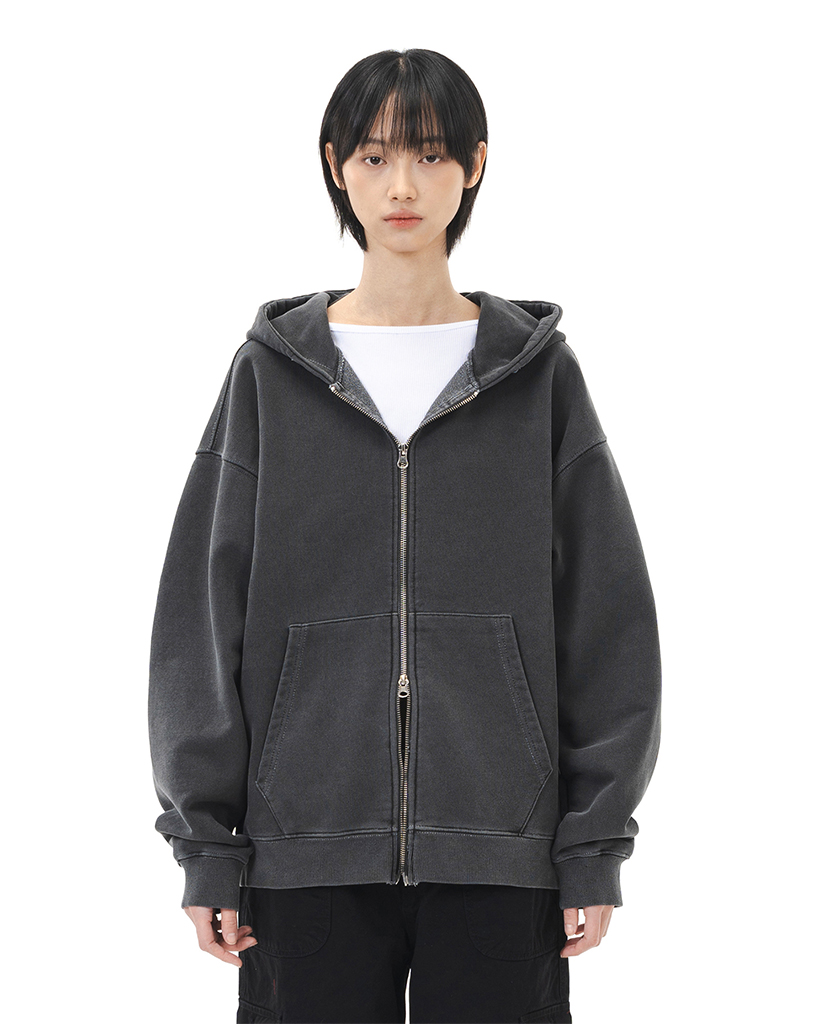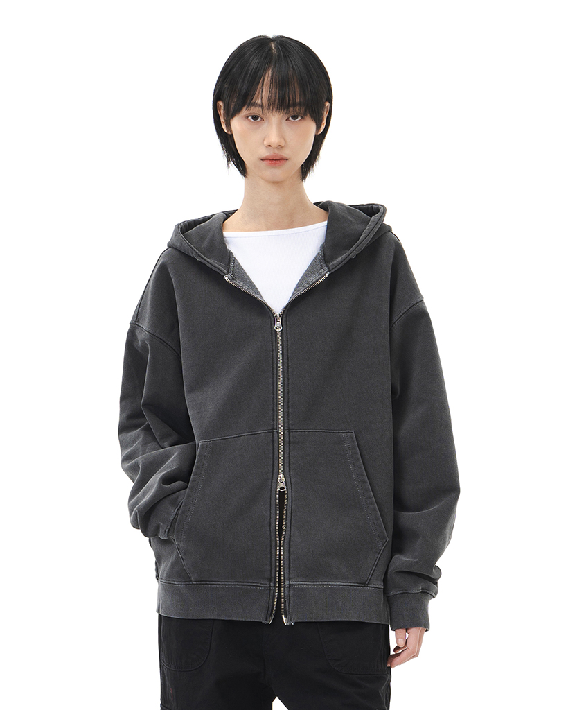 LECUSTOM PIGMENT HOOD ZIP-UP (BLACK)