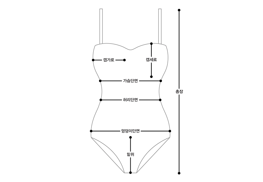 | 사이즈 | 가슴 | 허리 | 엉덩이 | 밑위 | 총장 | 끈길이 |