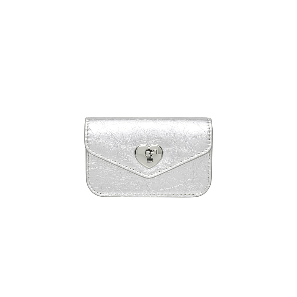 Heart Lock Compact Card Wallet Silver