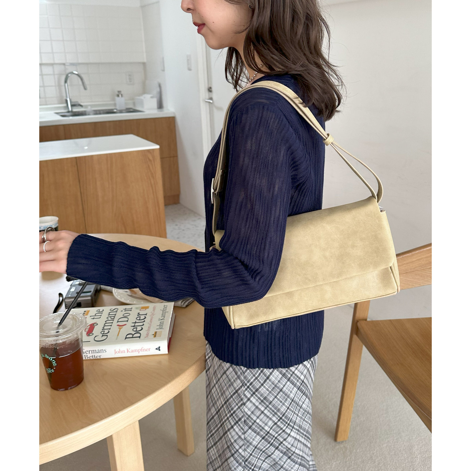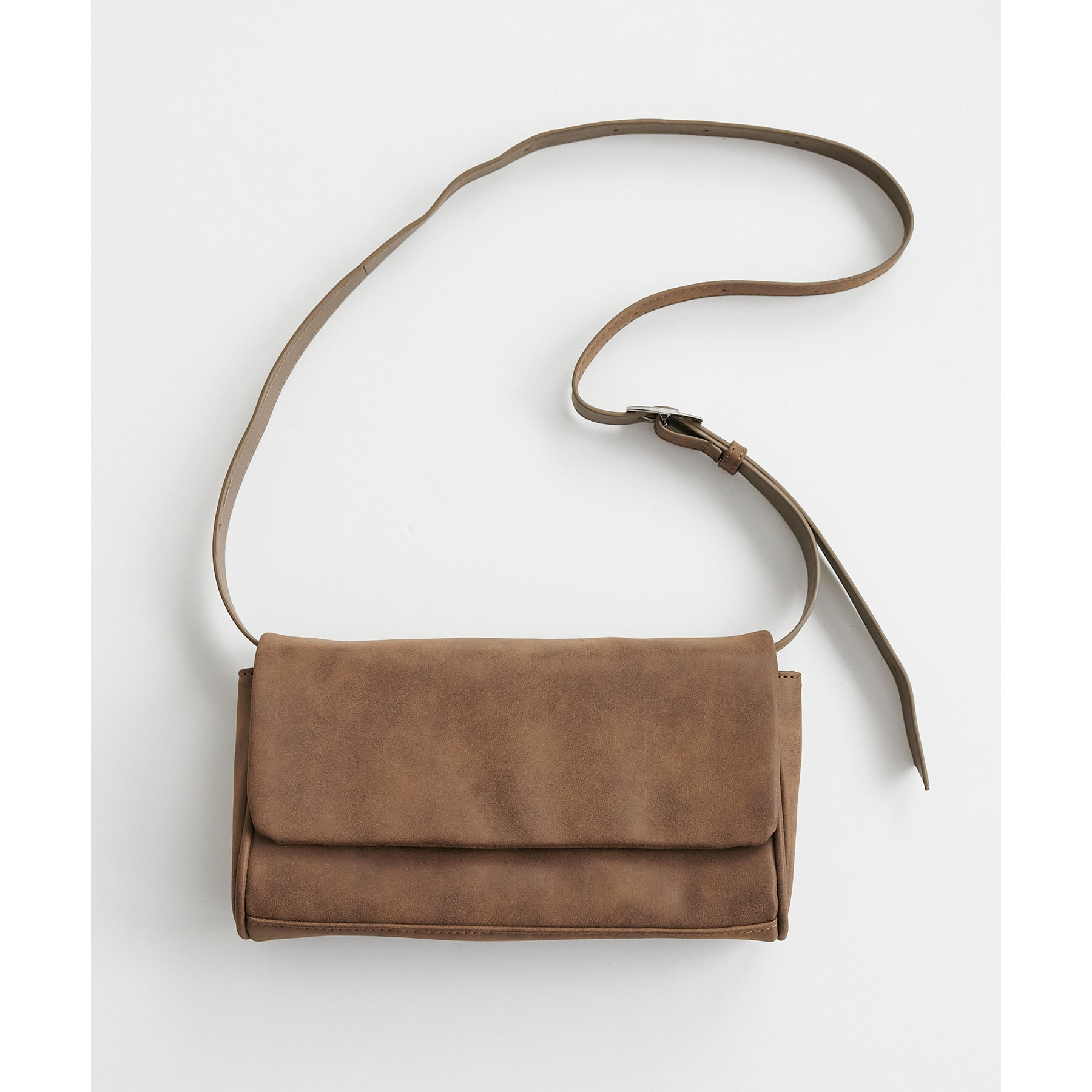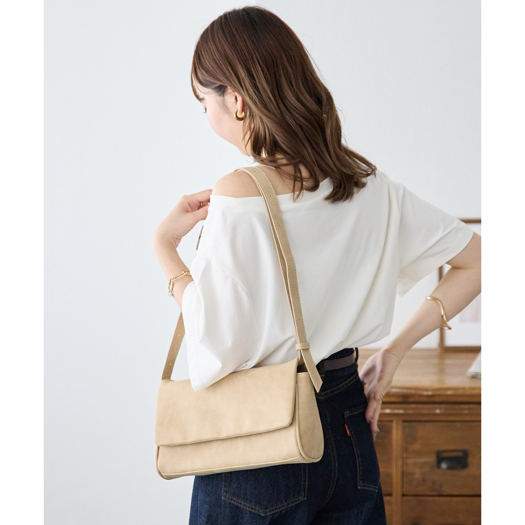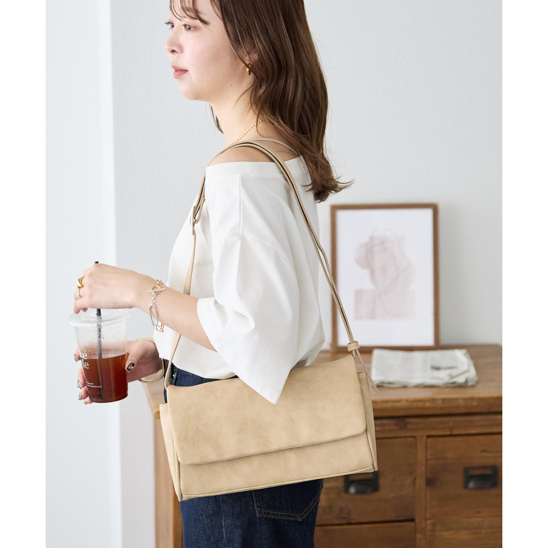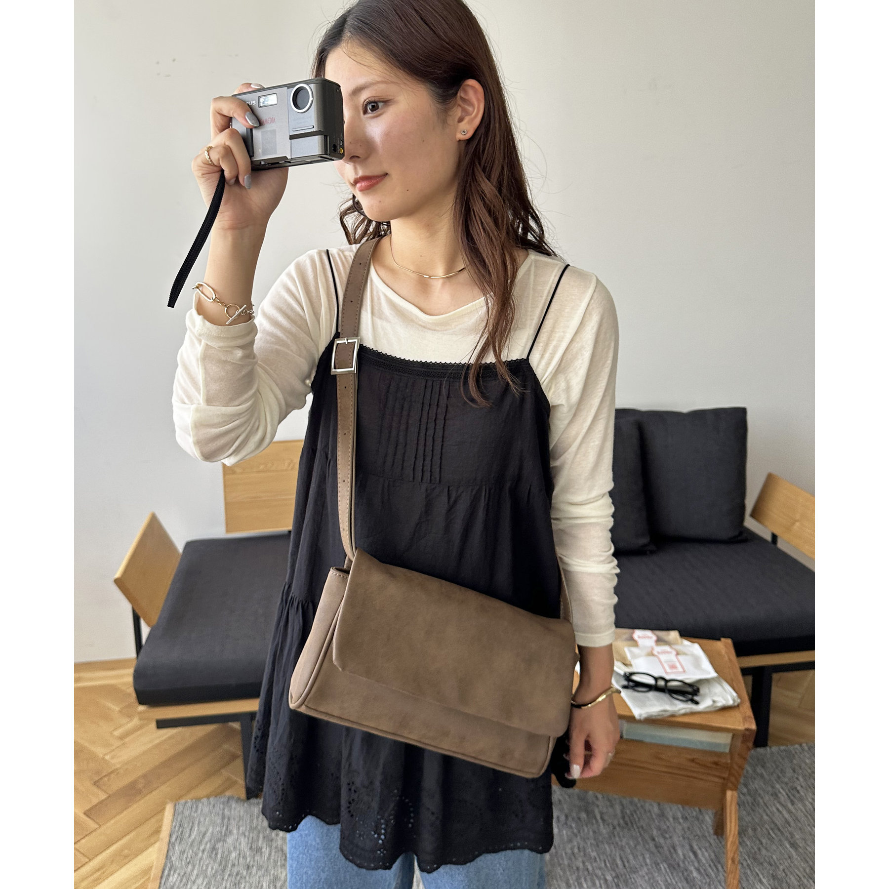 トレンドの横長フォルムとスウェード素材で、カジュアルからきれいめなコーデまで相性抜群のショルダーバッグ。フラップ部分にはマグネットボタンが付いているので開閉が楽ちん◎長さの調節と取り外しが可能なショルダー紐なのでその日の気分や服装に合わせて持ち方を変えられます。また、ショルダー紐のバックルがコーデのアクセントに♪