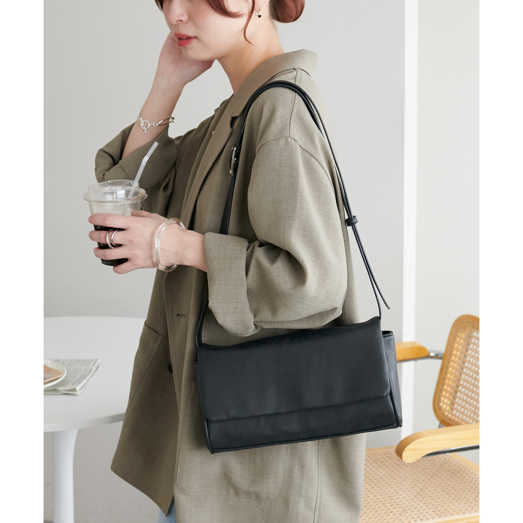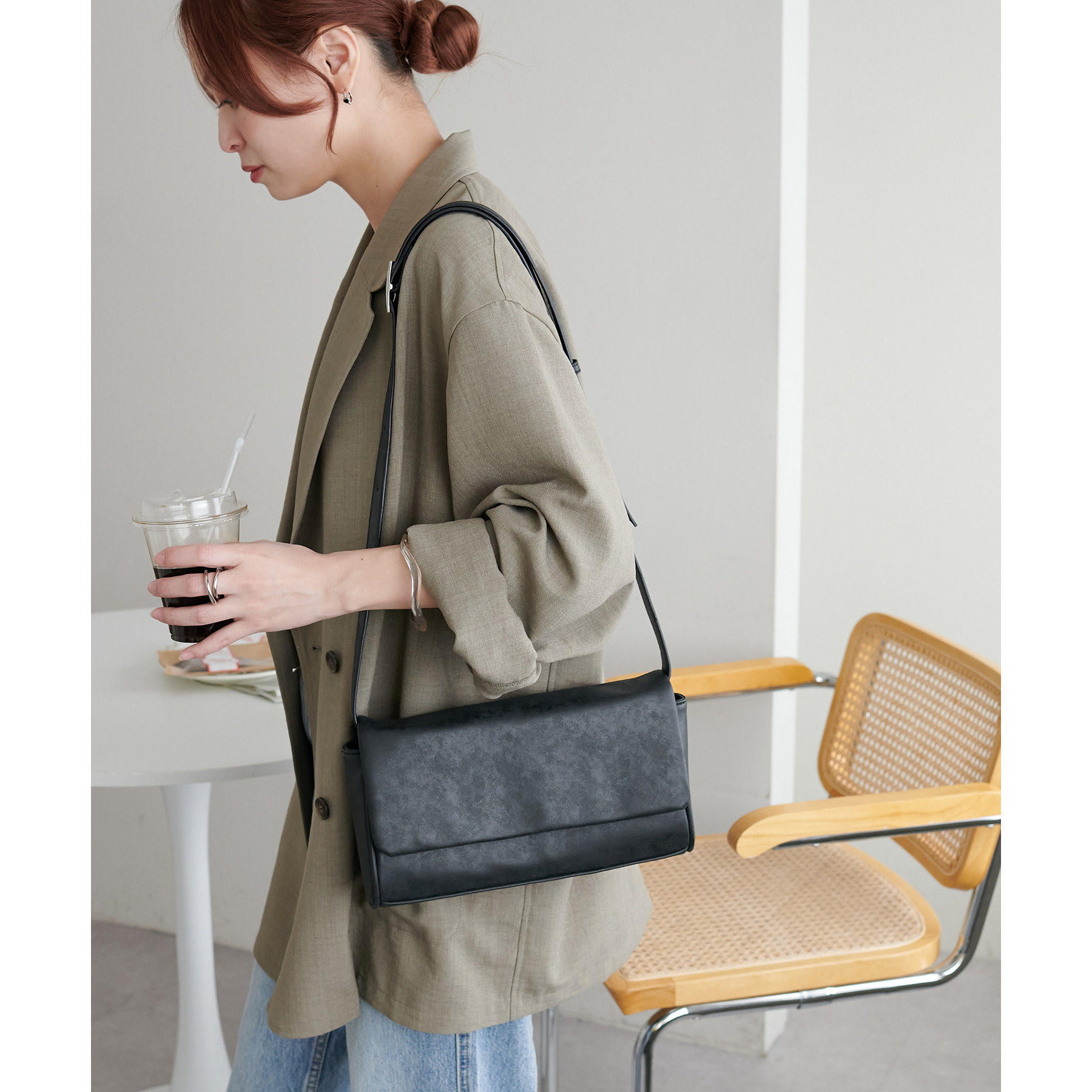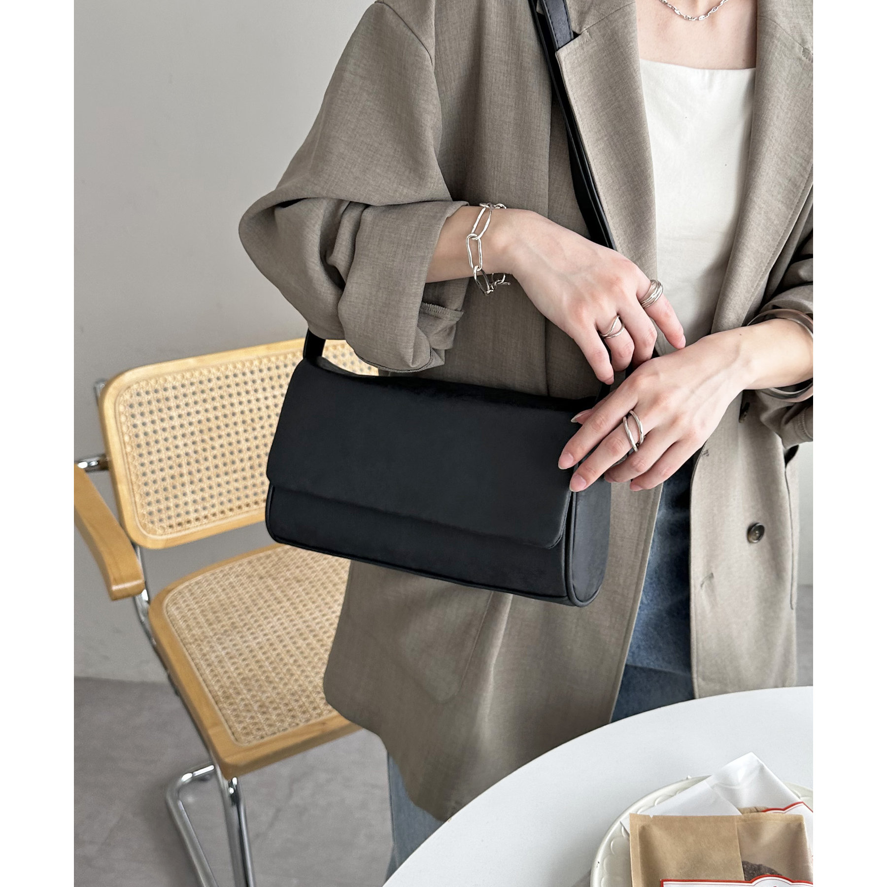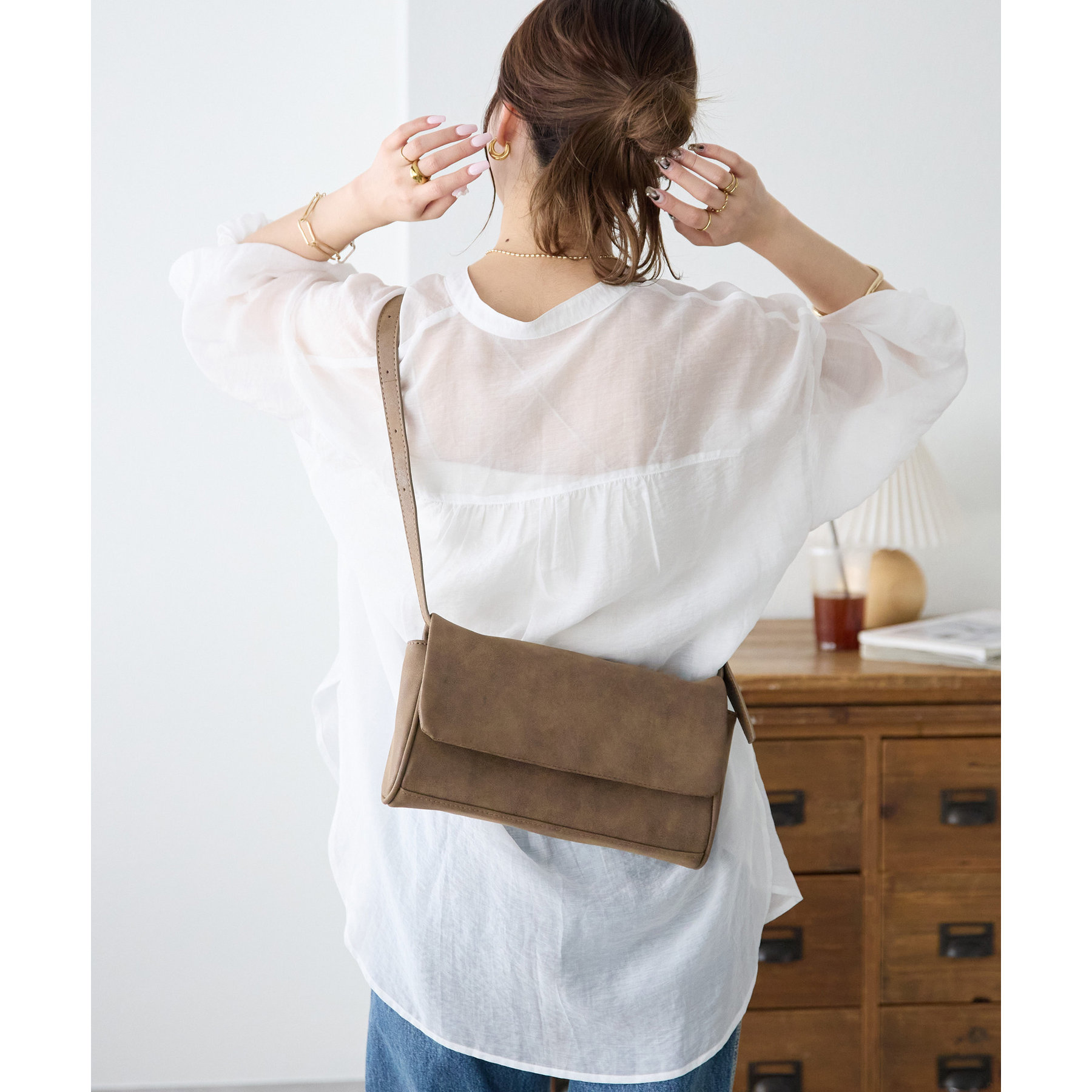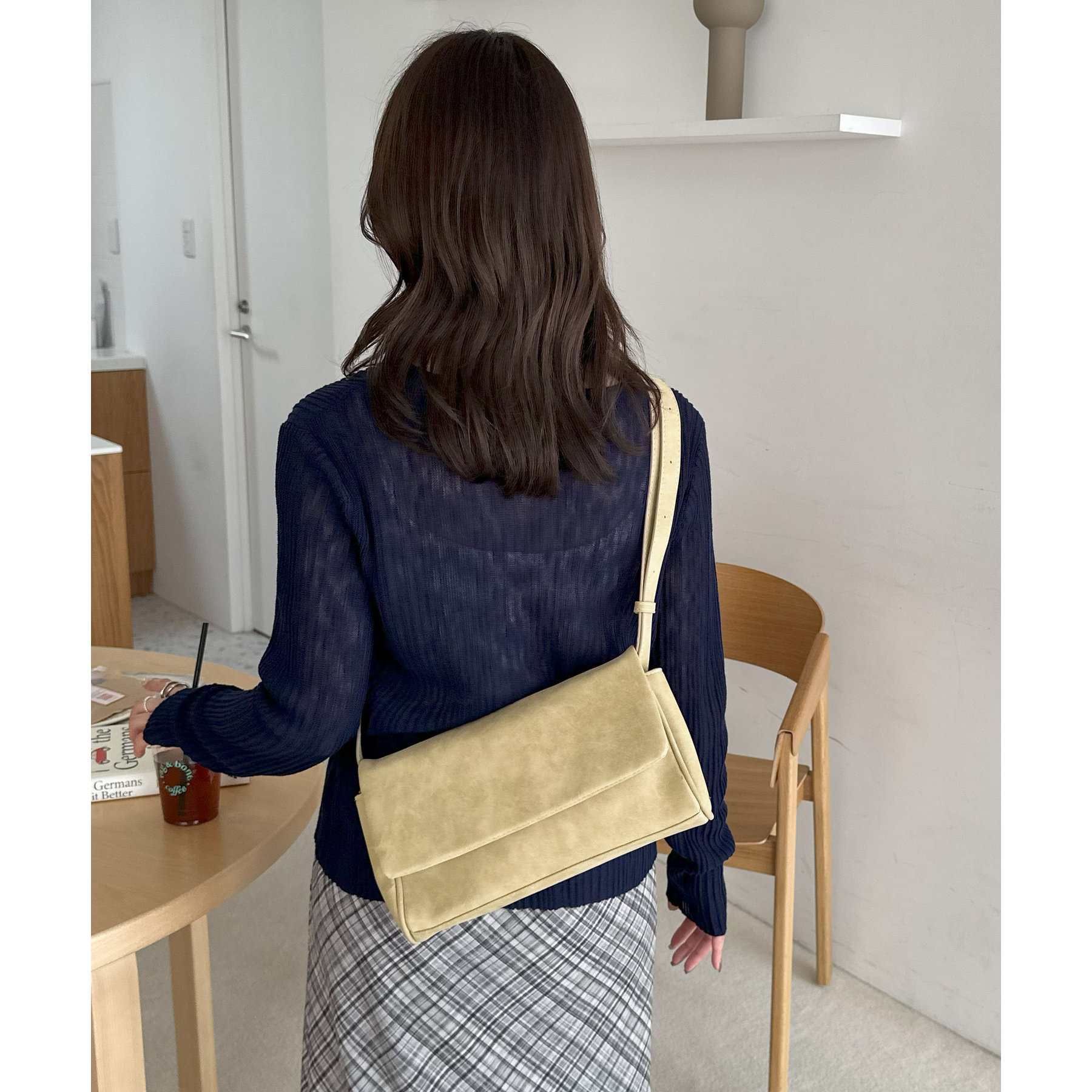 トレンドの横長フォルムとスウェード素材で、カジュアルからきれいめなコーデまで相性抜群のショルダーバッグ。フラップ部分にはマグネットボタンが付いているので開閉が楽ちん◎長さの調節と取り外しが可能なショルダー紐なのでその日の気分や服装に合わせて持ち方を変えられます。また、ショルダー紐のバックルがコーデのアクセントに♪