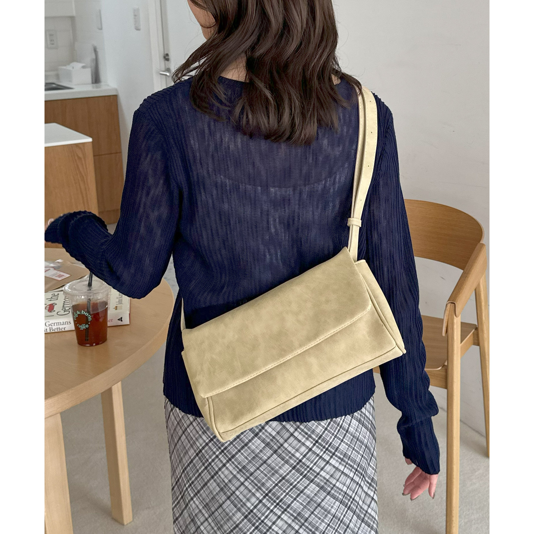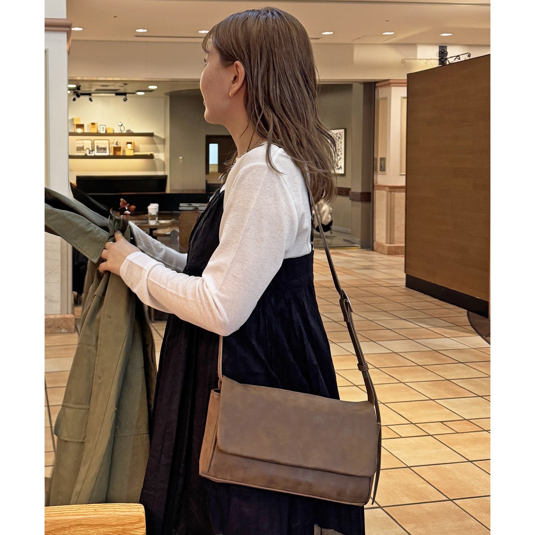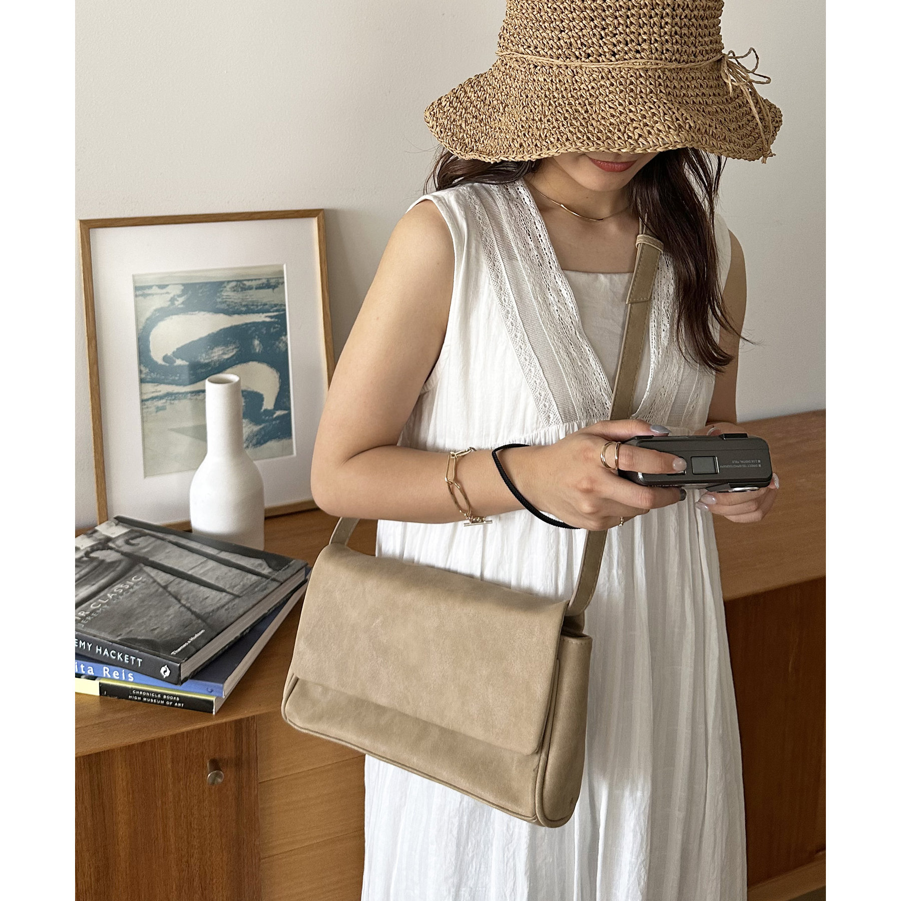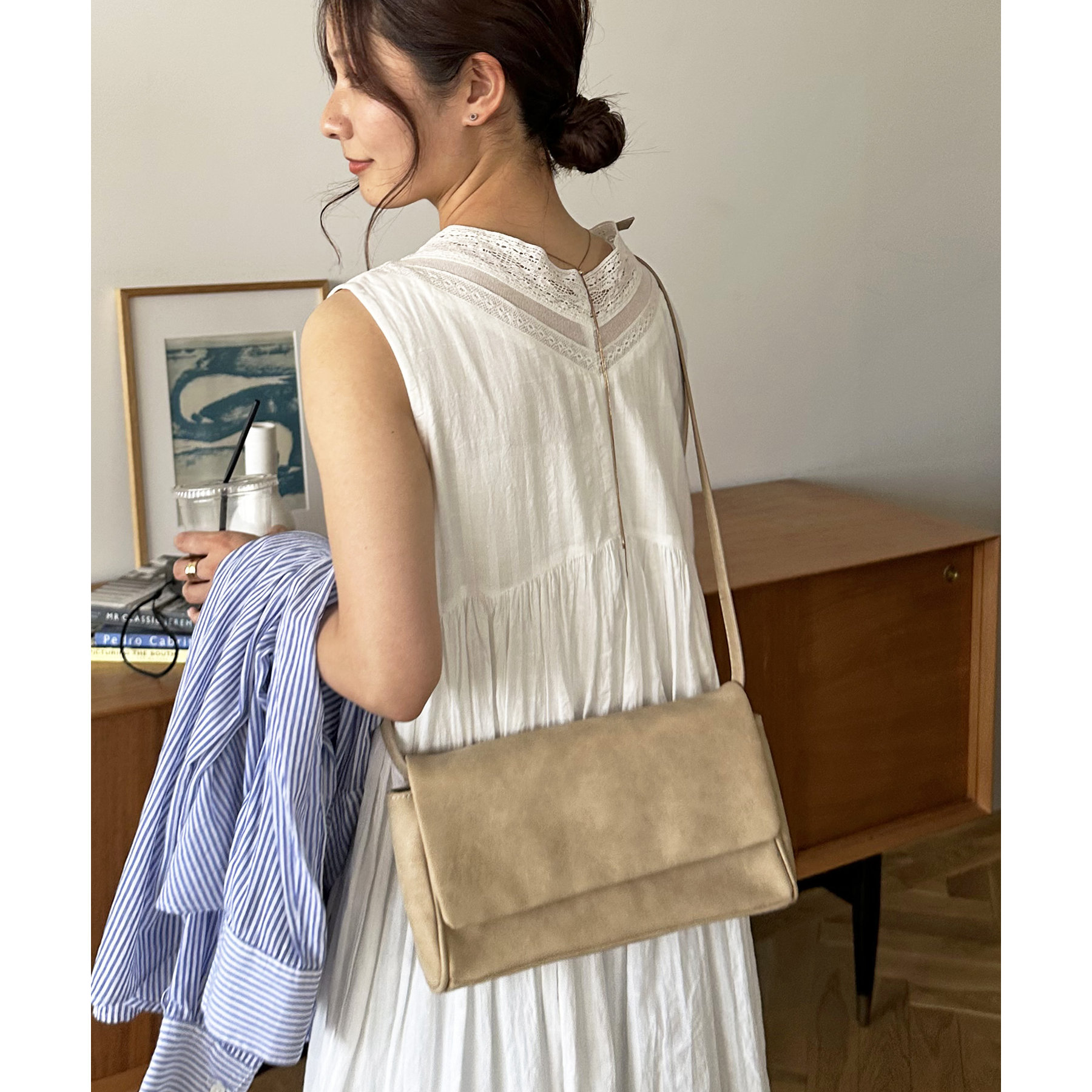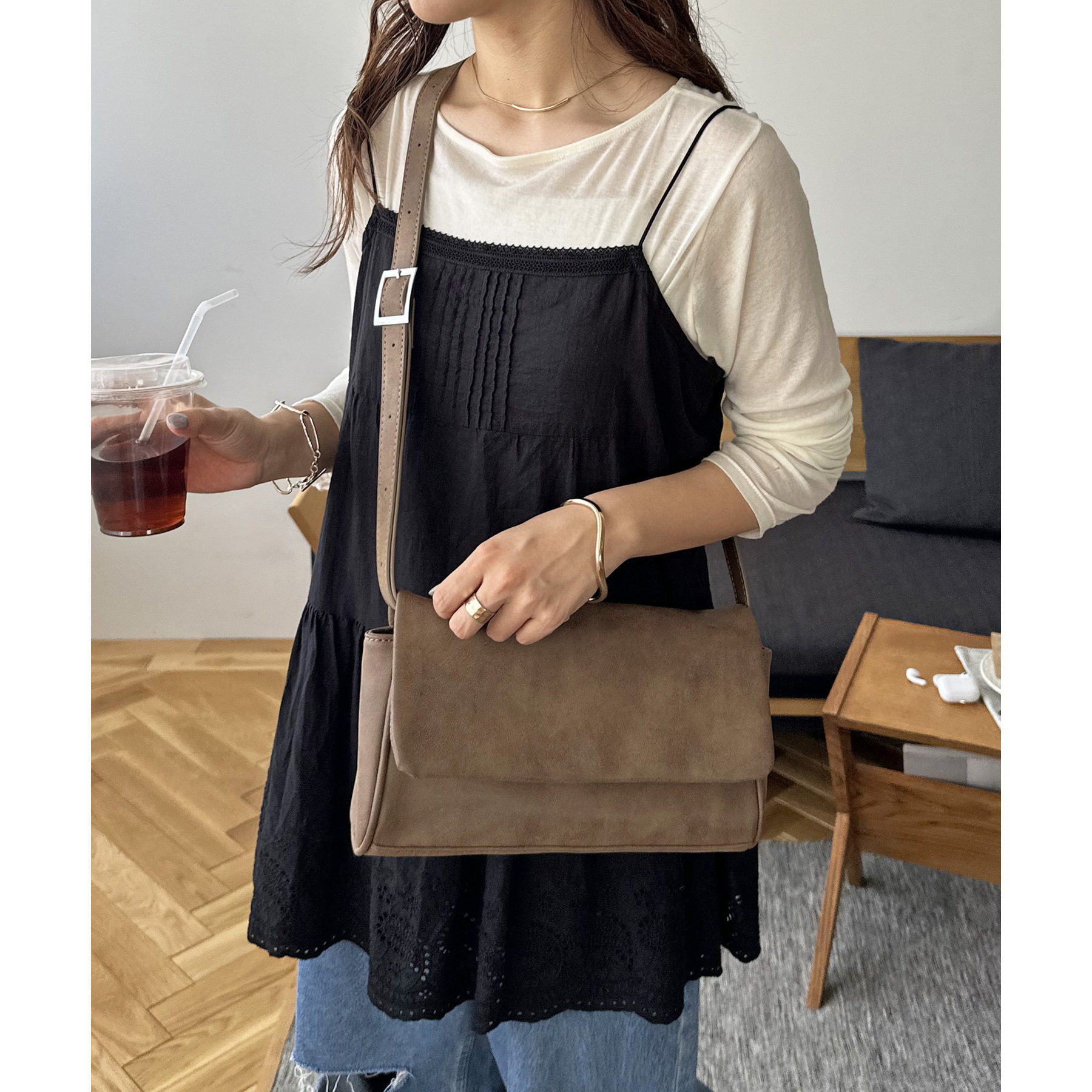 トレンドの横長フォルムとスウェード素材で、カジュアルからきれいめなコーデまで相性抜群のショルダーバッグ。フラップ部分にはマグネットボタンが付いているので開閉が楽ちん◎長さの調節と取り外しが可能なショルダー紐なのでその日の気分や服装に合わせて持ち方を変えられます。また、ショルダー紐のバックルがコーデのアクセントに♪