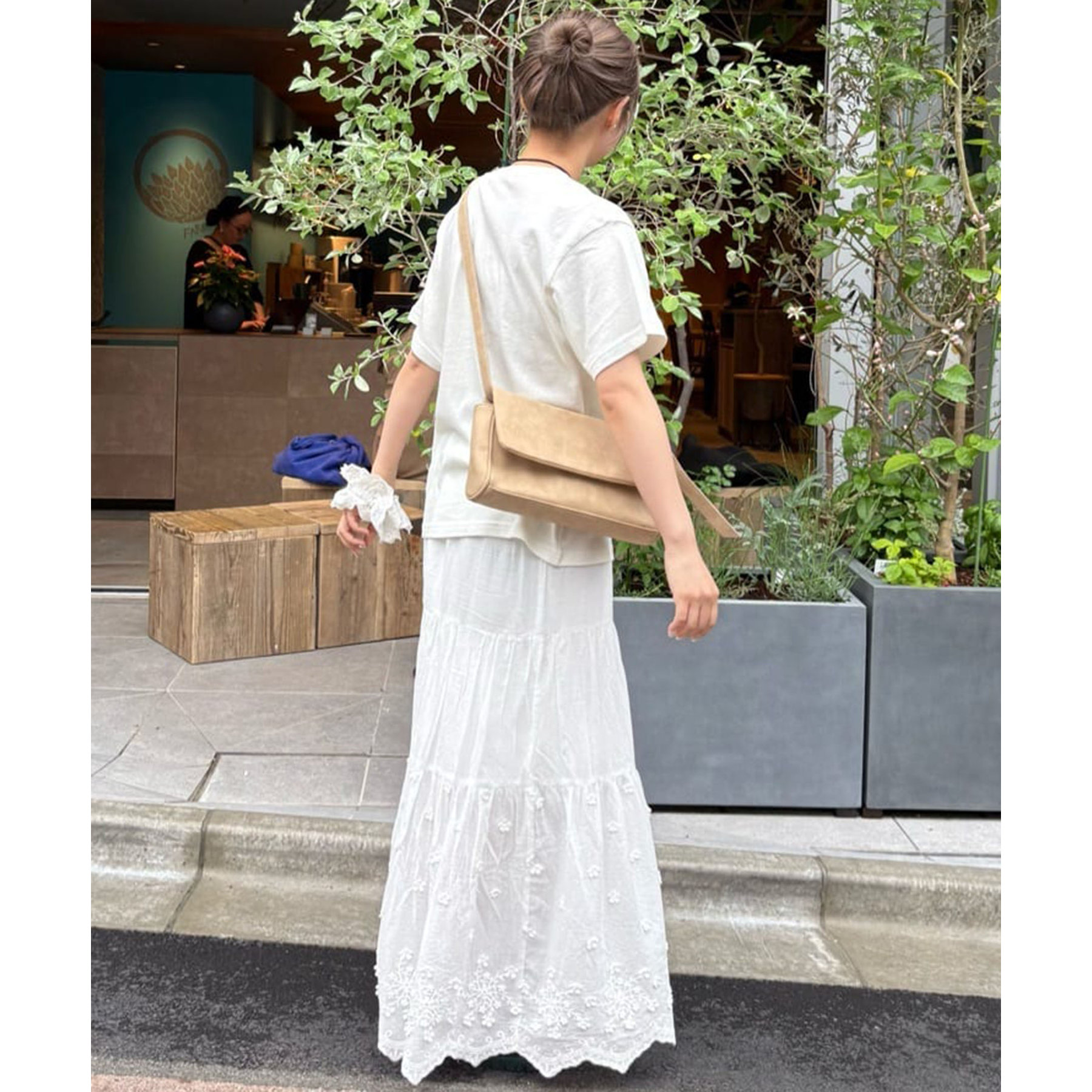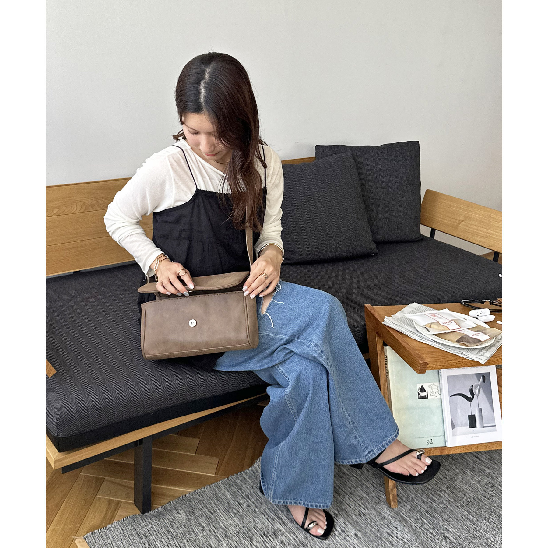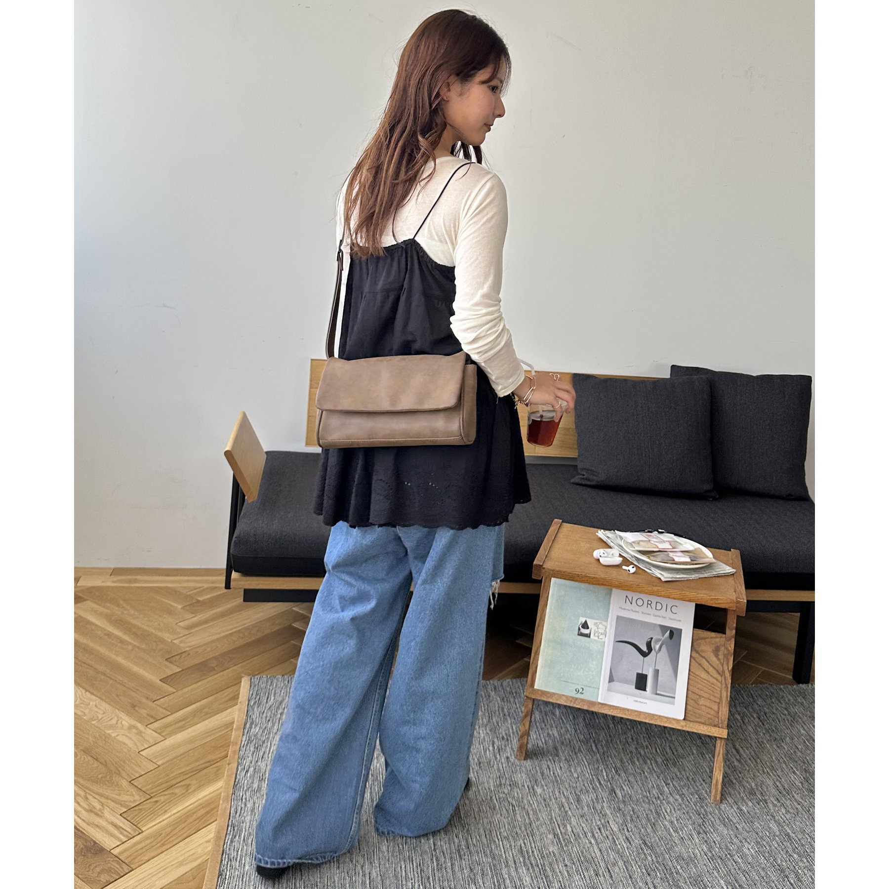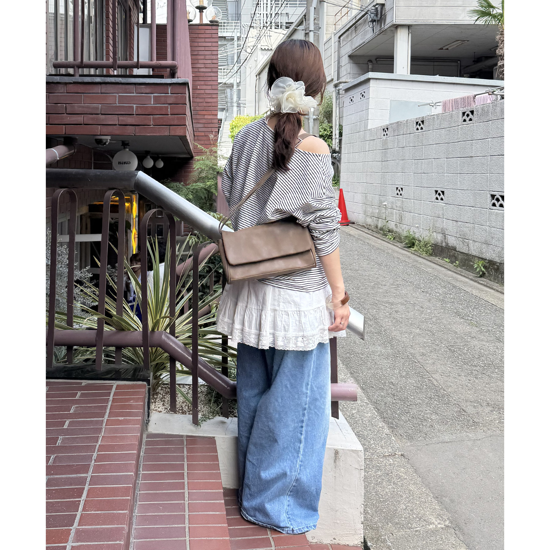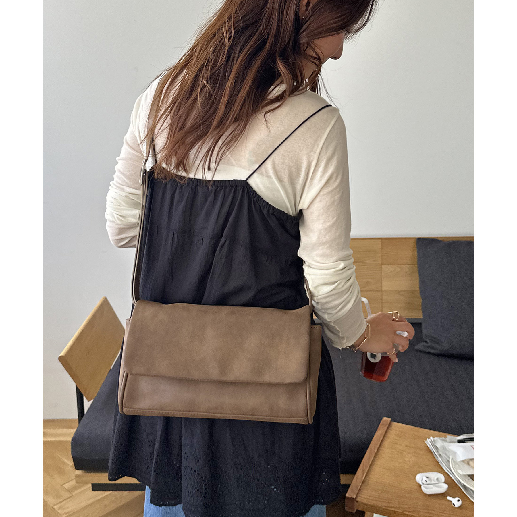 トレンドの横長フォルムとスウェード素材で、カジュアルからきれいめなコーデまで相性抜群のショルダーバッグ。フラップ部分にはマグネットボタンが付いているので開閉が楽ちん◎長さの調節と取り外しが可能なショルダー紐なのでその日の気分や服装に合わせて持ち方を変えられます。また、ショルダー紐のバックルがコーデのアクセントに♪