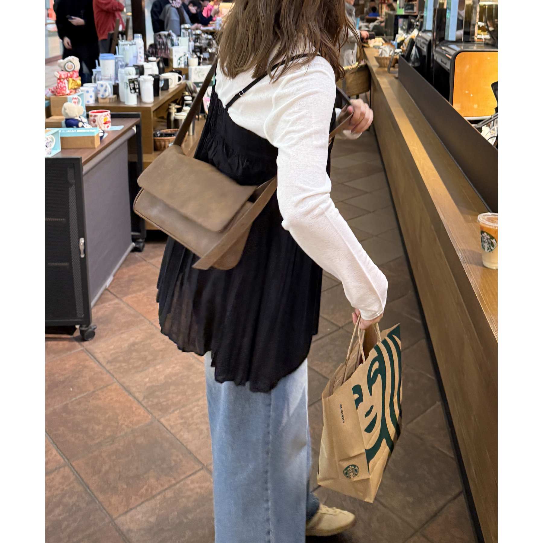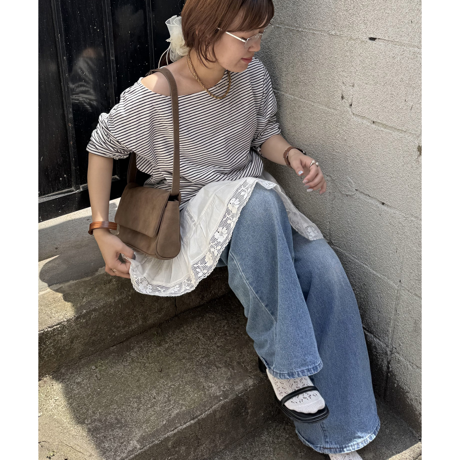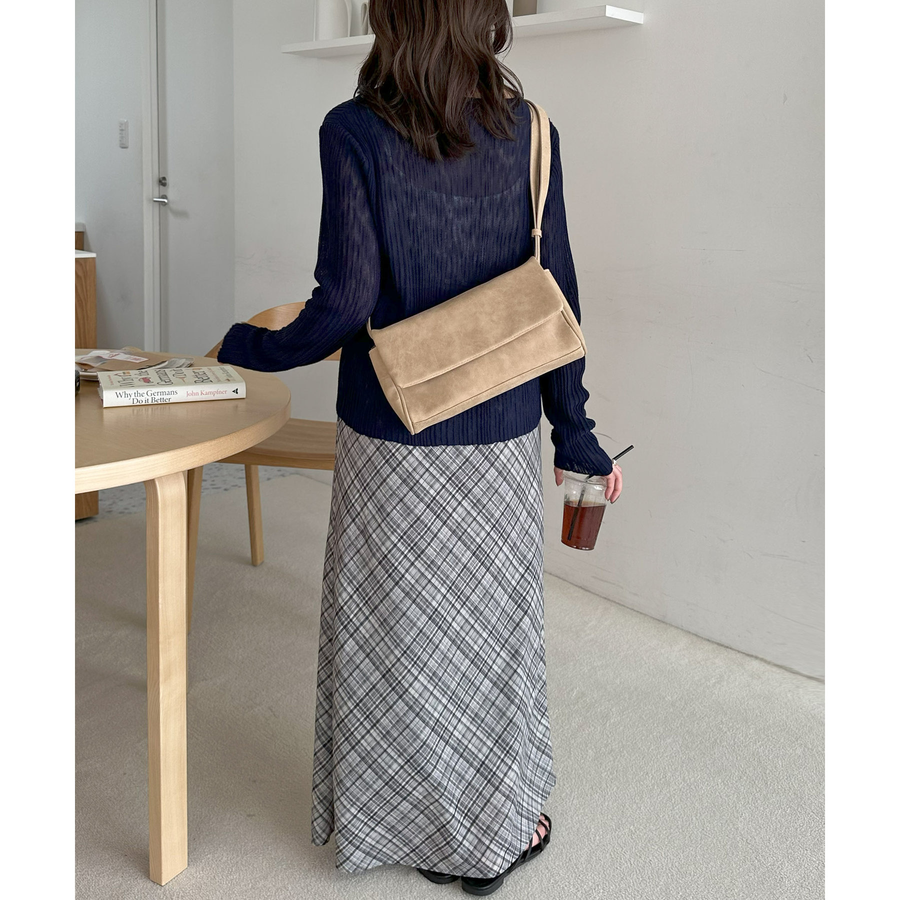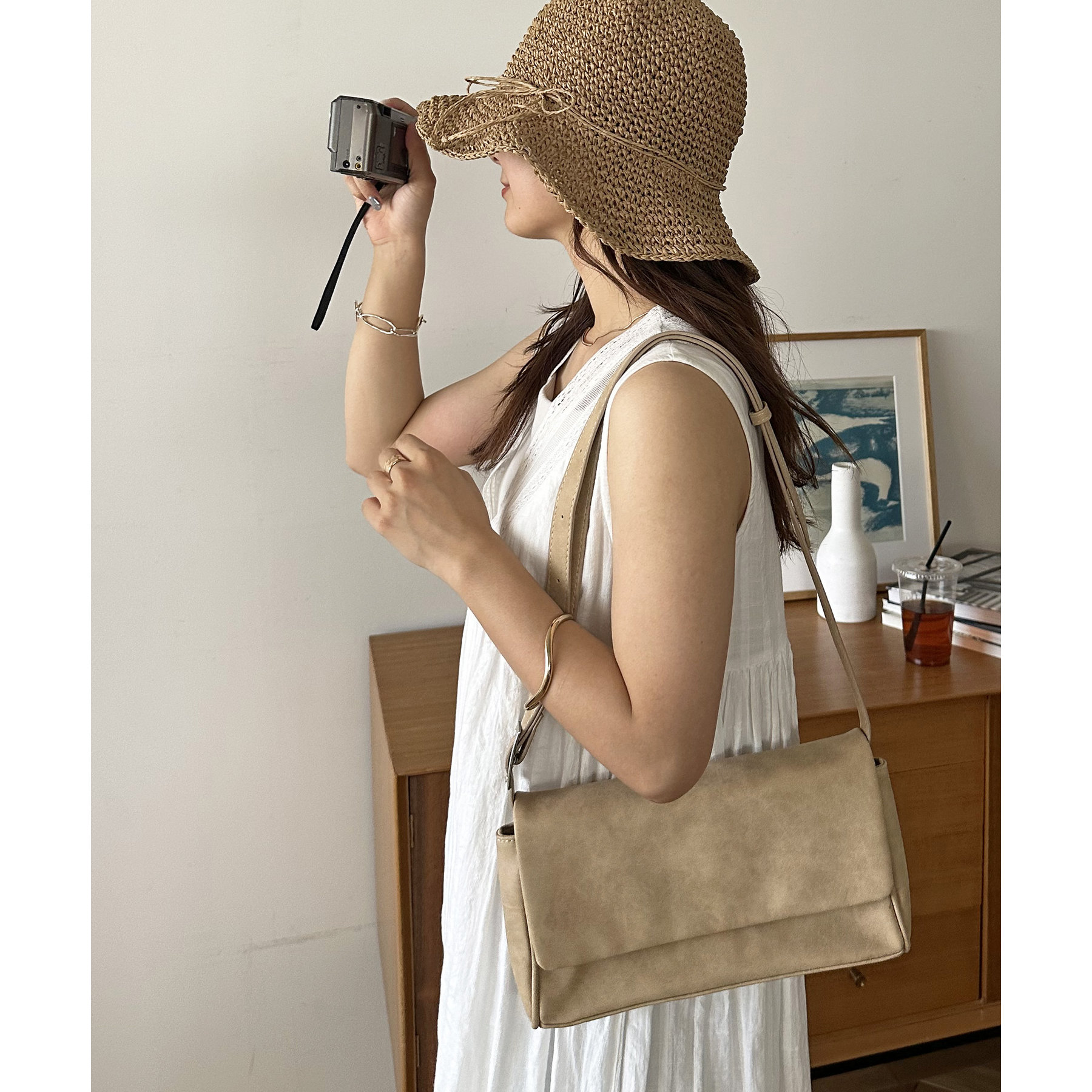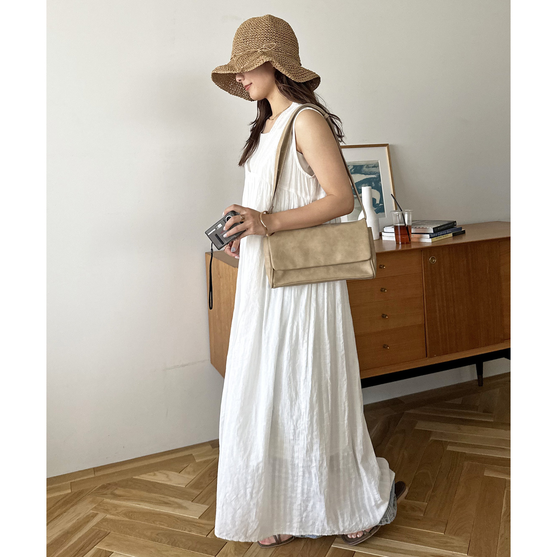 トレンドの横長フォルムとスウェード素材で、カジュアルからきれいめなコーデまで相性抜群のショルダーバッグ。フラップ部分にはマグネットボタンが付いているので開閉が楽ちん◎長さの調節と取り外しが可能なショルダー紐なのでその日の気分や服装に合わせて持ち方を変えられます。また、ショルダー紐のバックルがコーデのアクセントに♪