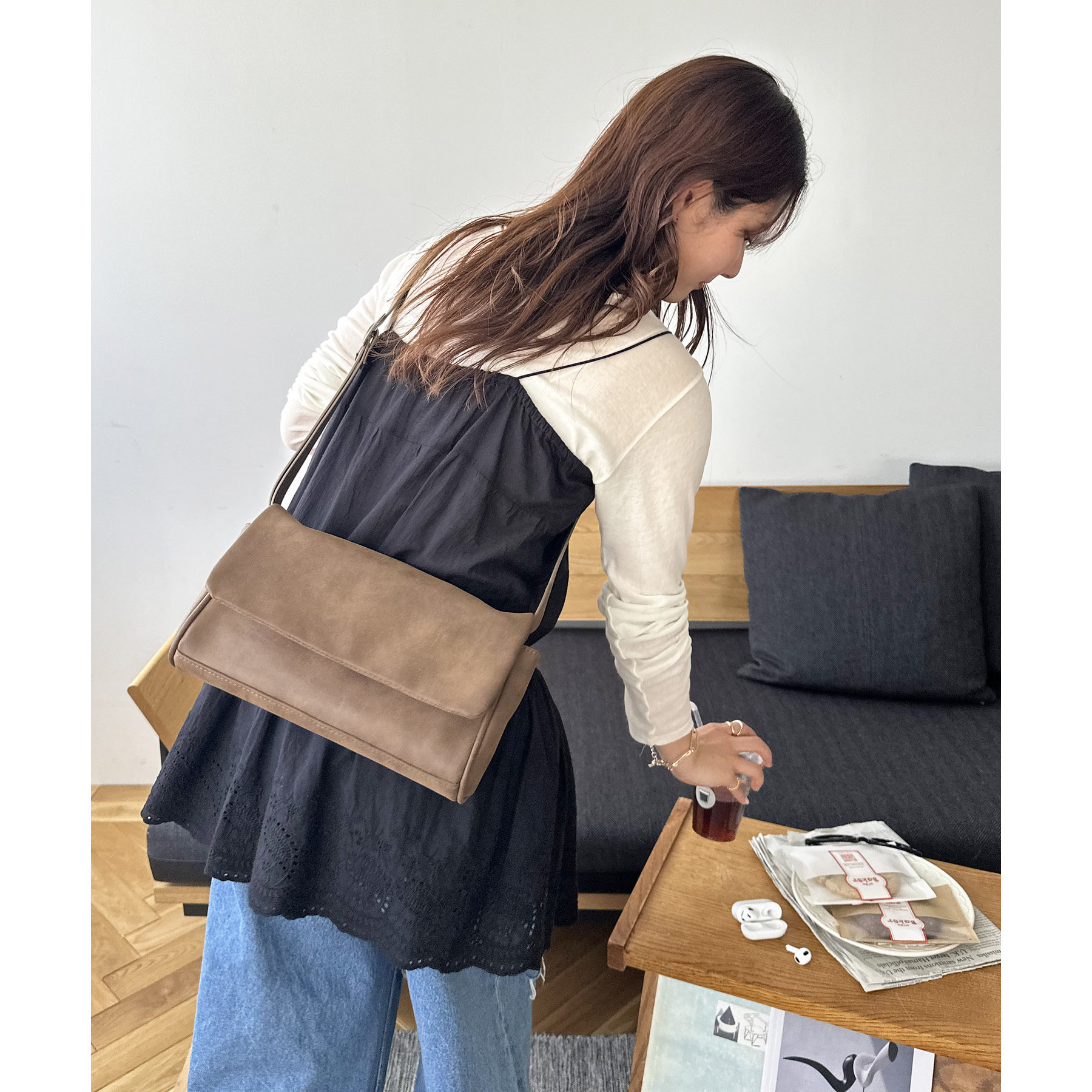 サッと持つだけでオシャレに決まる!フラップベルトショルダーバッグ。