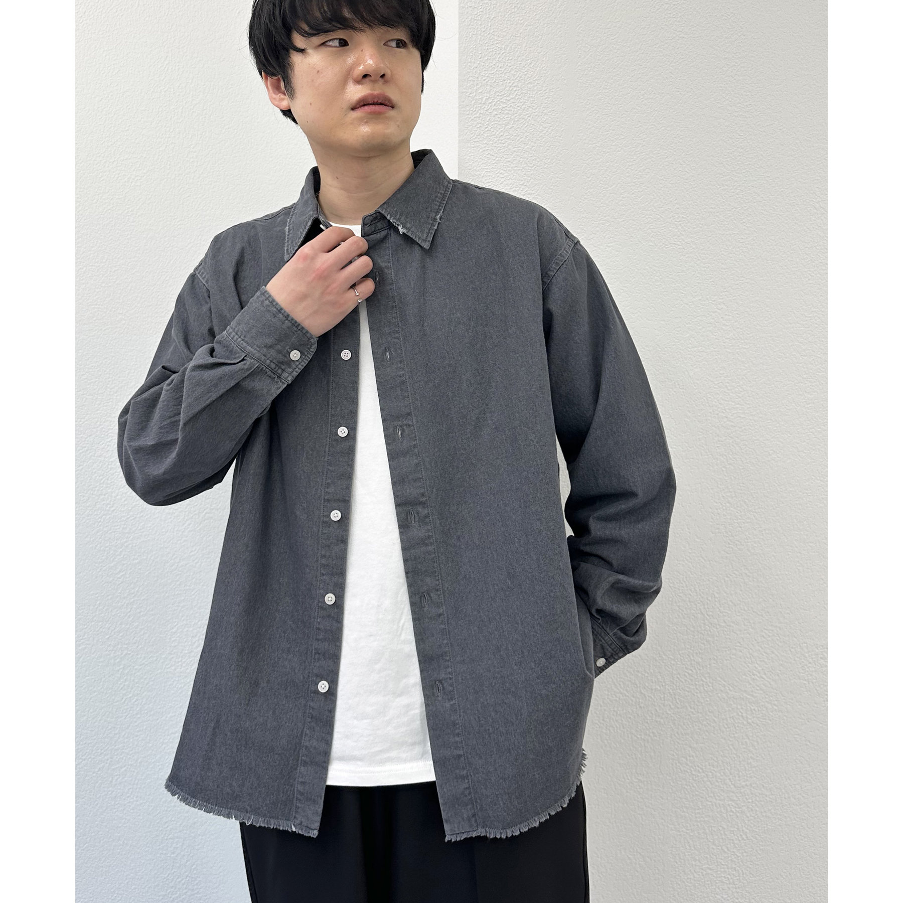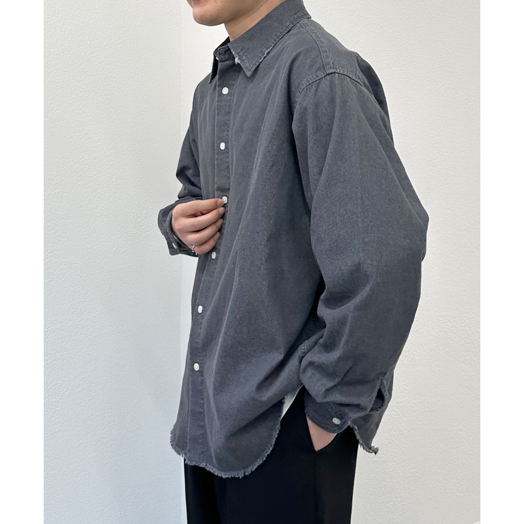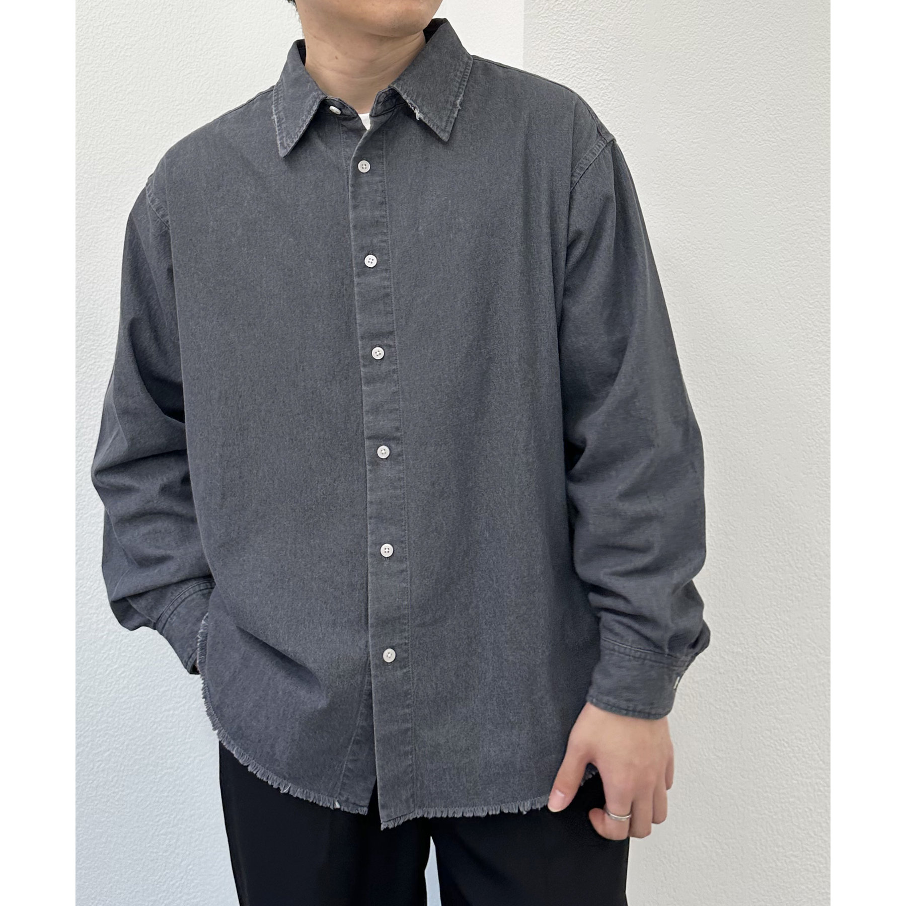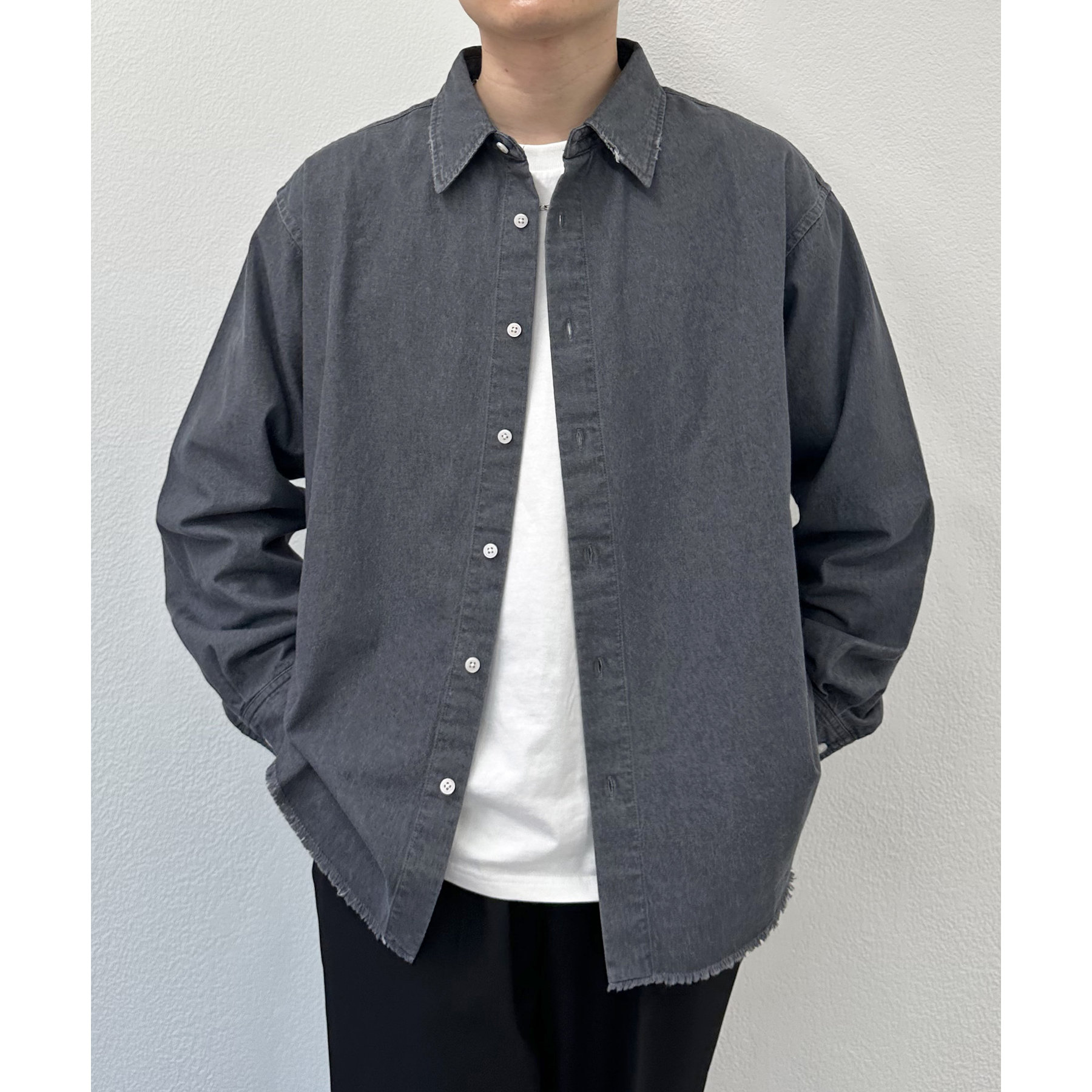 【ユニセックス】ライトオンスデニムフリンジシャツ