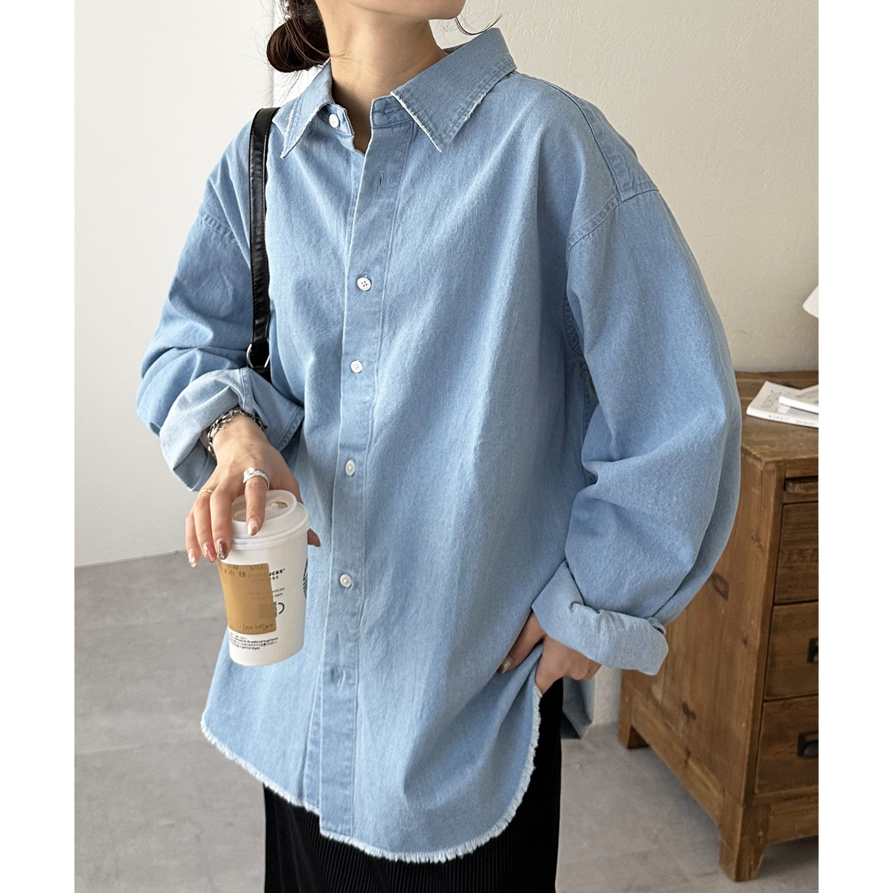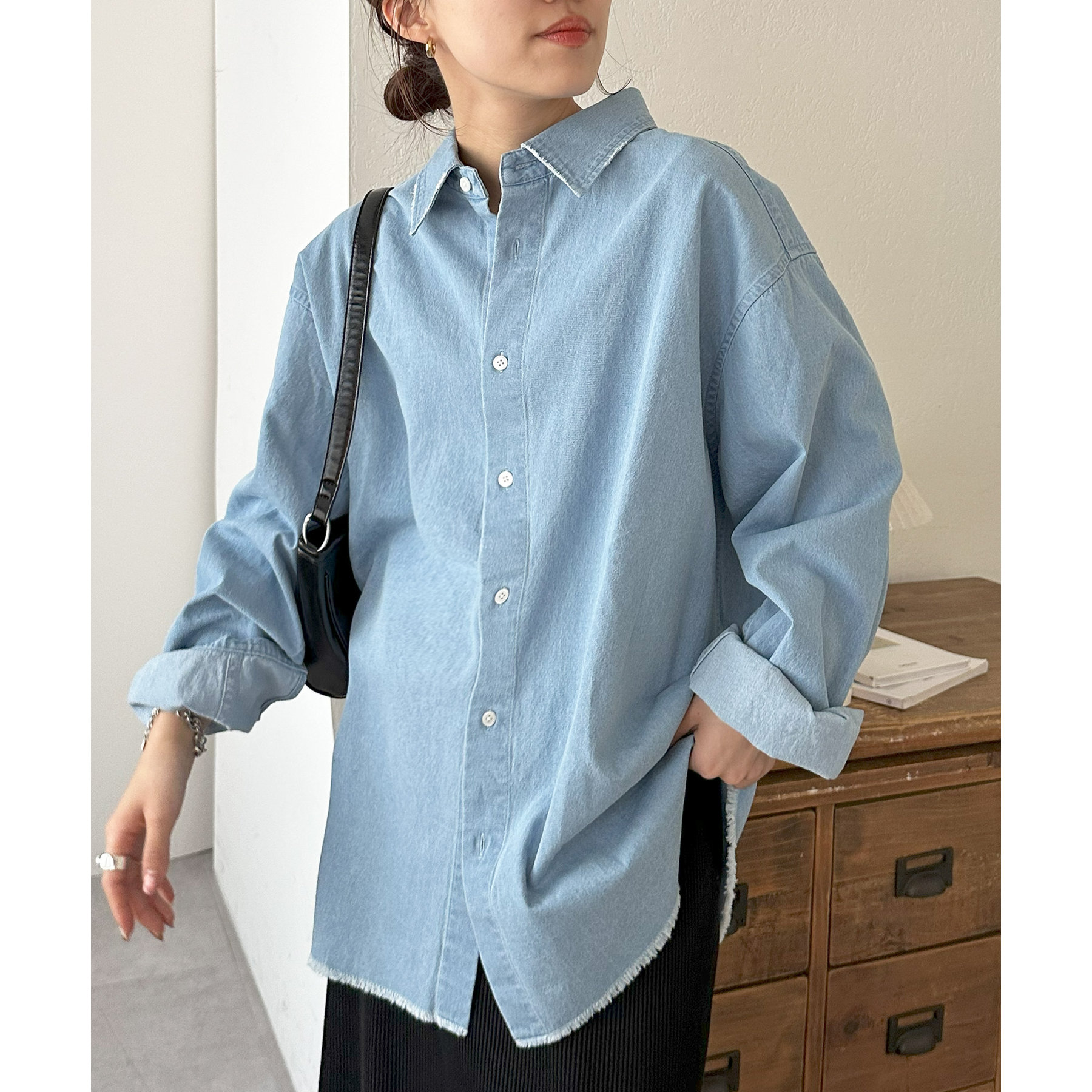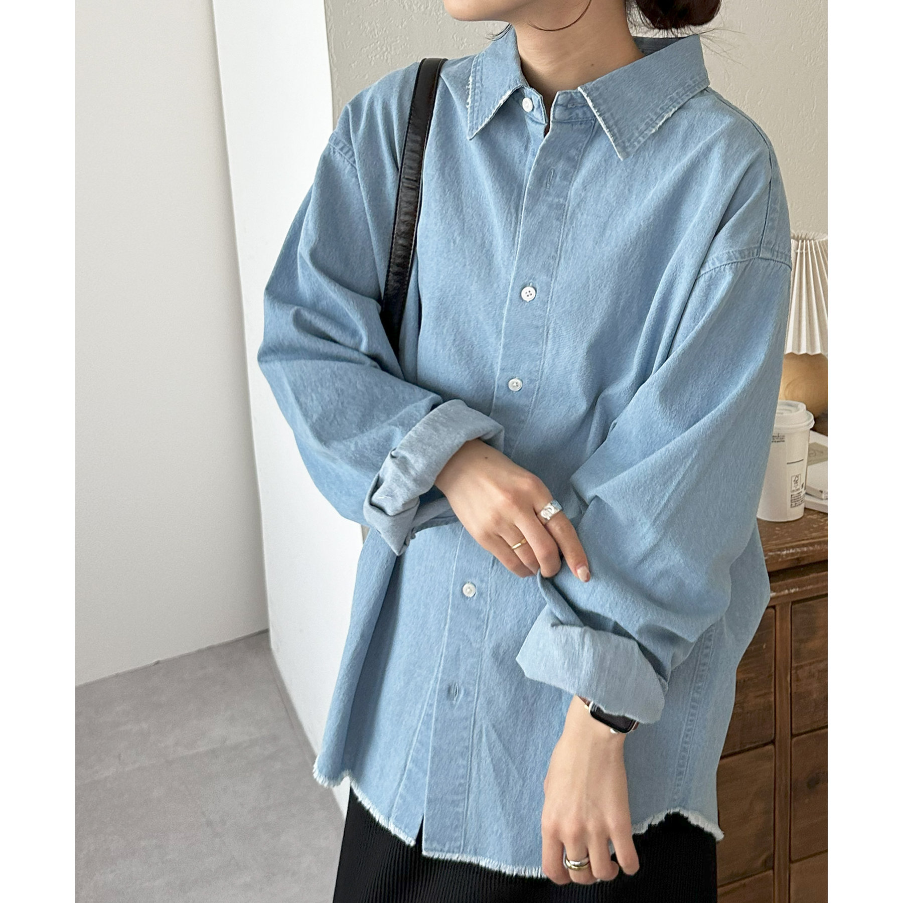 【ユニセックス】ライトオンスデニムフリンジシャツ