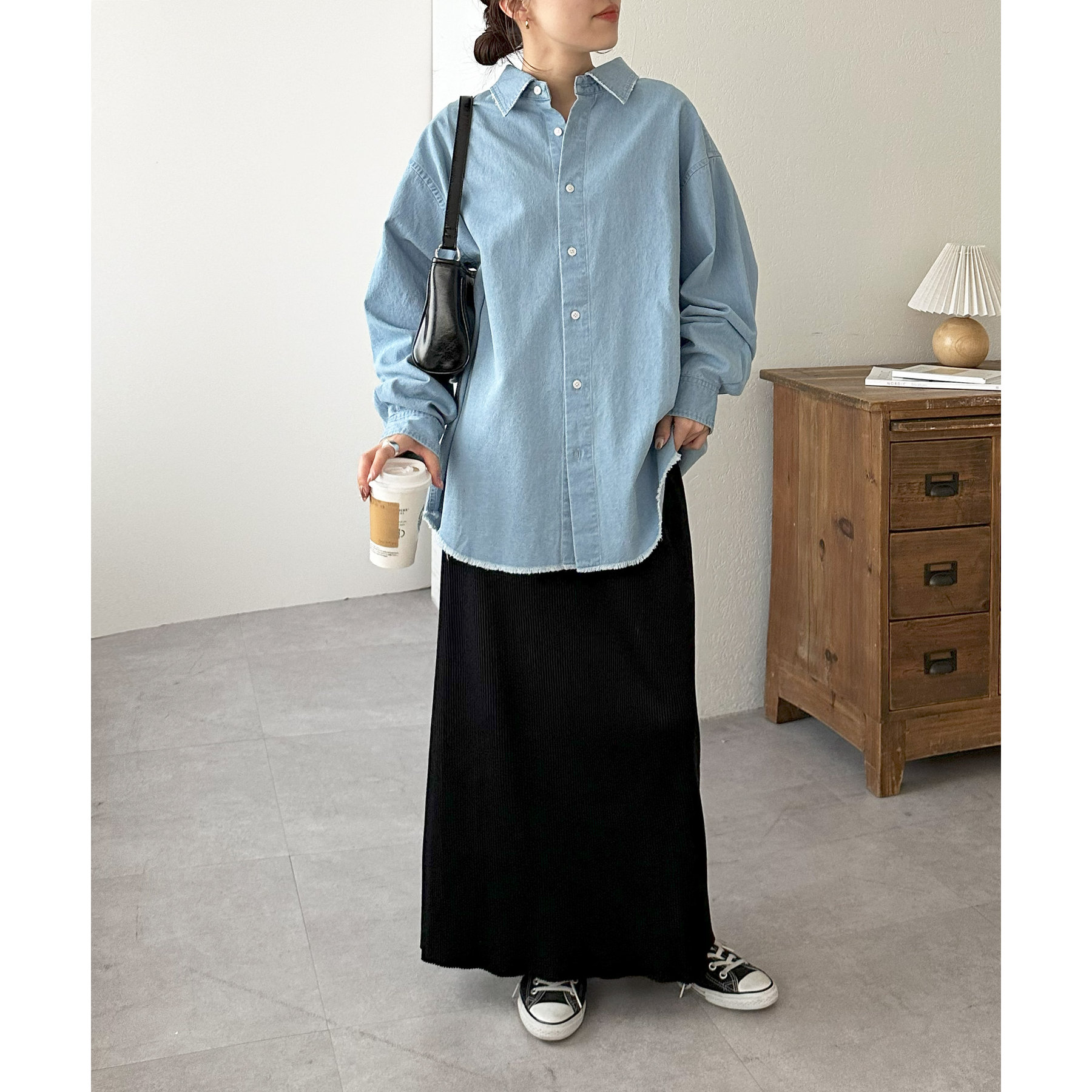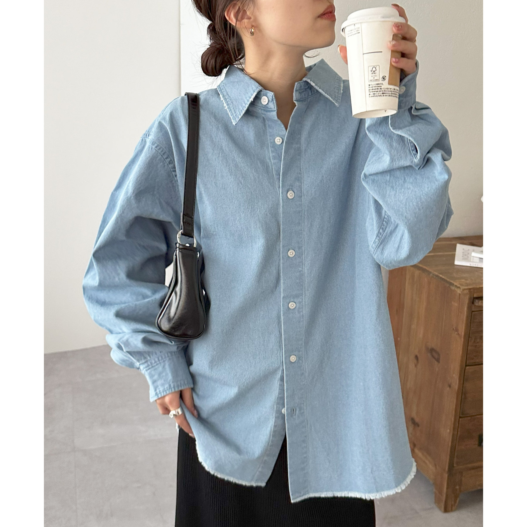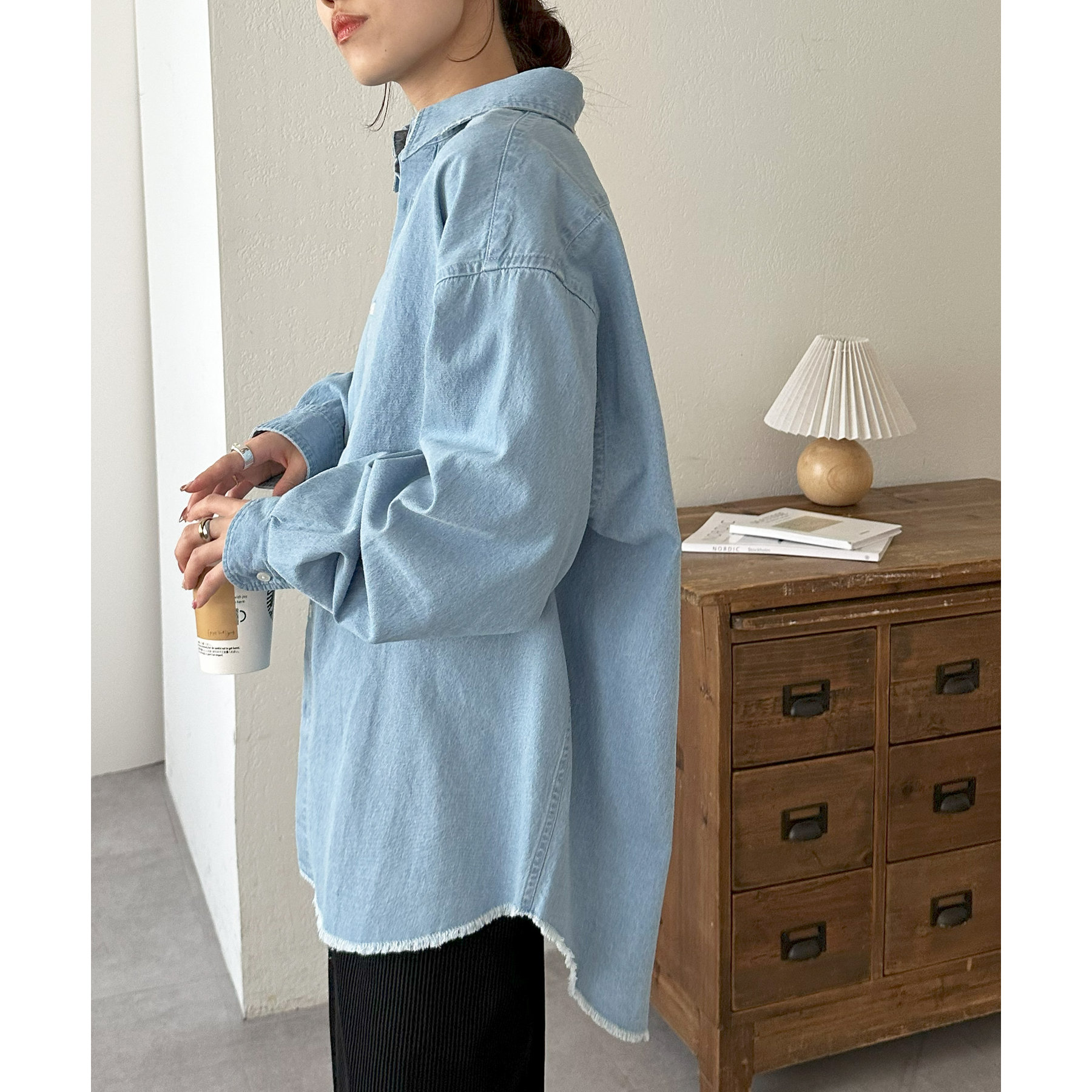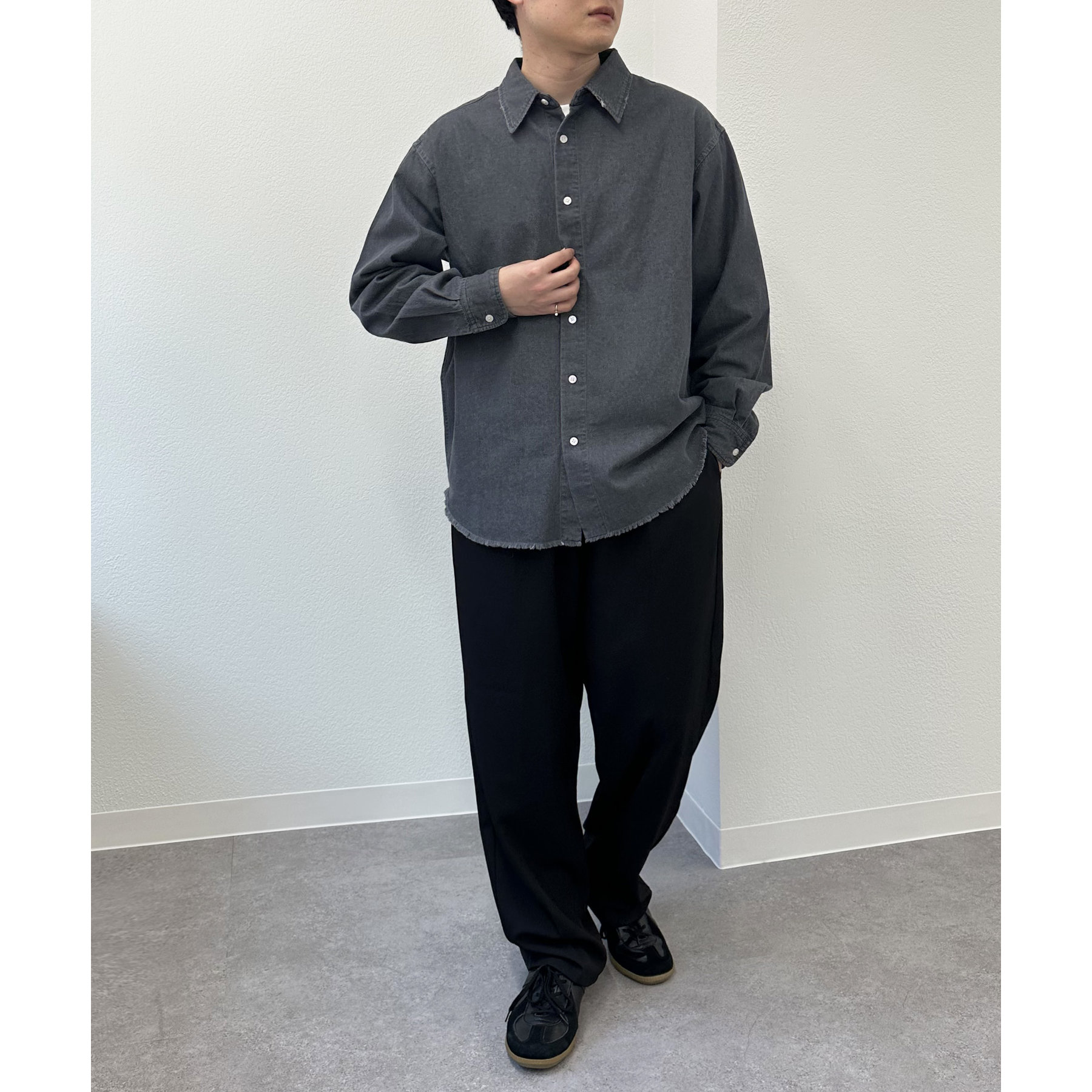 【ユニセックス】ライトオンスデニムフリンジシャツ