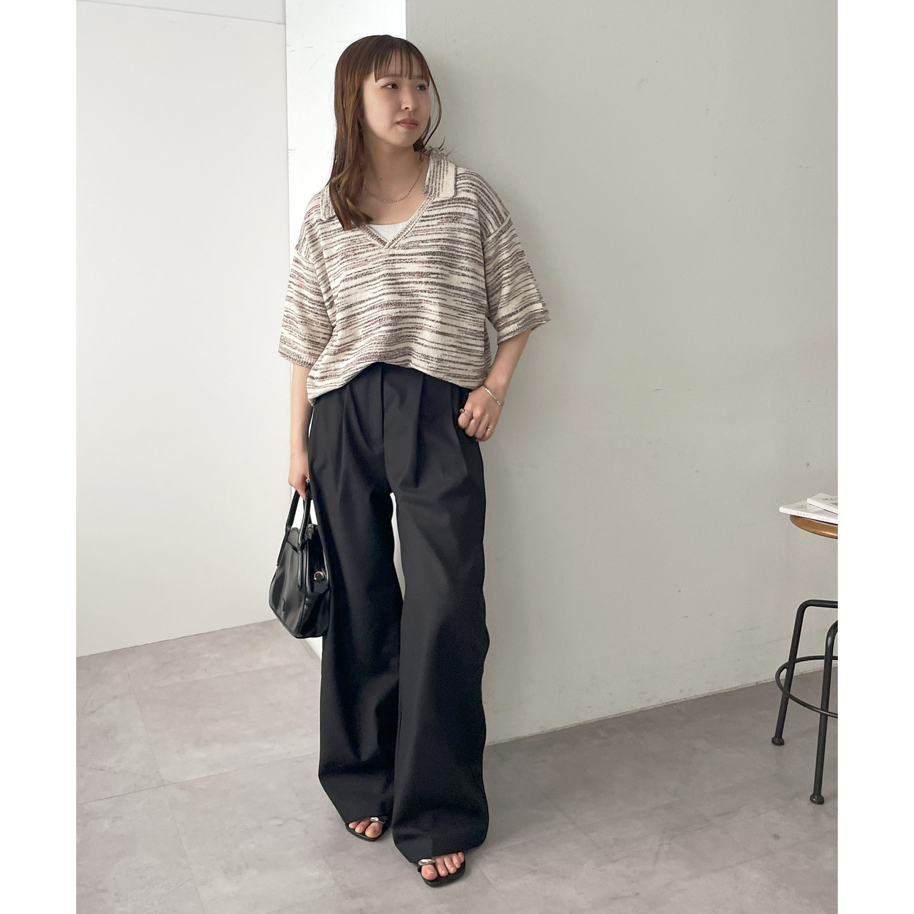 深めのタックを施すことで、縦のラインを強調し、スタイルアップ効果をもたらします〇