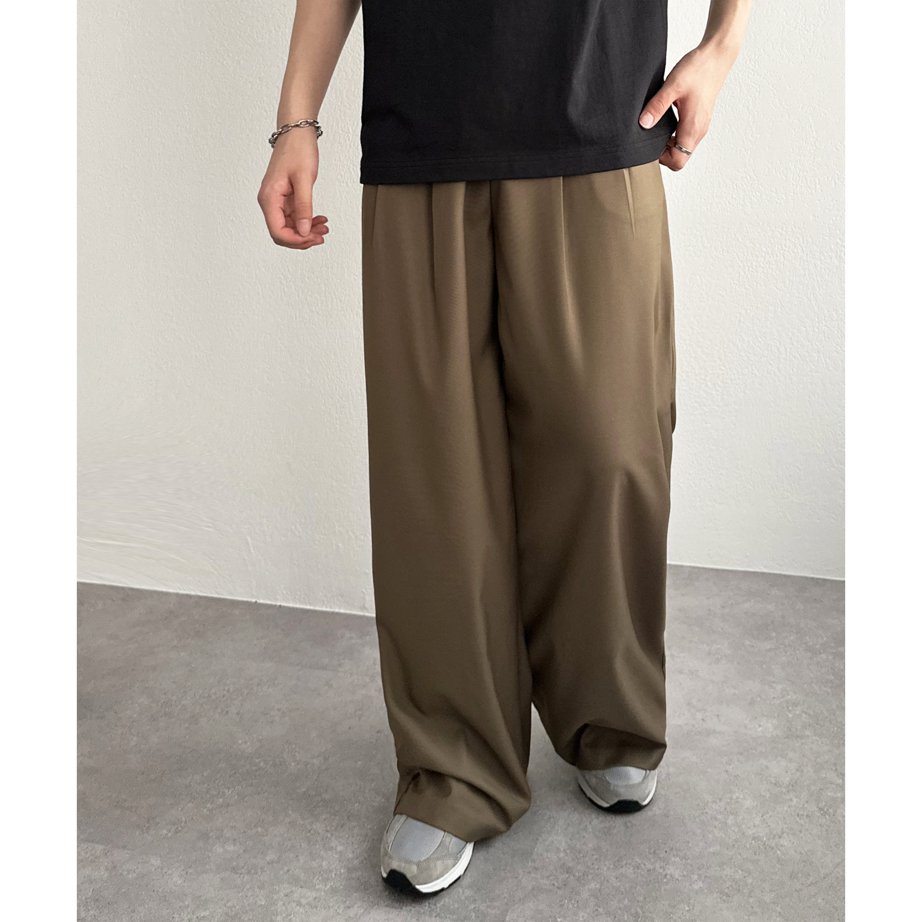 【ユニセックス】アジャストベルト付きタックワイドパンツ