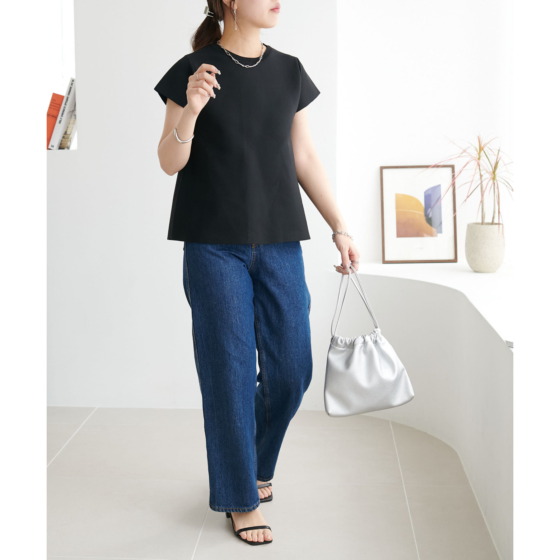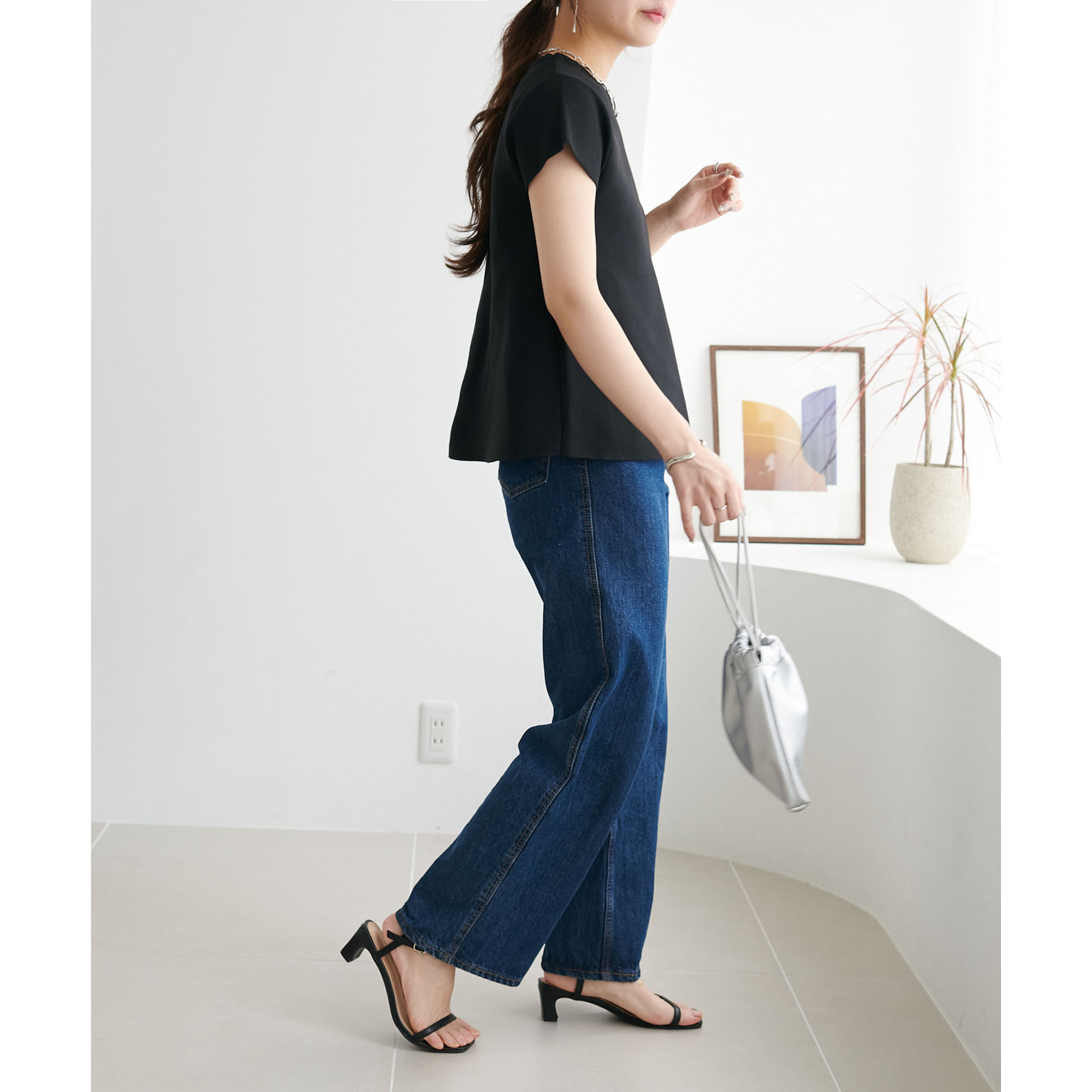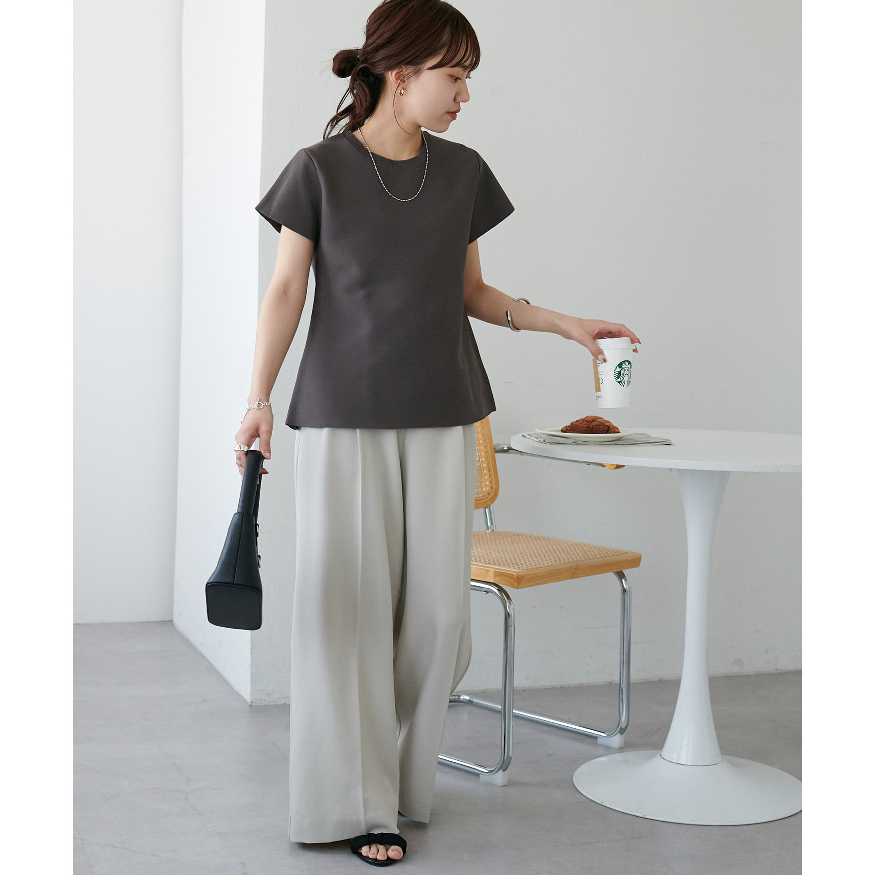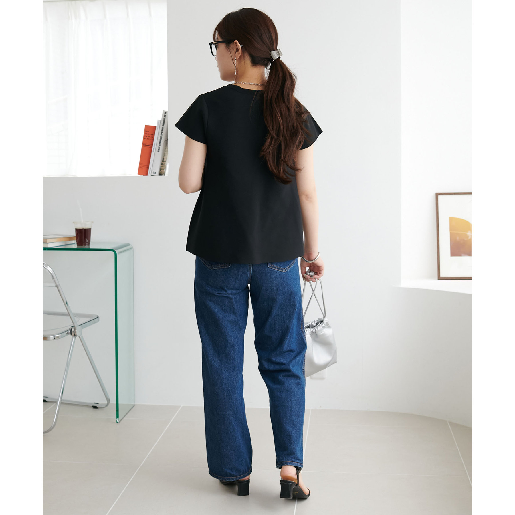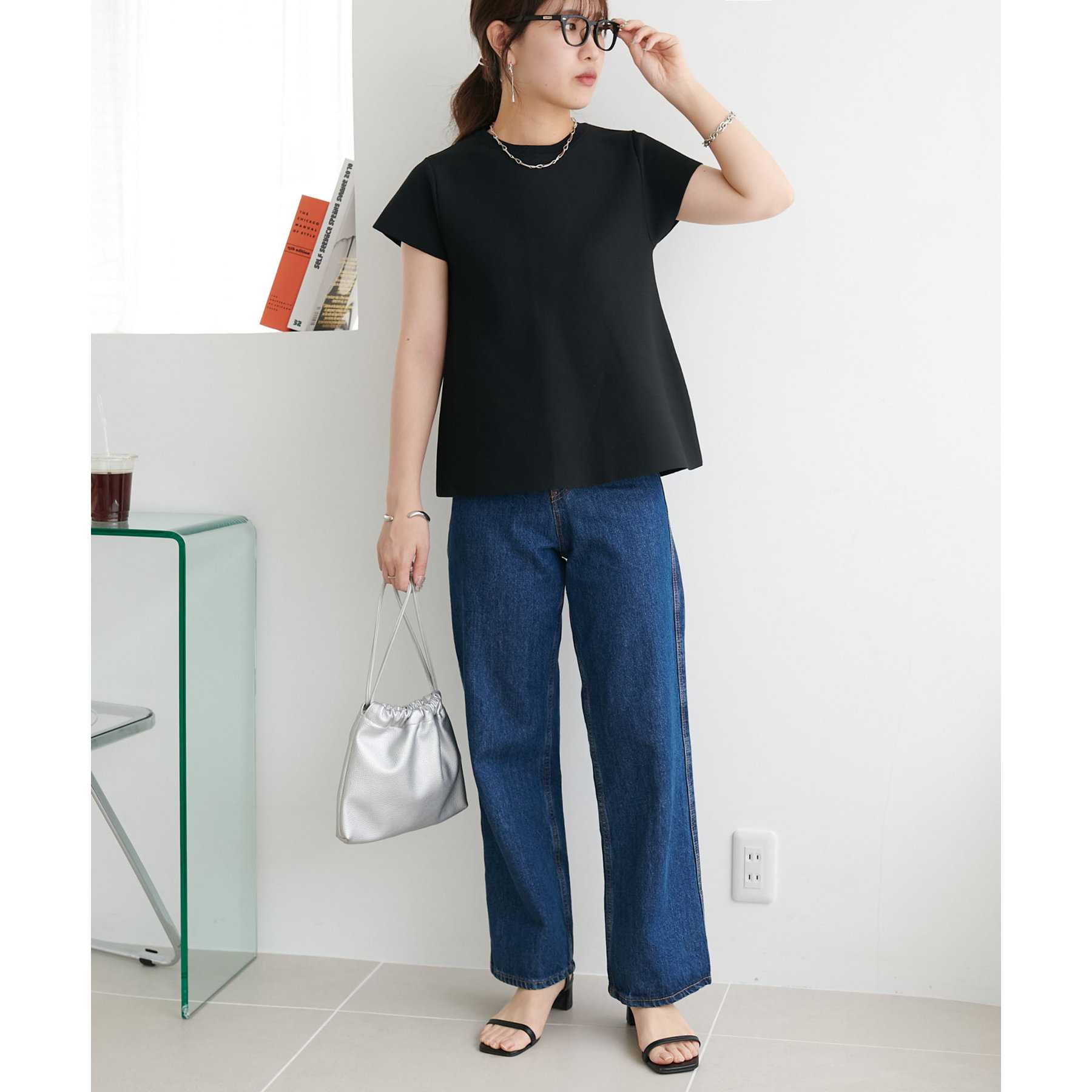 155㎝スタッフ(レディース):ゆったりとしたサイズ感が体型カバーもでき、カジュアルにもきれいめにも合うので、たくさん着回しができそうです。