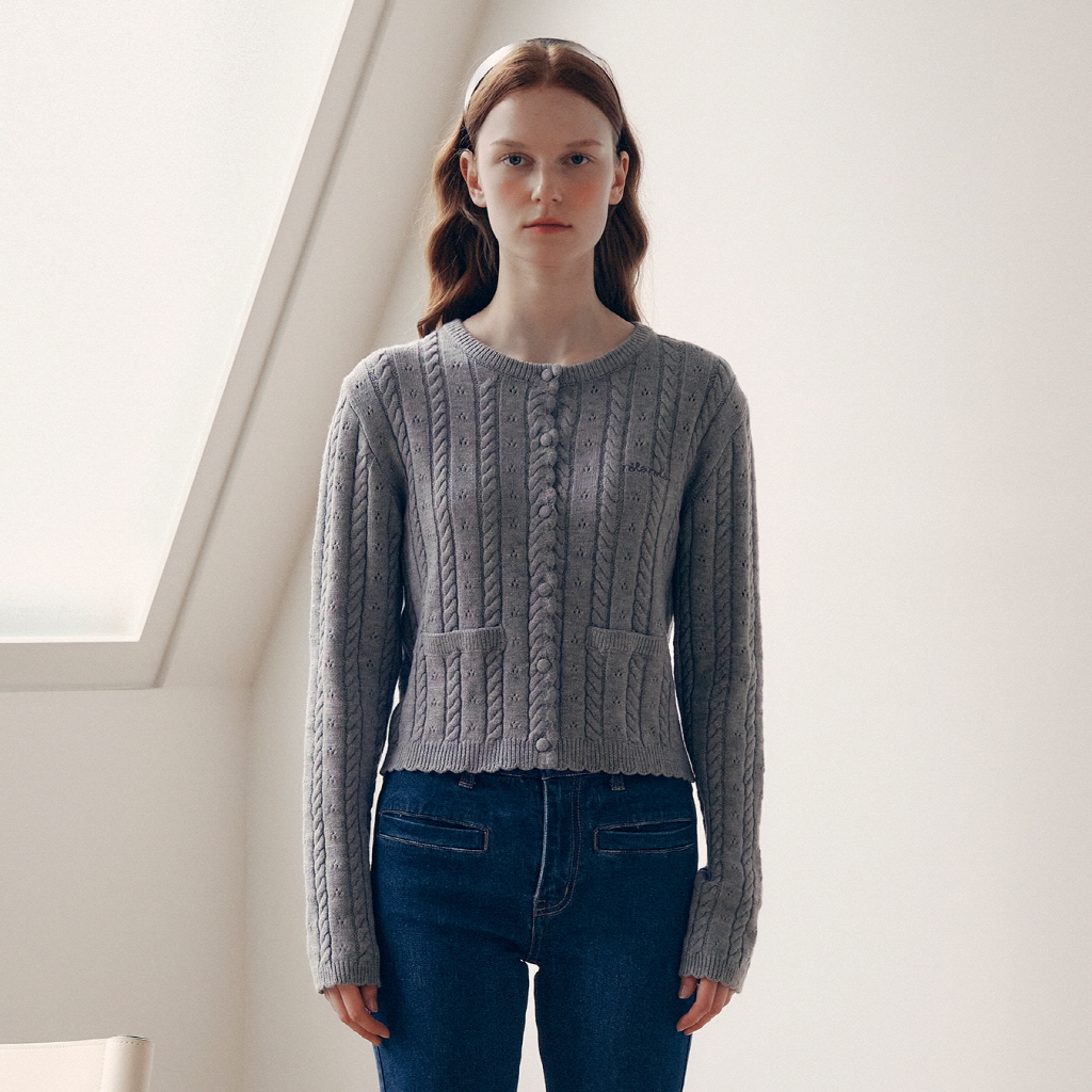 SKASHI CABLE KNIT CARDIGAN GRAY