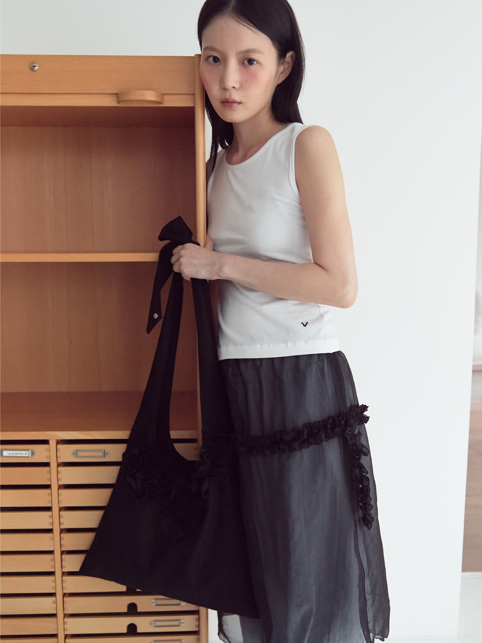 ・高密度コットン素材を使用したオープンデザインのホーボーバッグ
