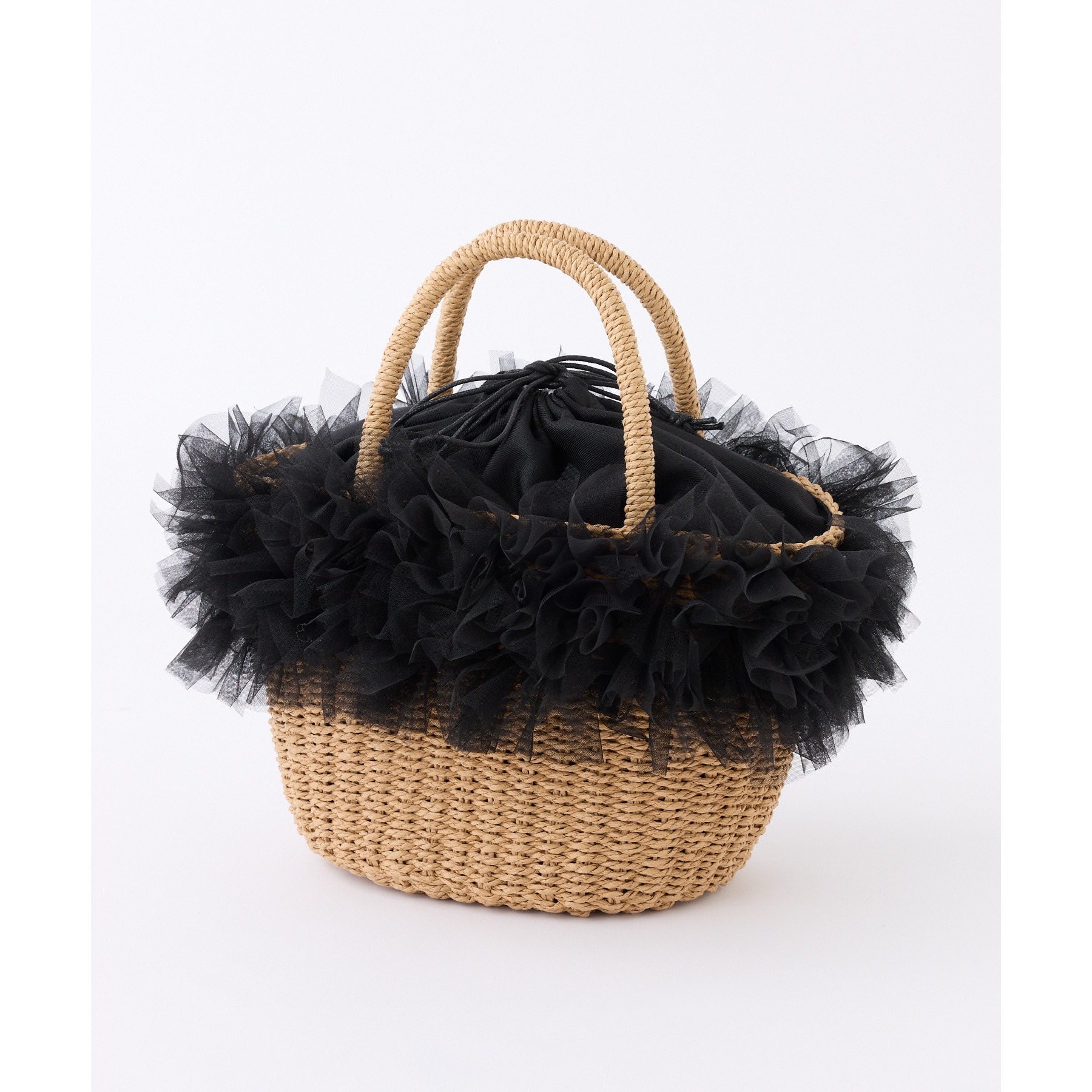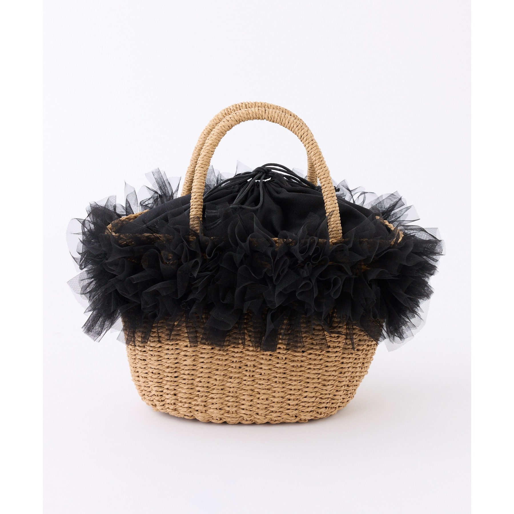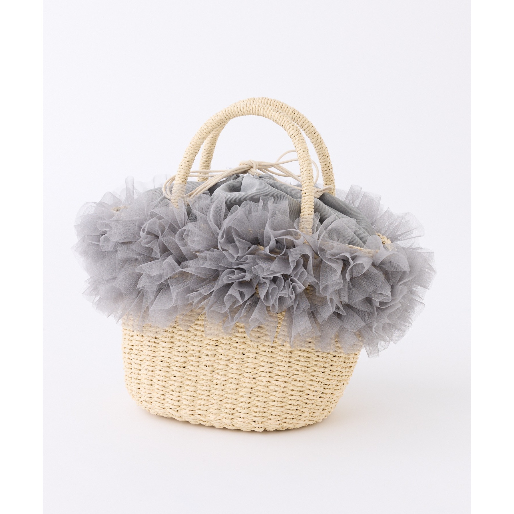 チュール付きカゴバッグ