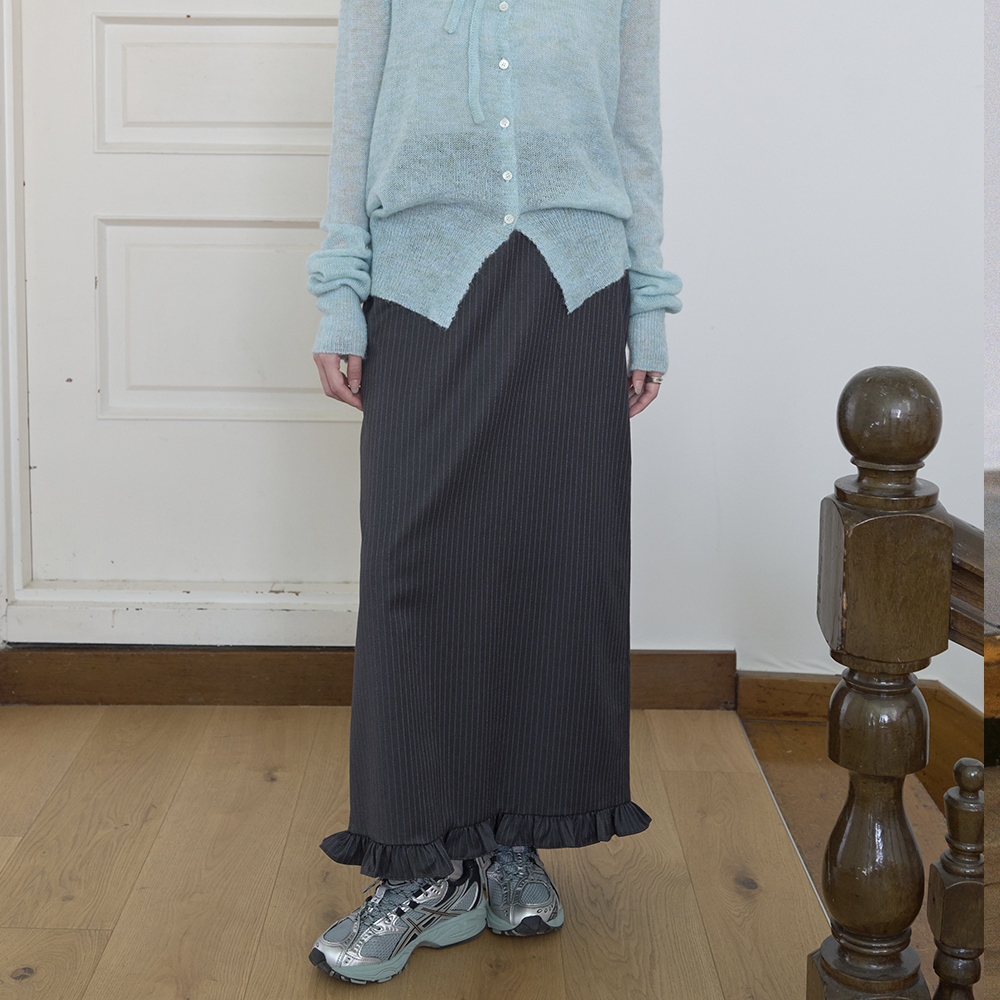 FRILL LONG SKIRT_CHARCOAL BLUE