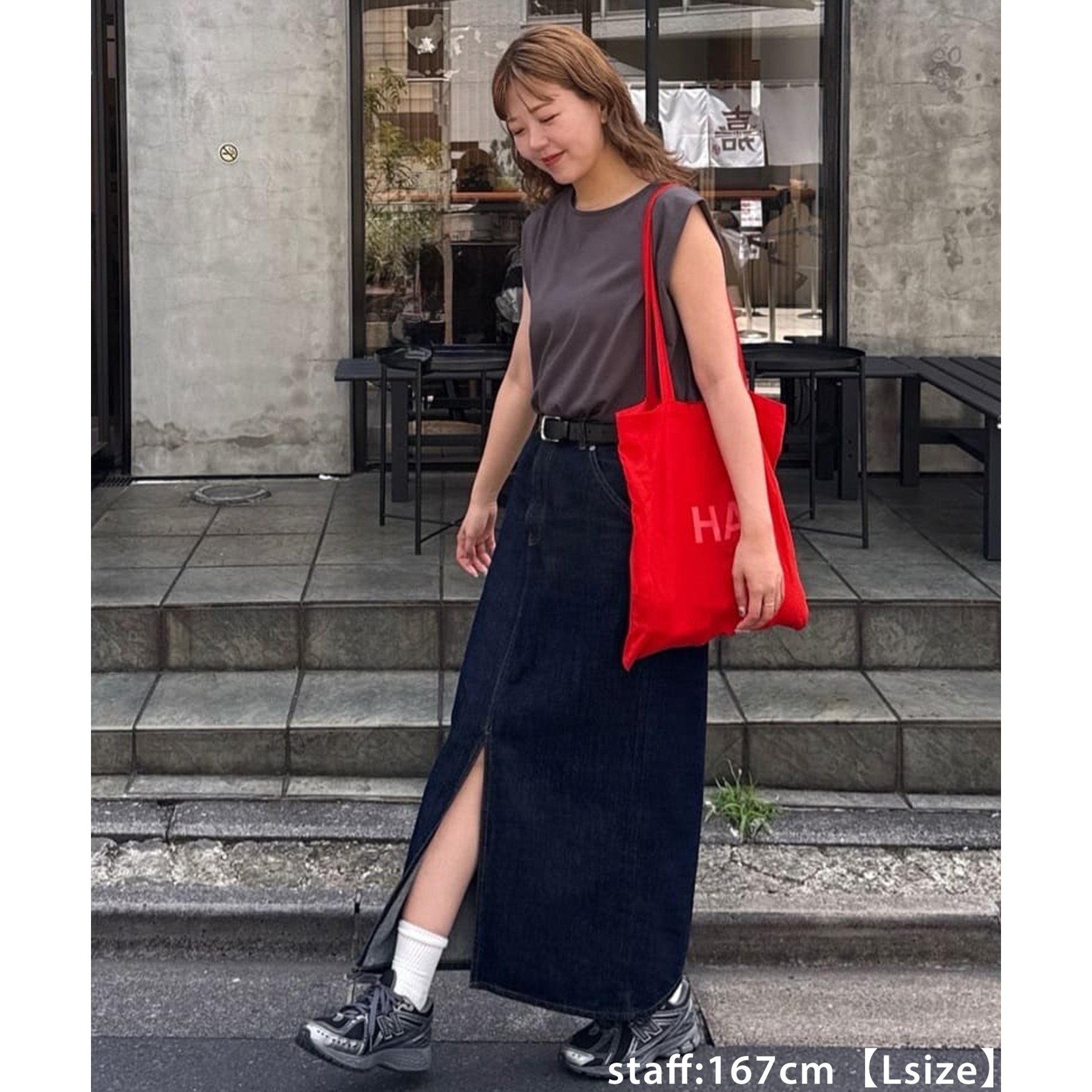 167cmスタッフ(Lサイズ着用):3サイズ展開なので低身長から高身長までオススメのアイテム。DISCOTオリジナルの紙パッチもポイントです!