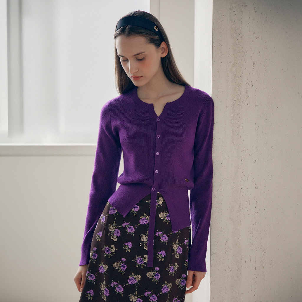 CUT OUT RIBBED CARDIGAN PURPLE