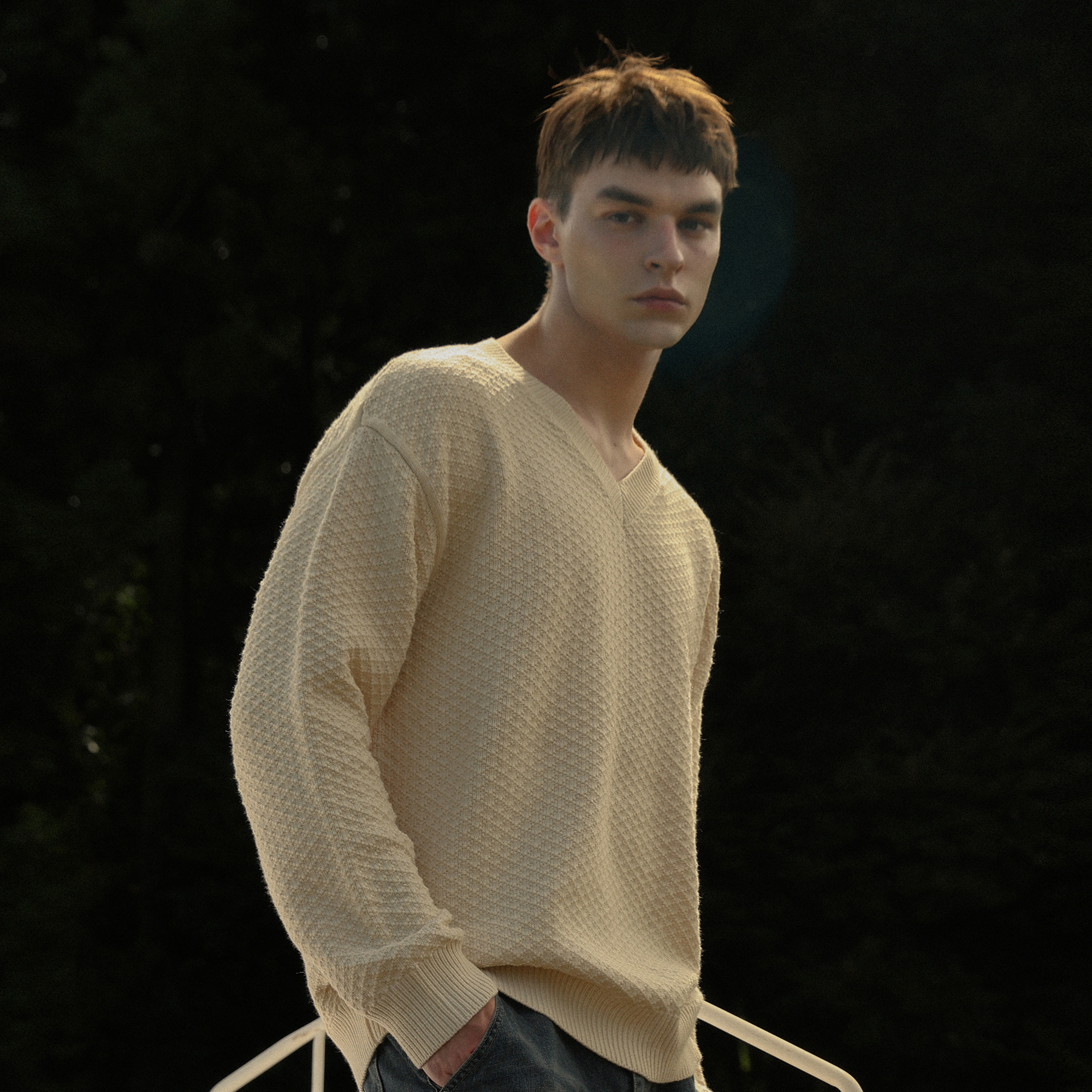 [Kアイドル着用]RetropatternV-neckknitwear-Ivory